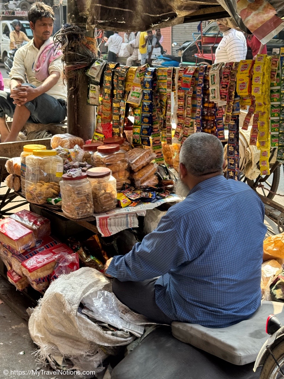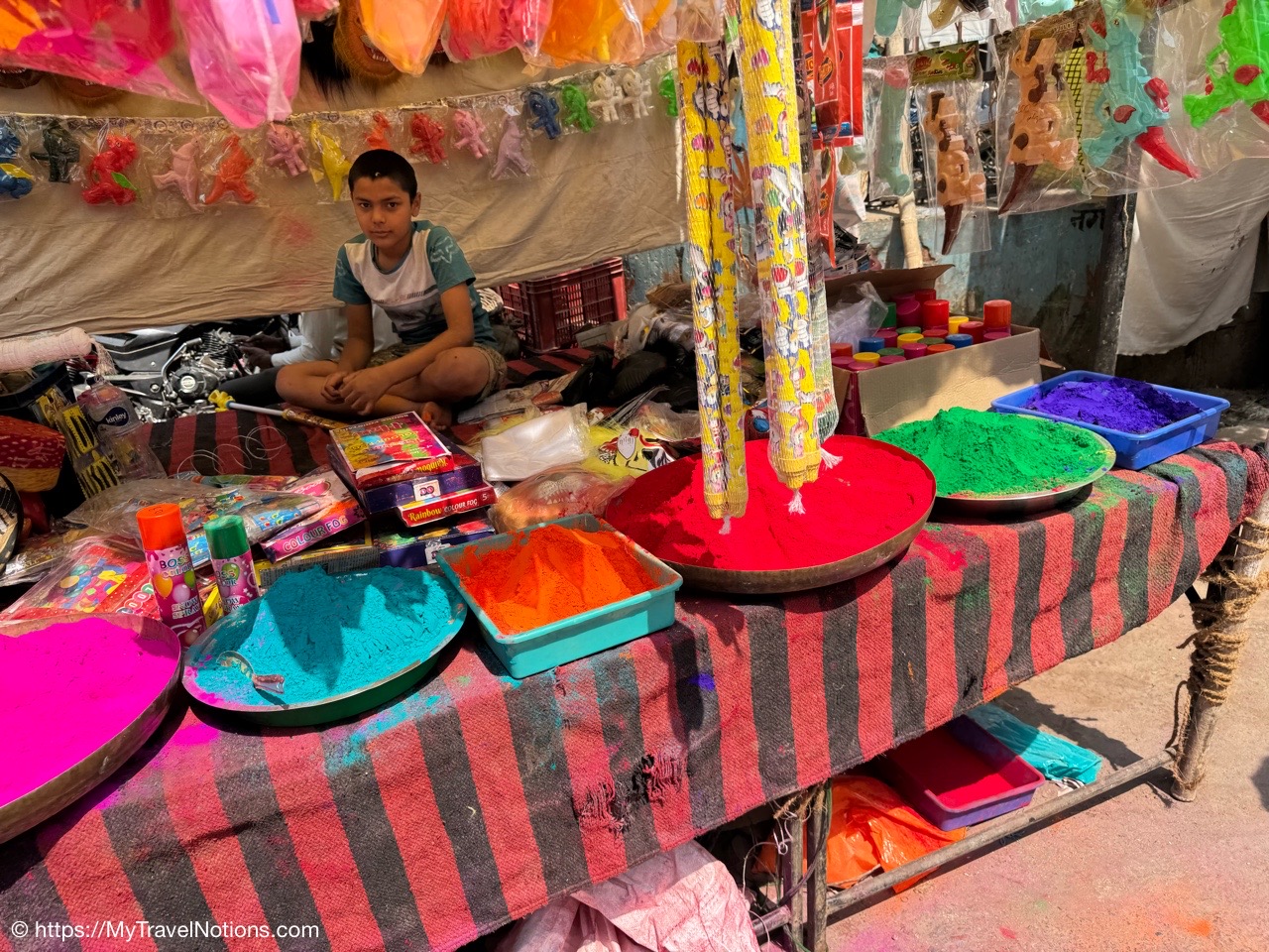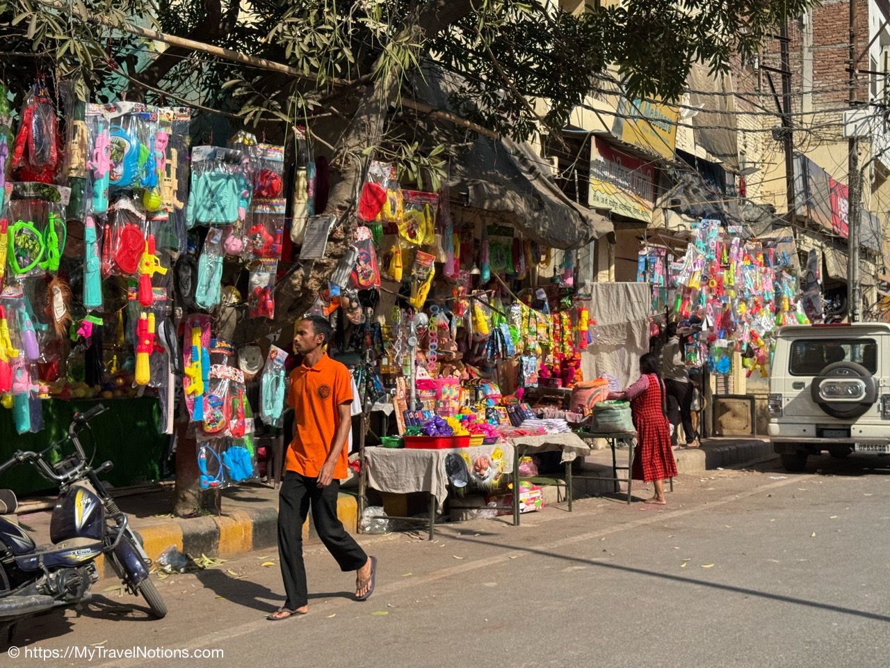 Passed by this colorful merchant’s shop through an alleyway of shops to visit a silk vendor and buy clothes for the Holi Festival on the 14th. (March 11, 2025)