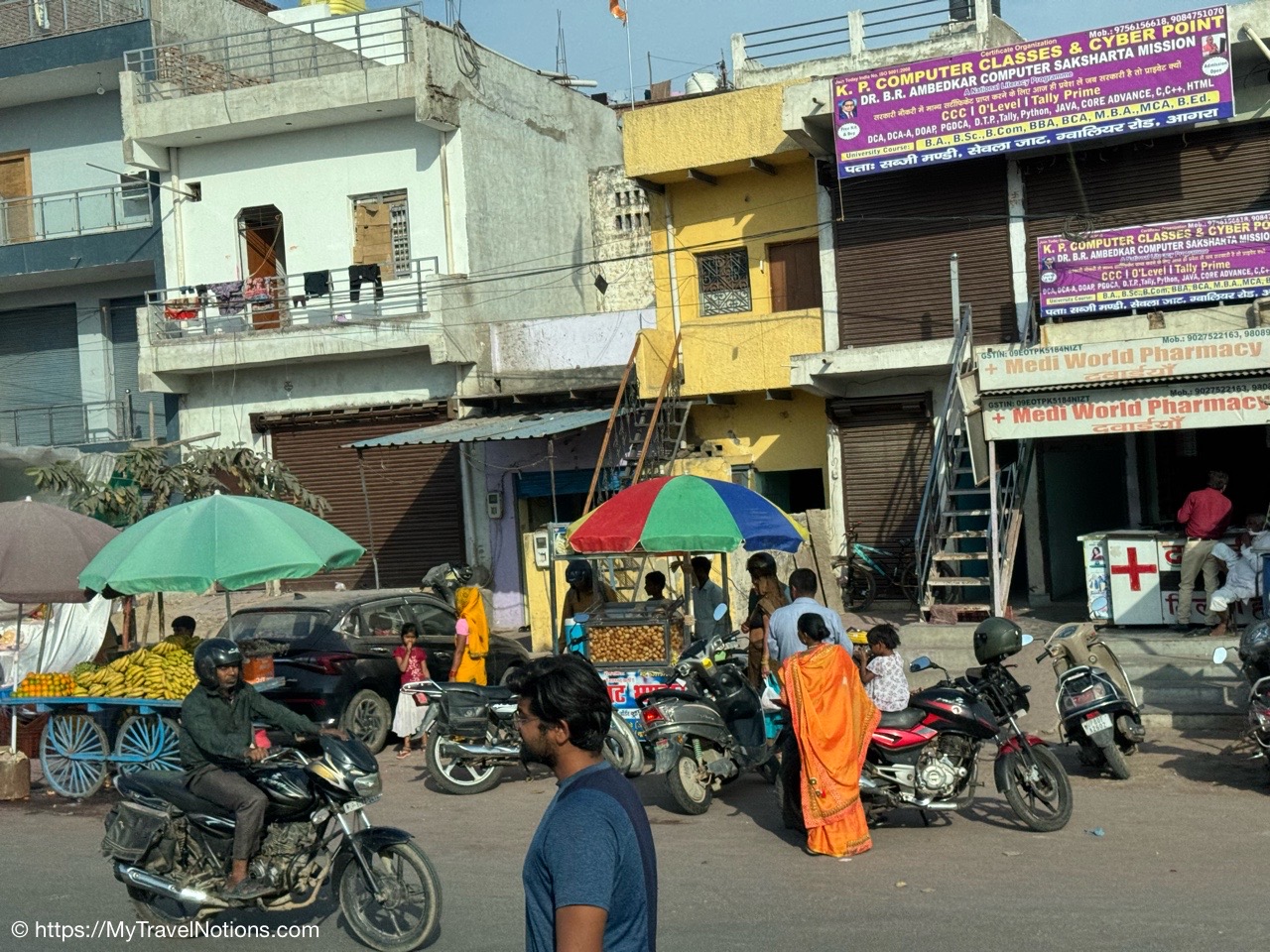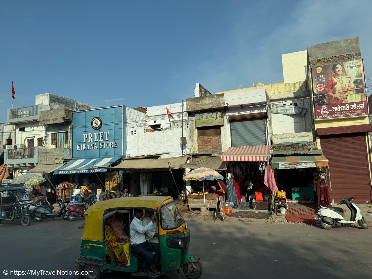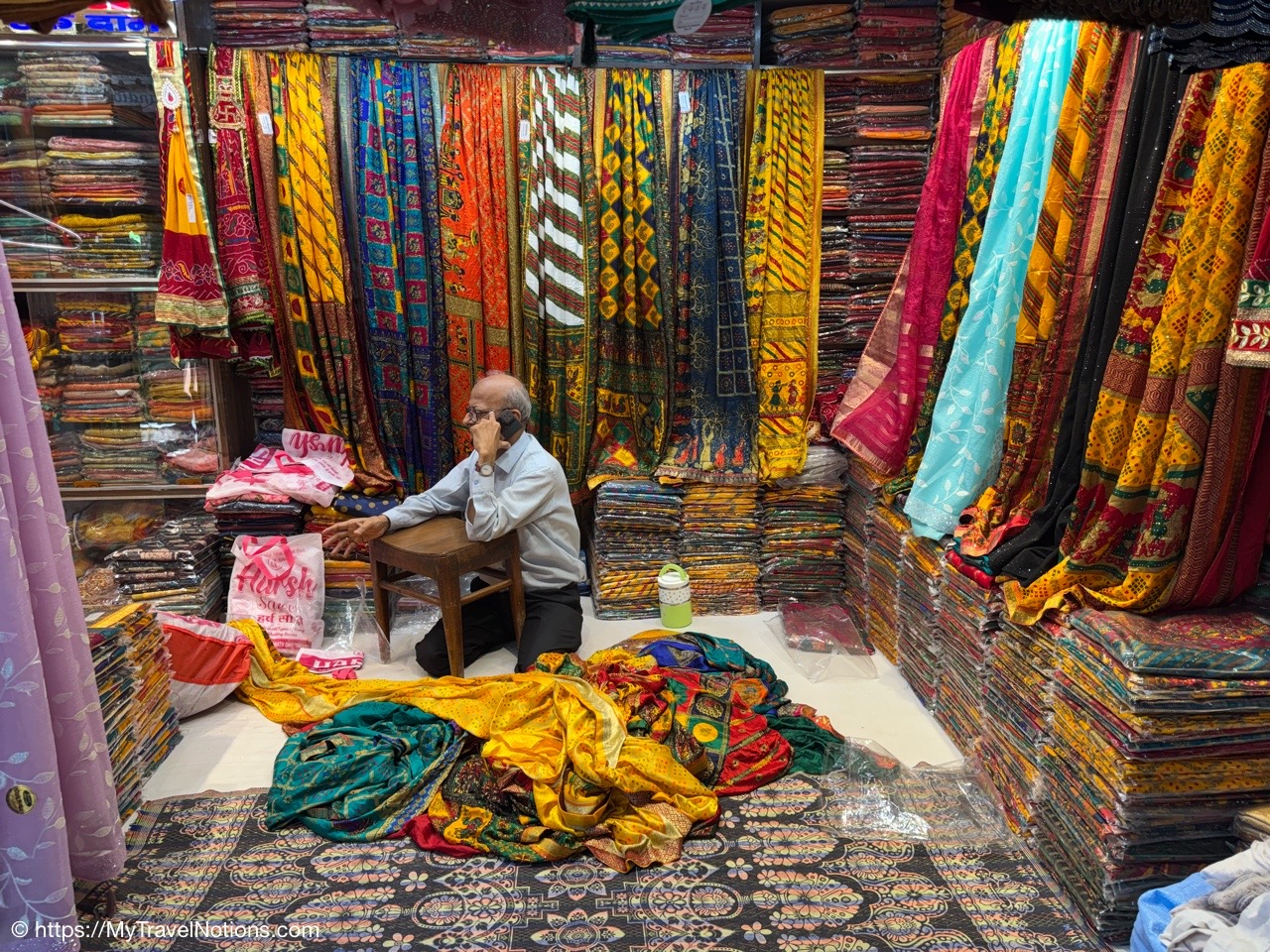 Passed by this colorful merchant’s shop through an alleyway of shops to visit a silk vendor and buy clothes for the Holi Festival on the 14th. (March 11, 2025)