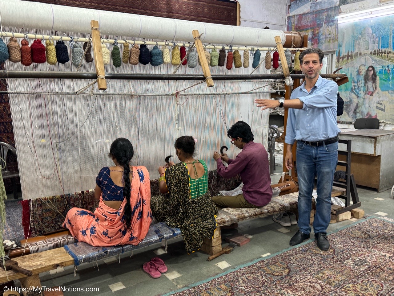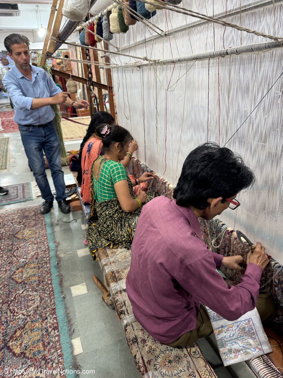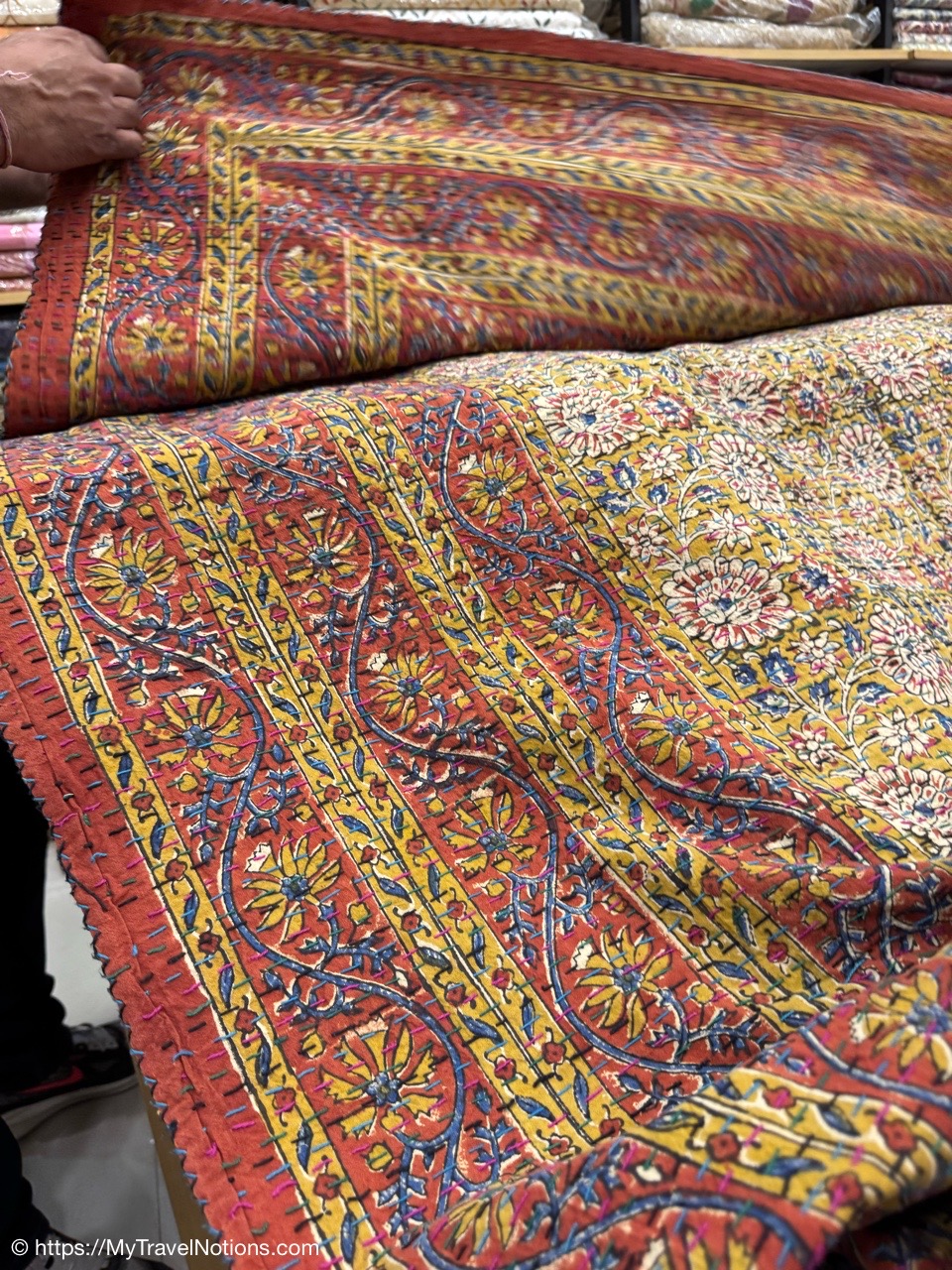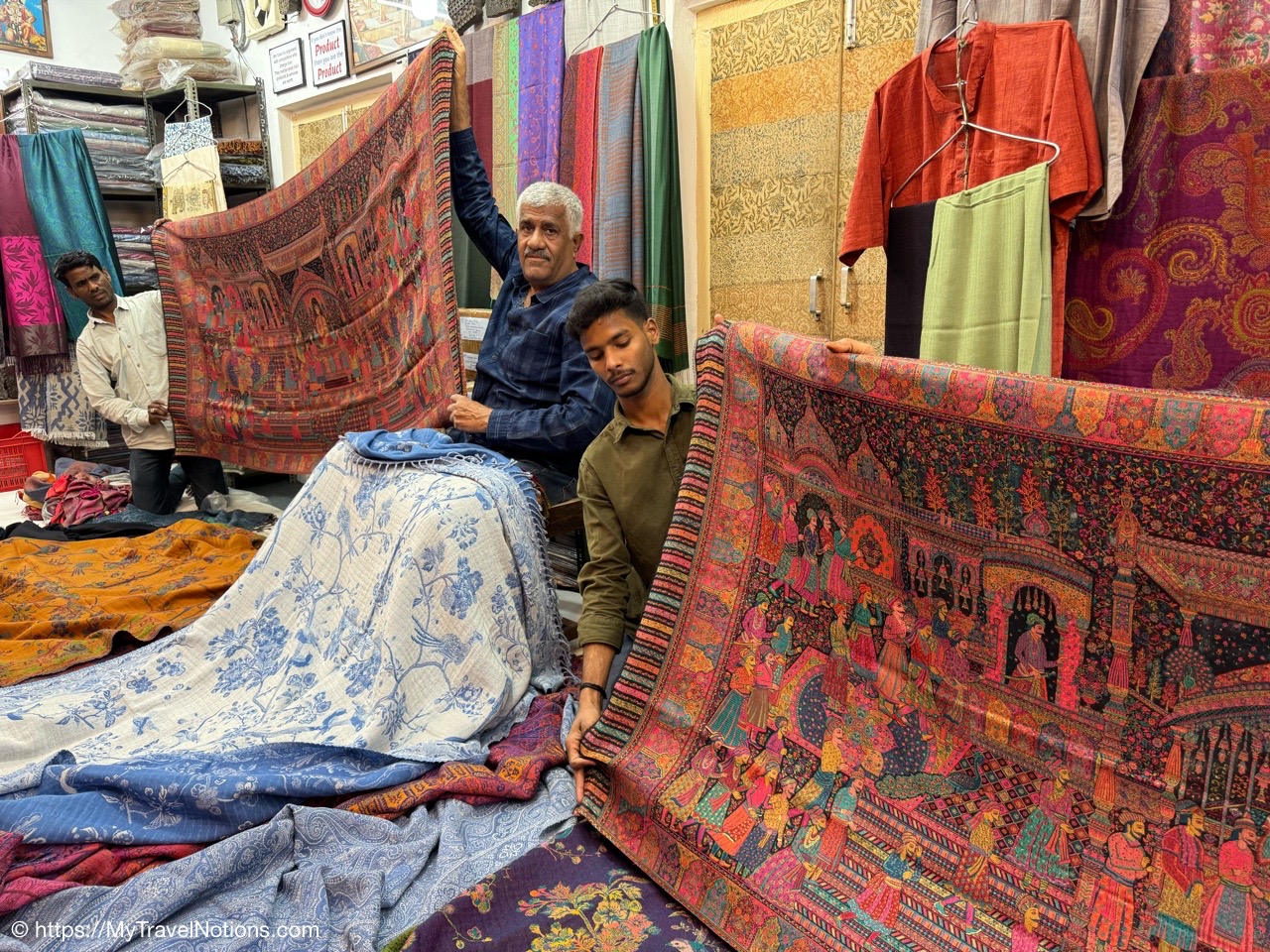 Showing of the workmanship of a beautiful scarfs or pashminas in Varanasi. (March 11, 2025)