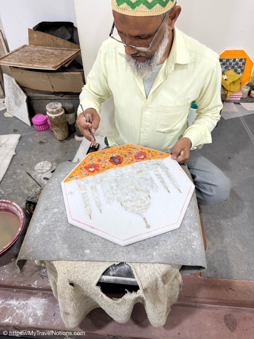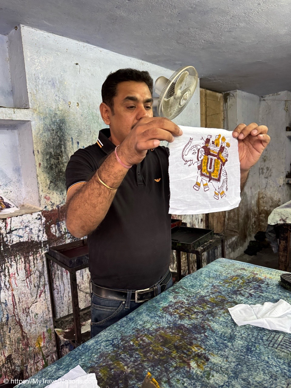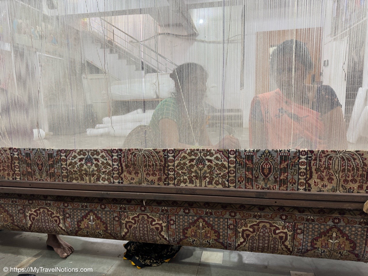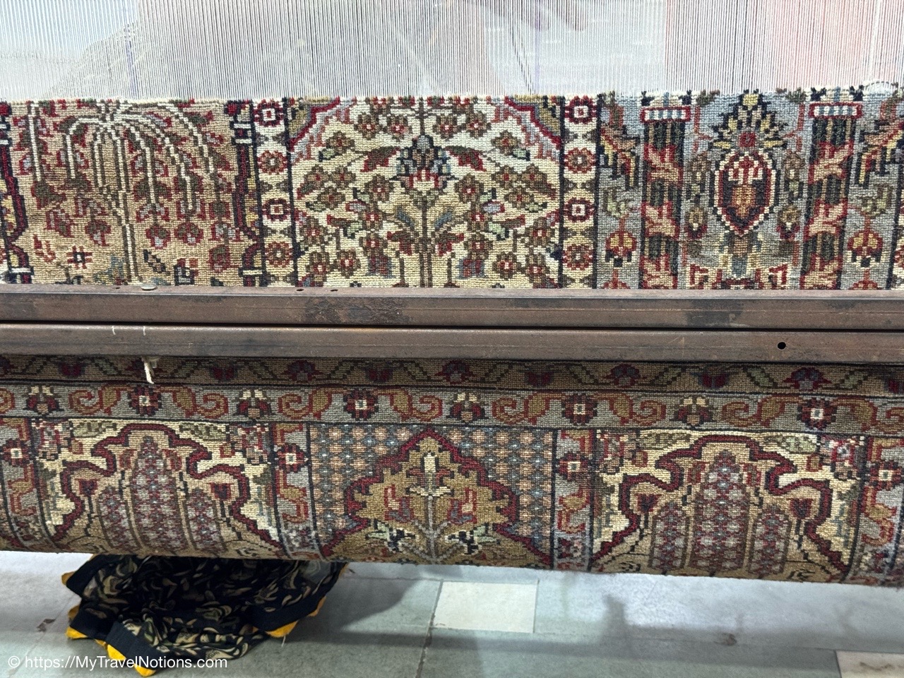 Showing of the workmanship of a beautiful scarfs or pashminas in Varanasi. (March 11, 2025)