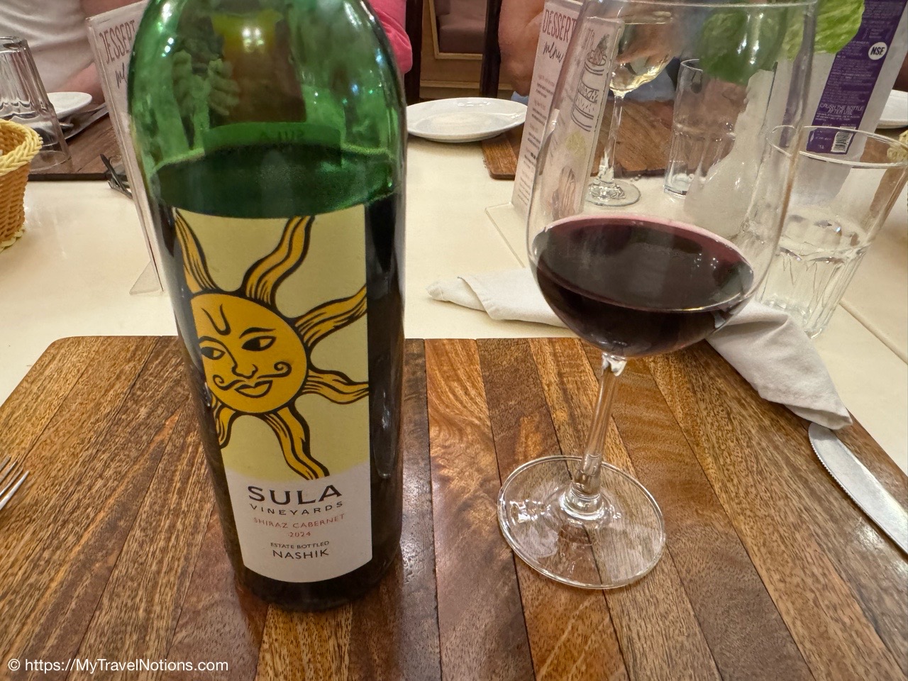 Had a glass of this wonderful Shiraz Cabernet at the Surya Kaiser Palace in Varanasi. The meal and the wine were a nice end to a full day. (March 11, 2025)