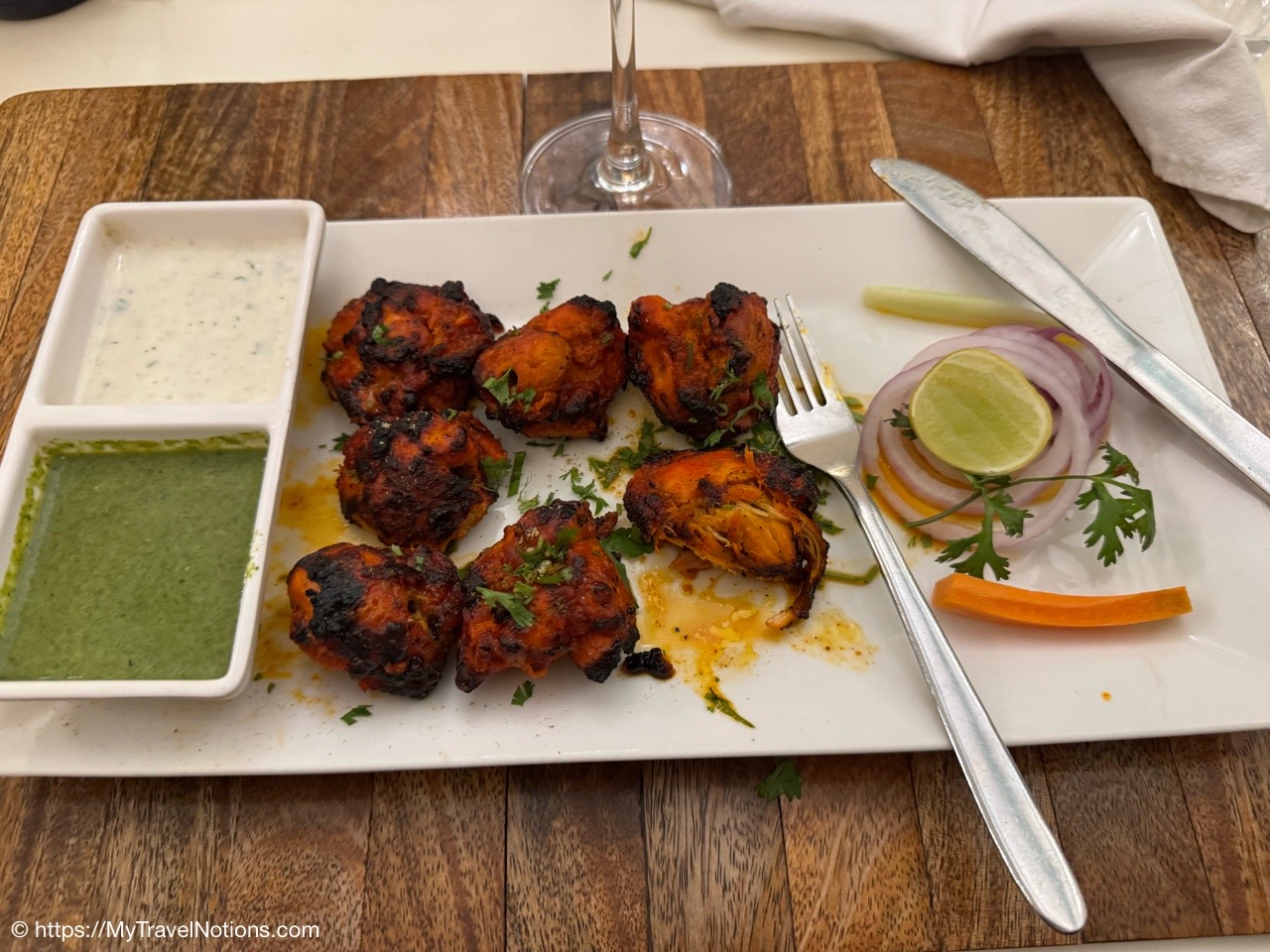 My meal, minced chicken kababs, at the Surya Kaiser Palace in Varanasi. (March 11, 2025)