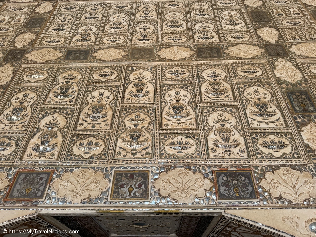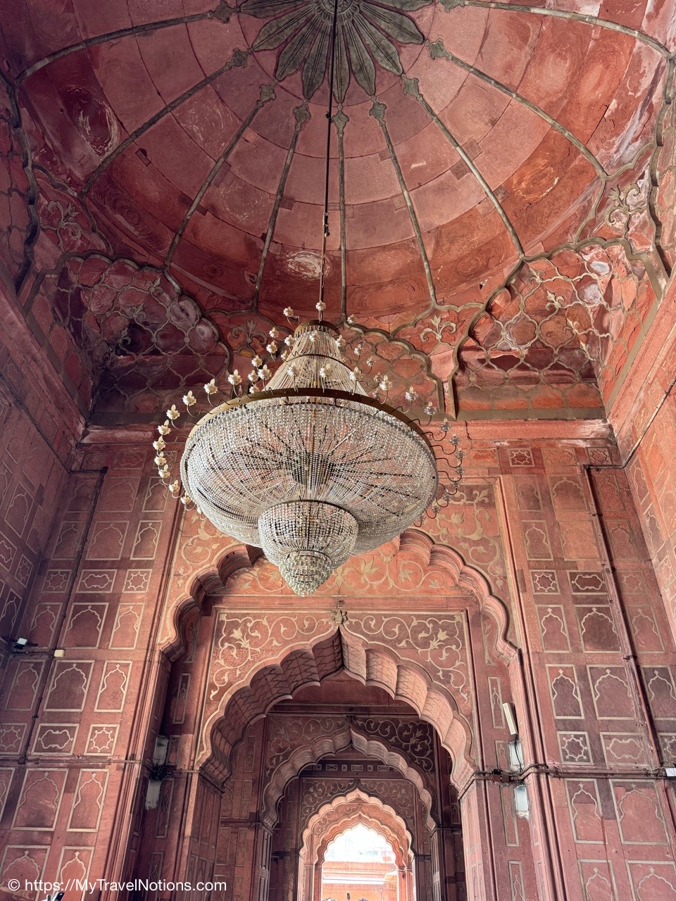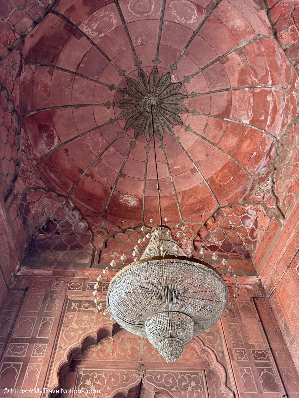 The ceiling of the prayer hall inside the Jama Masjid mosque in Old Delhi. (March 17, 2025)