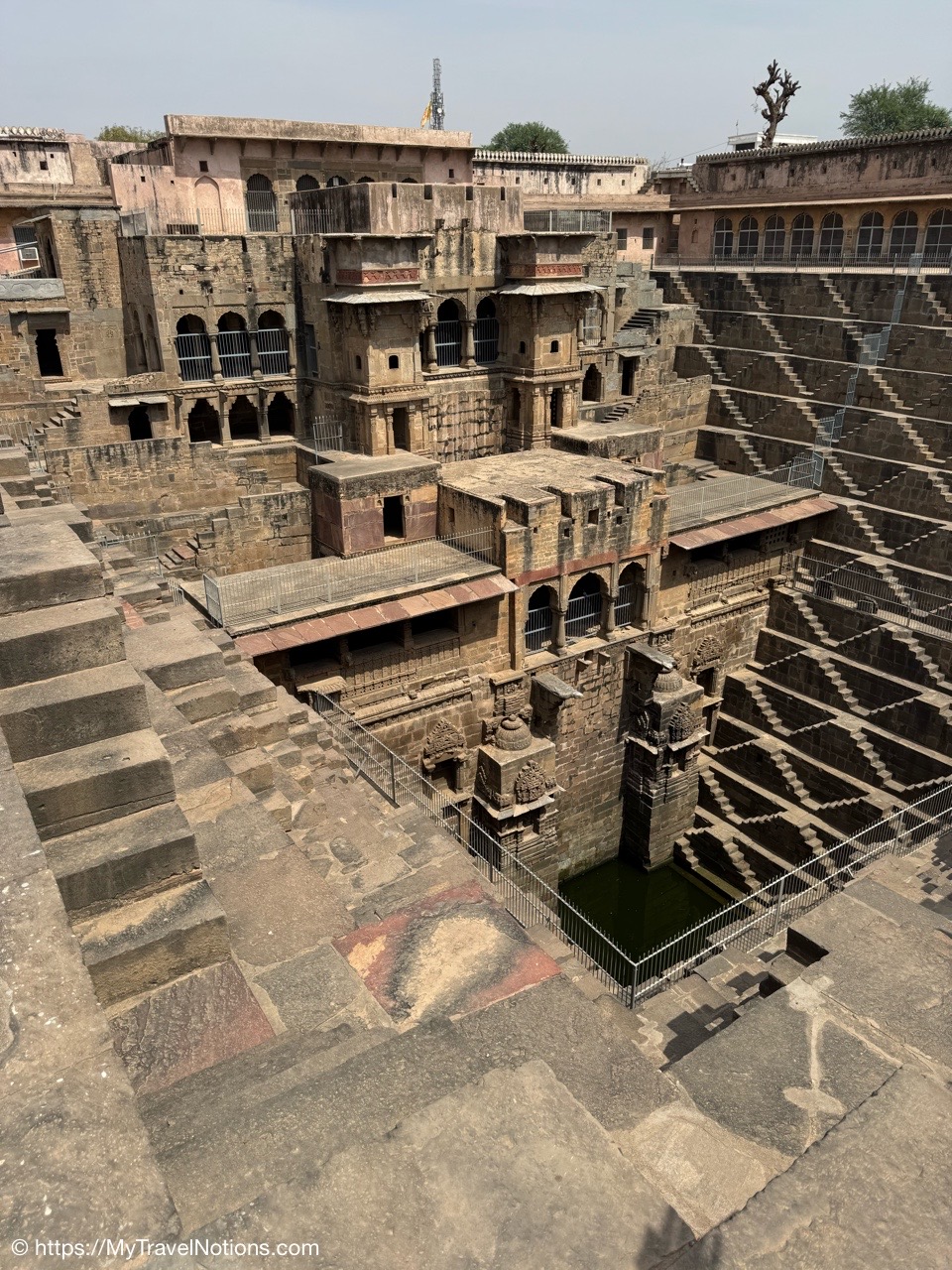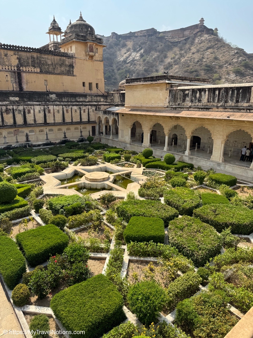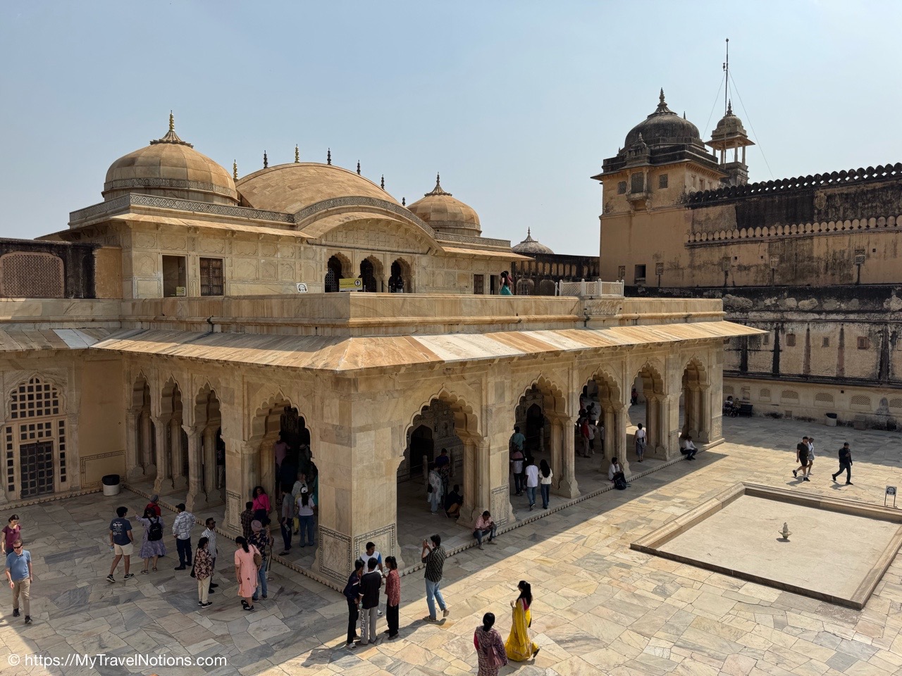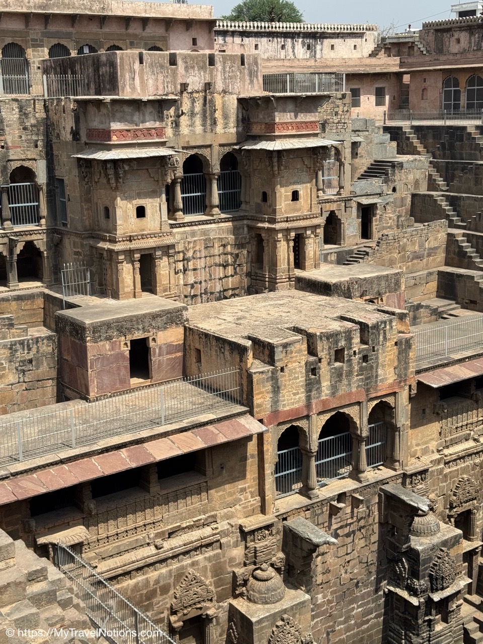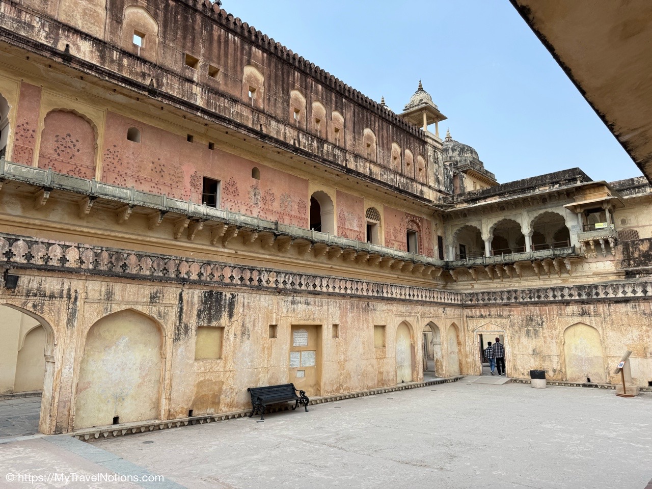 Looking down onto the lobby area of my 2nd floor room where I stayed at the Haveli Dharampura, a UNESCO awarded boutique hotel in the heart of Old Delhi. (March 20, 2025)