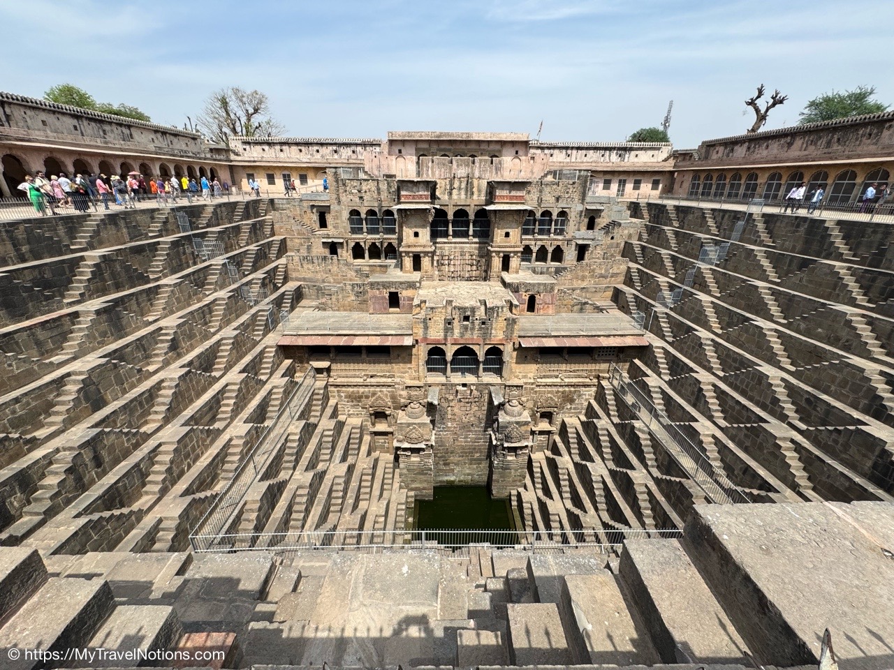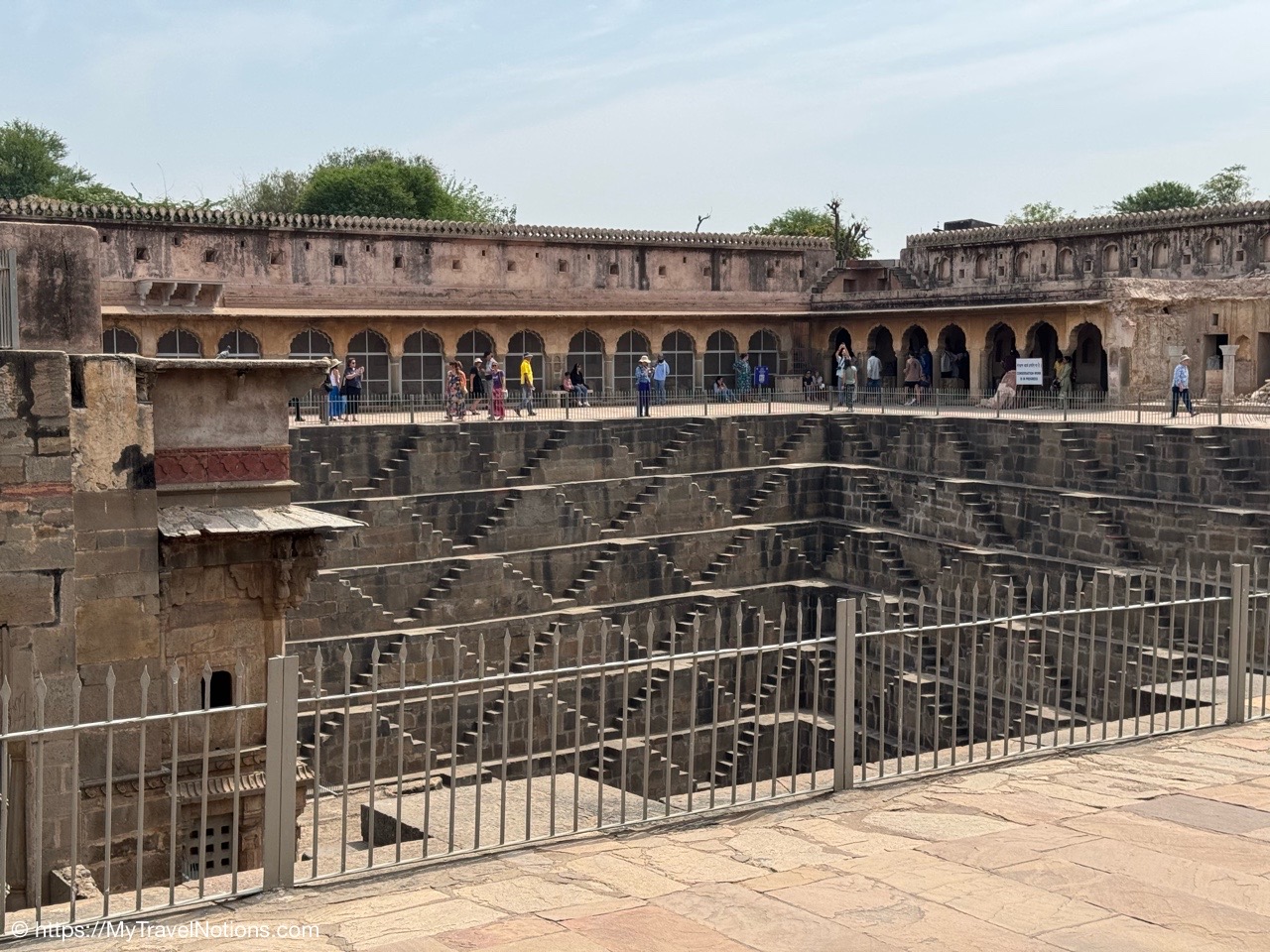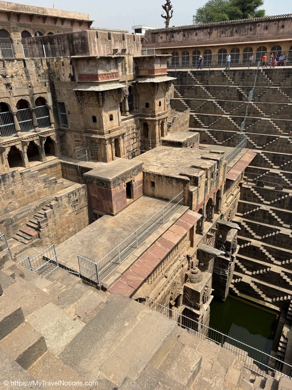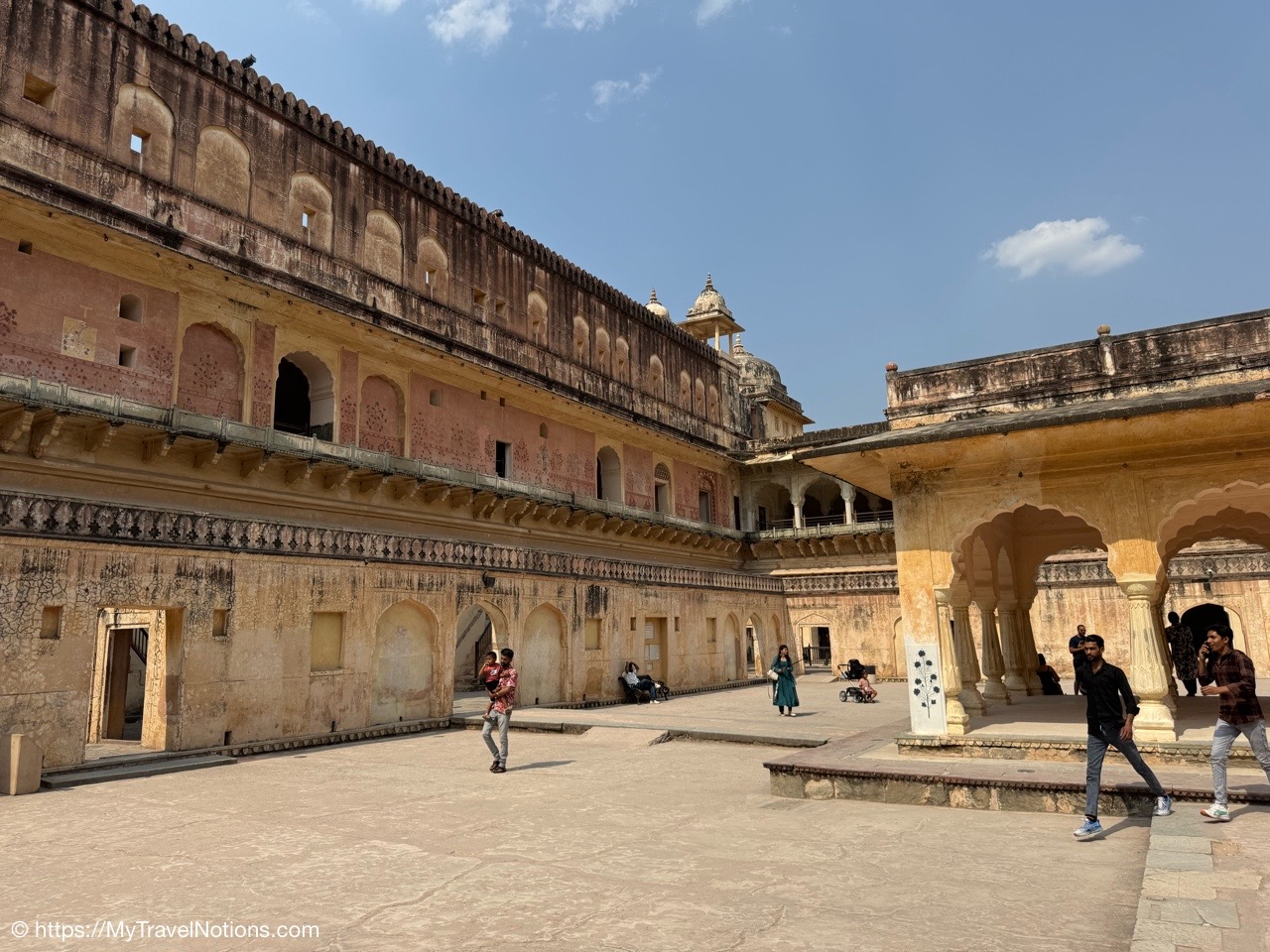 Looking down onto the lobby area of my 2nd floor room where I stayed at the Haveli Dharampura, a UNESCO awarded boutique hotel in the heart of Old Delhi. (March 20, 2025)