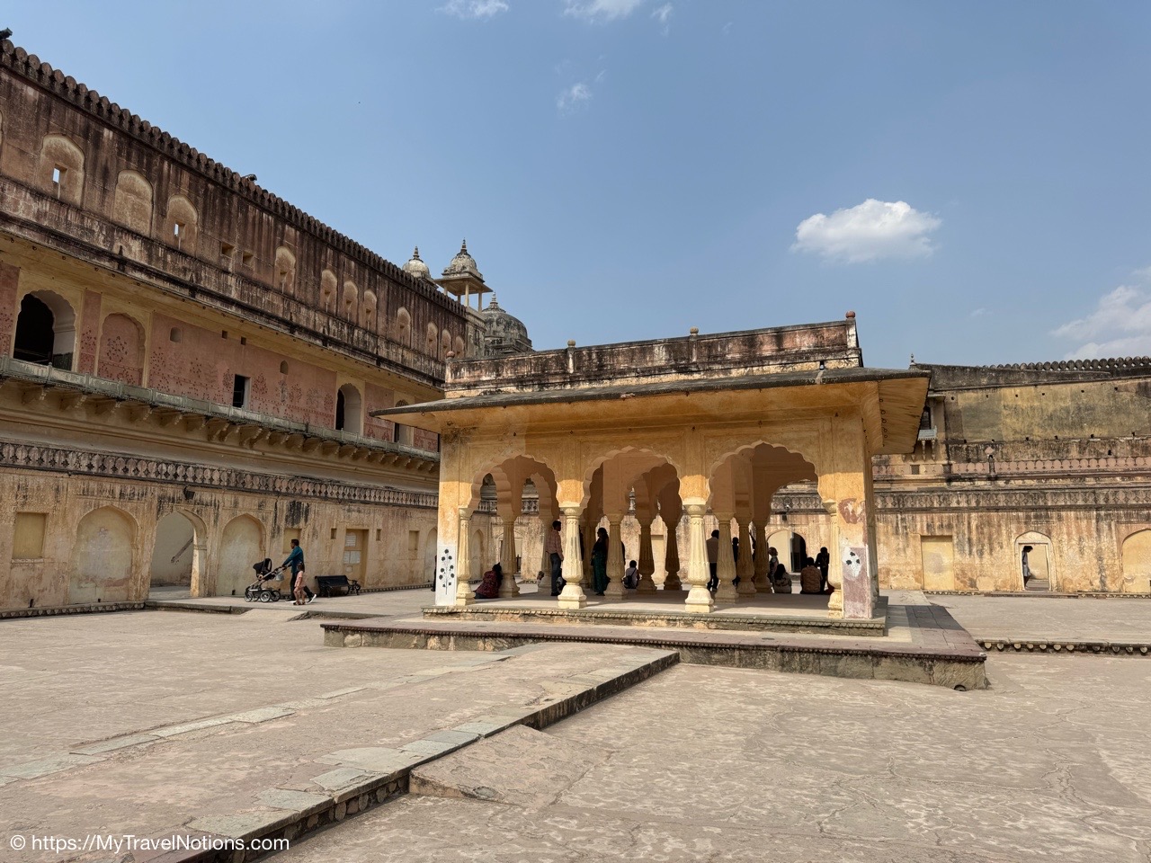 The lobby area of where I stayed at the Haveli Dharampura, a UNESCO awarded boutique hotel in the heart of Old Delhi. (March 20, 2025)