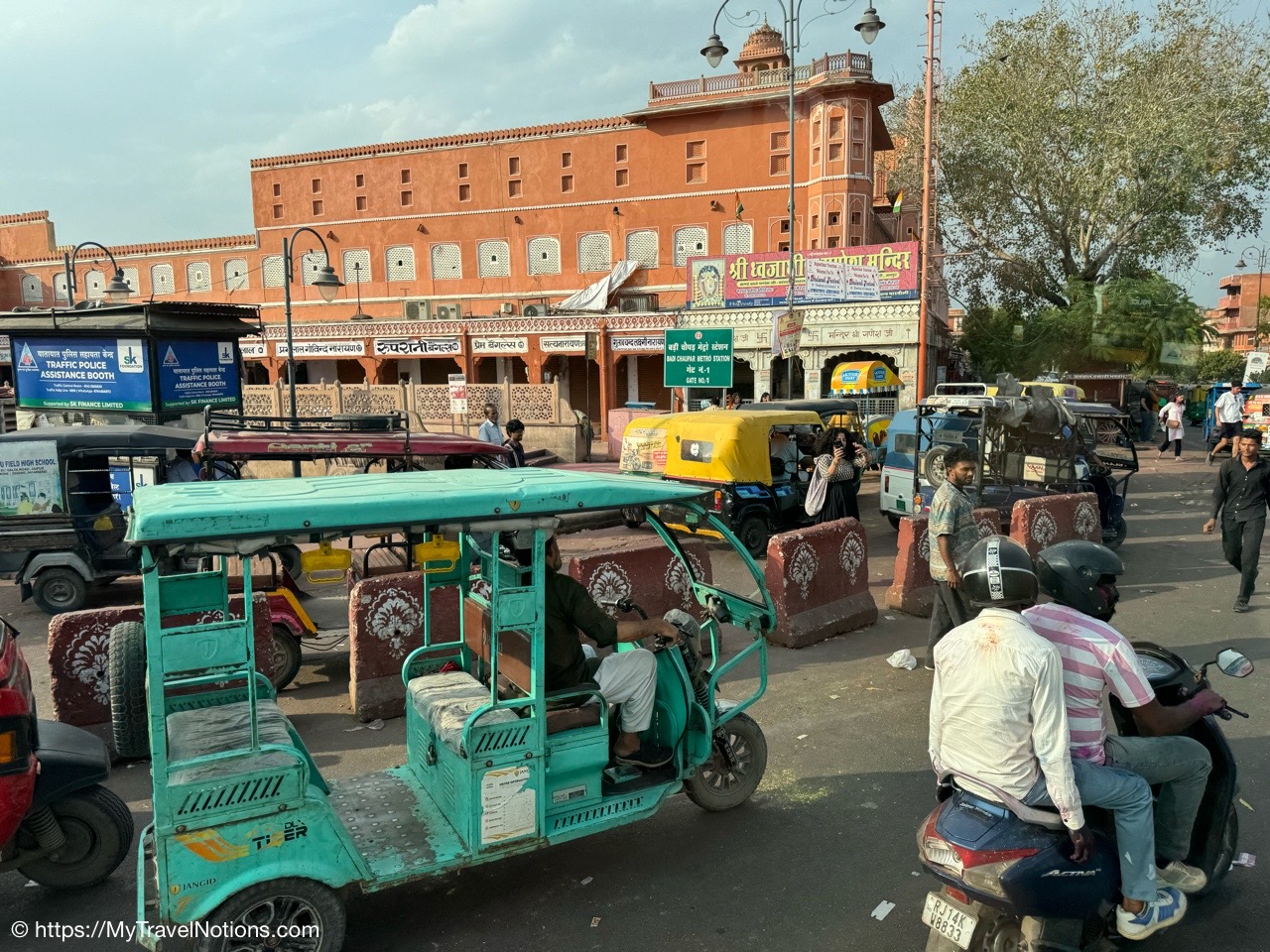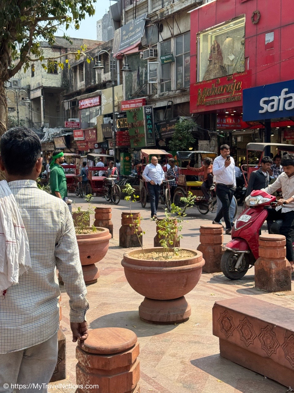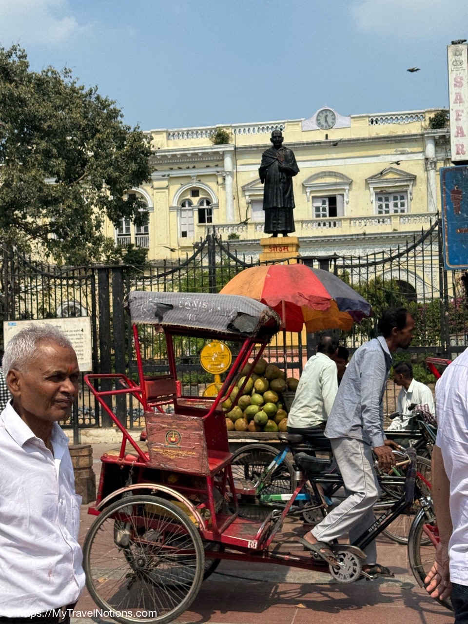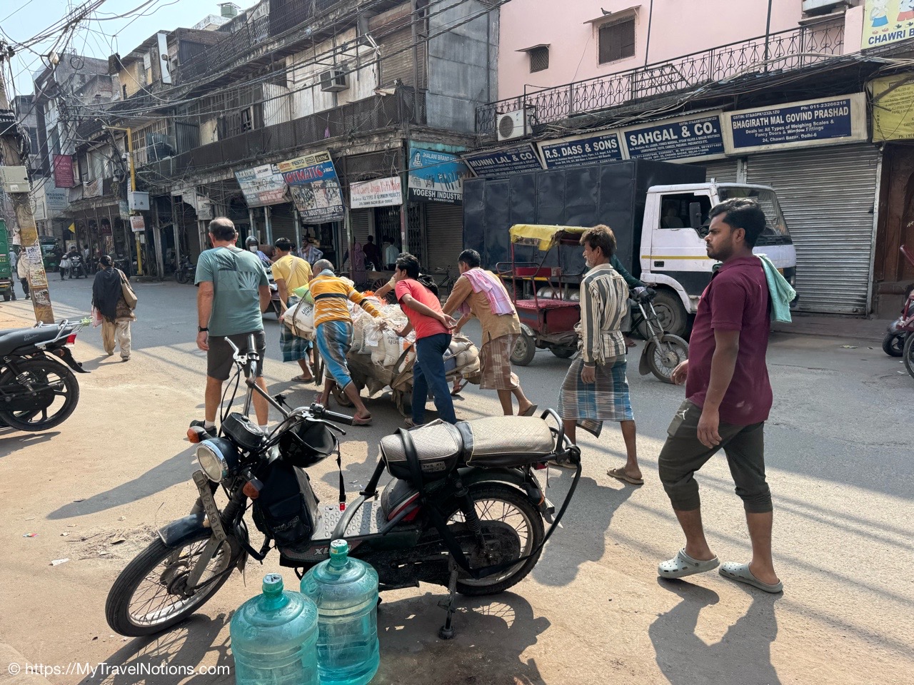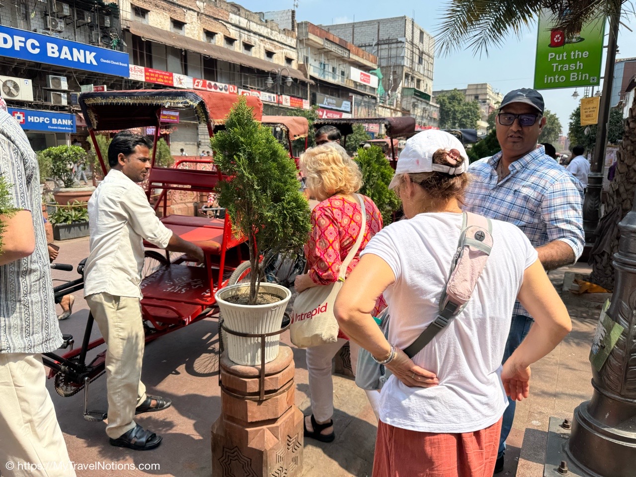 Kush, our Intrepid tour group leader, arranging cycle rickshaws for us around the Chandni Chowk, meaning Moonlight Square, one of the oldest and busiest markets in Old Delhi. (March 17, 2025)