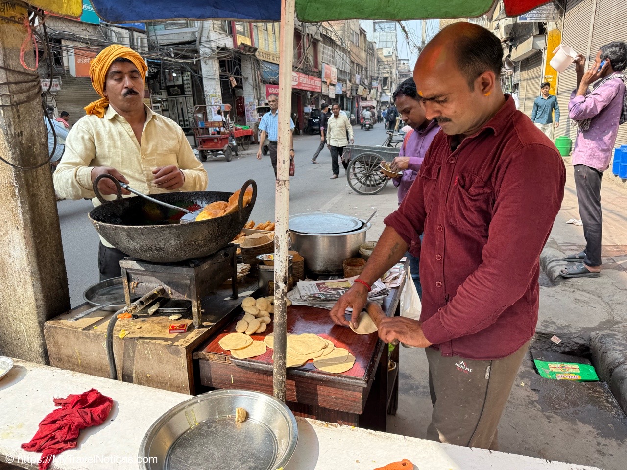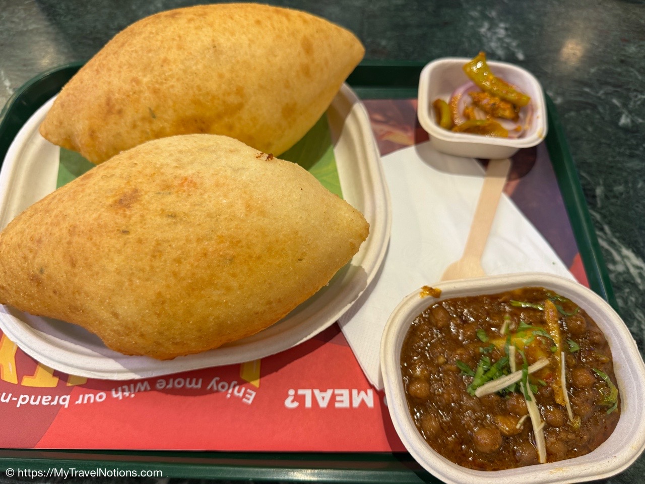 We stopped for an Intrepid group lunch at Haldiram’s in the food court at the Omaxe Mall in Chandni Chowk Old Delhi for all of us to try the North Indian dish of Chole Bhature. It’s a small dish of chana masala or spicy chickpea curry served with Puri Sabji, a thin fried bread made from wheat flour. (March 17, 2025)