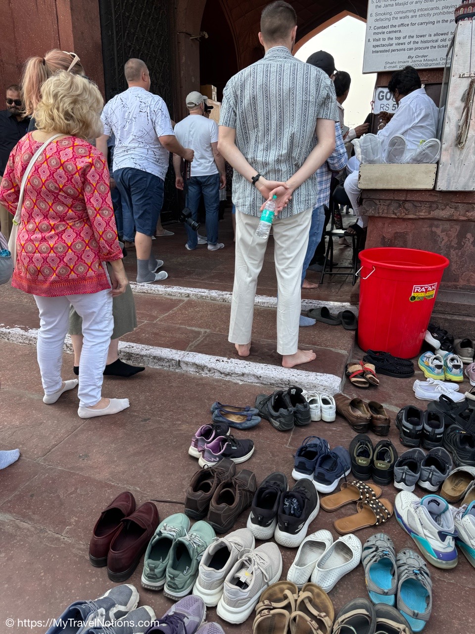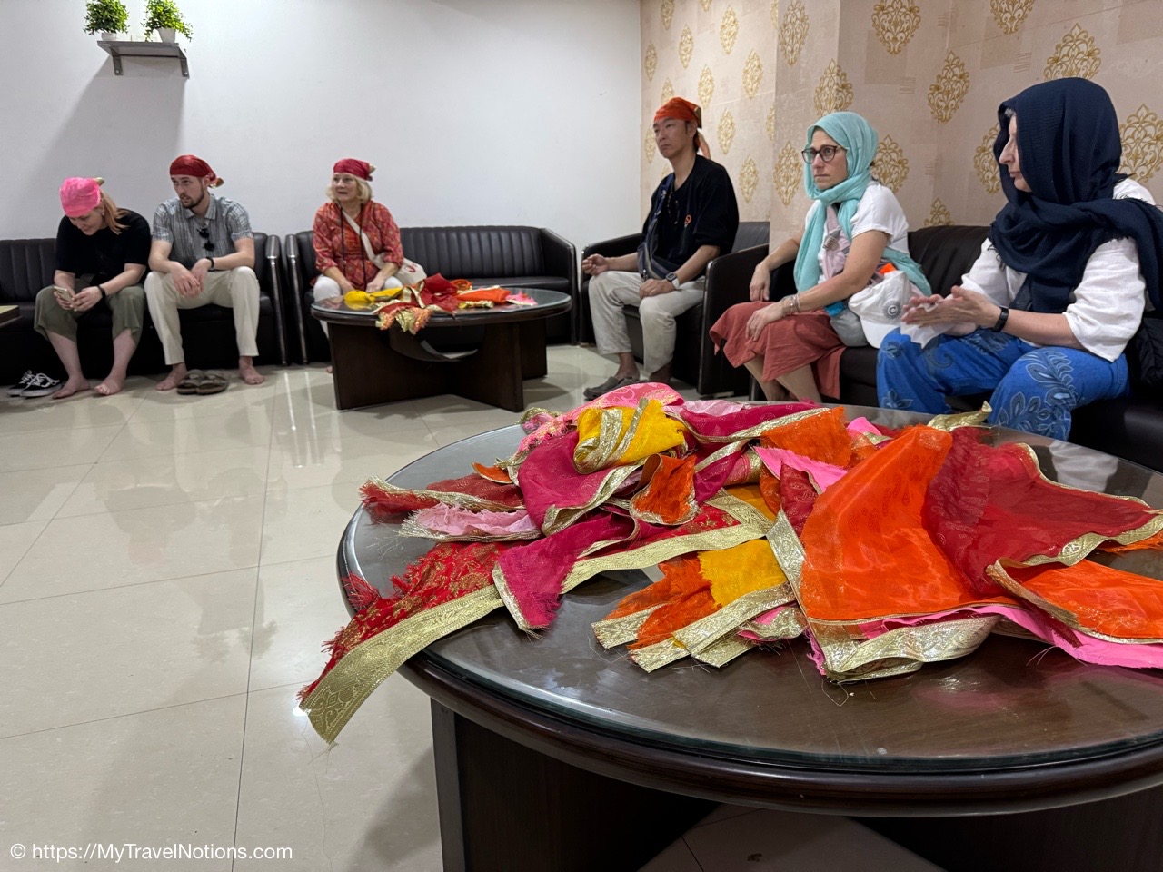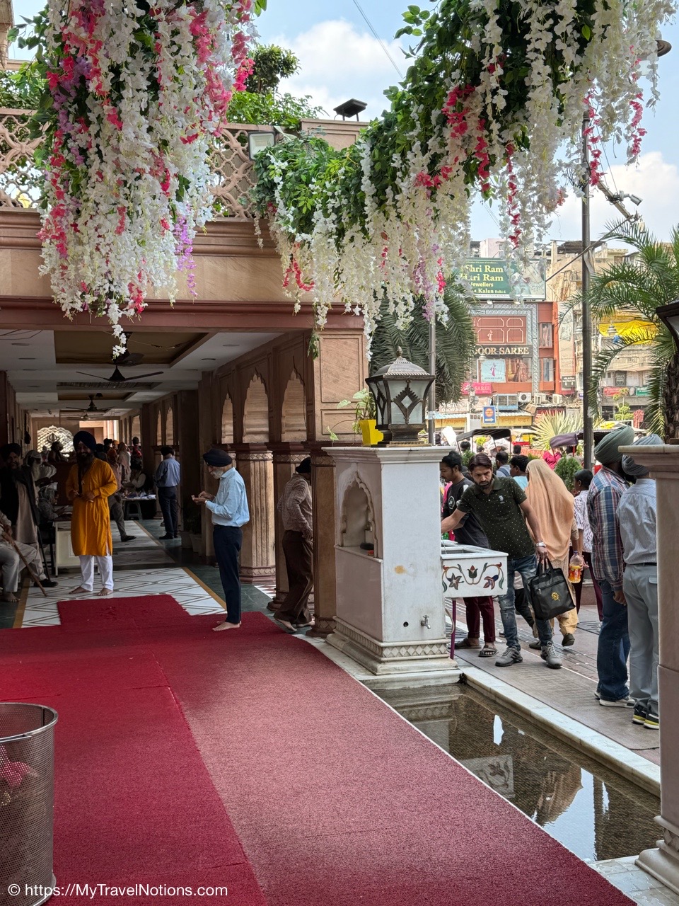 We’re preparing ourselves to enter the Gurdwara Sis Ganj Sahib, a place of assembly and worship in Sikhism.