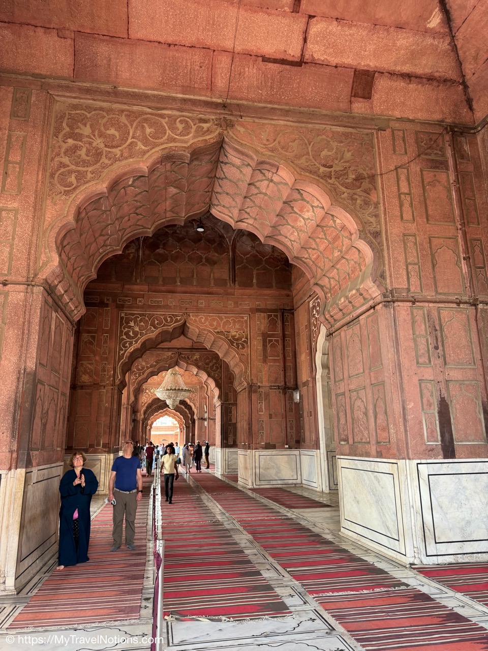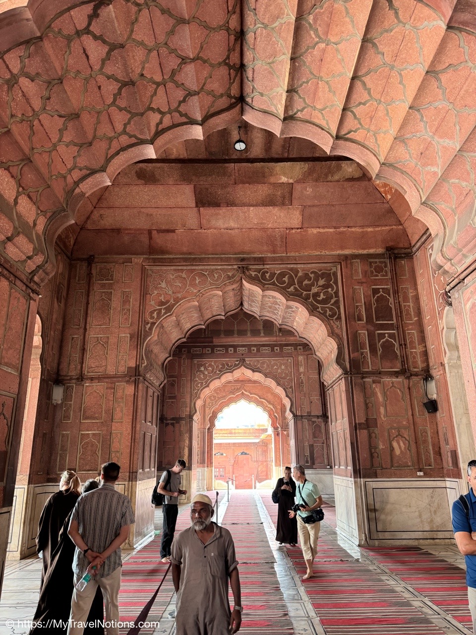 A view down the entire hallway inside the Jama Masjid mosque in Old Delhi. (March 17, 2025)