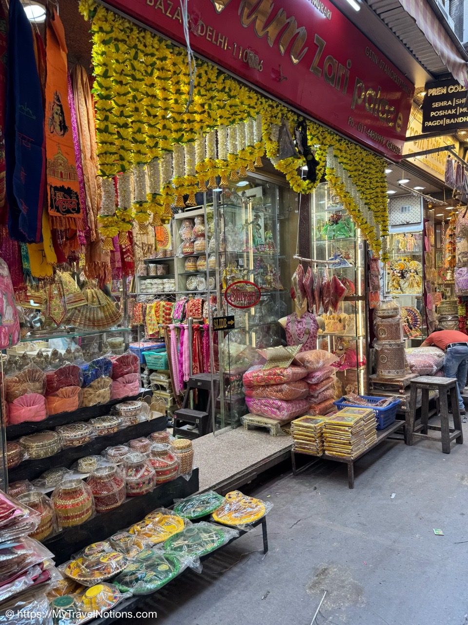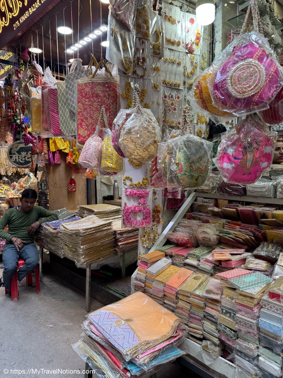We did a quick walk in the alleyway of the Kinari Bazaar Road a wholesale market area in Old Delhi for fancy laces, borders and tassles plus fancy paper items including envelopes for gifting, adornments for idols and festival decorations and much more. (March 17, 2025)