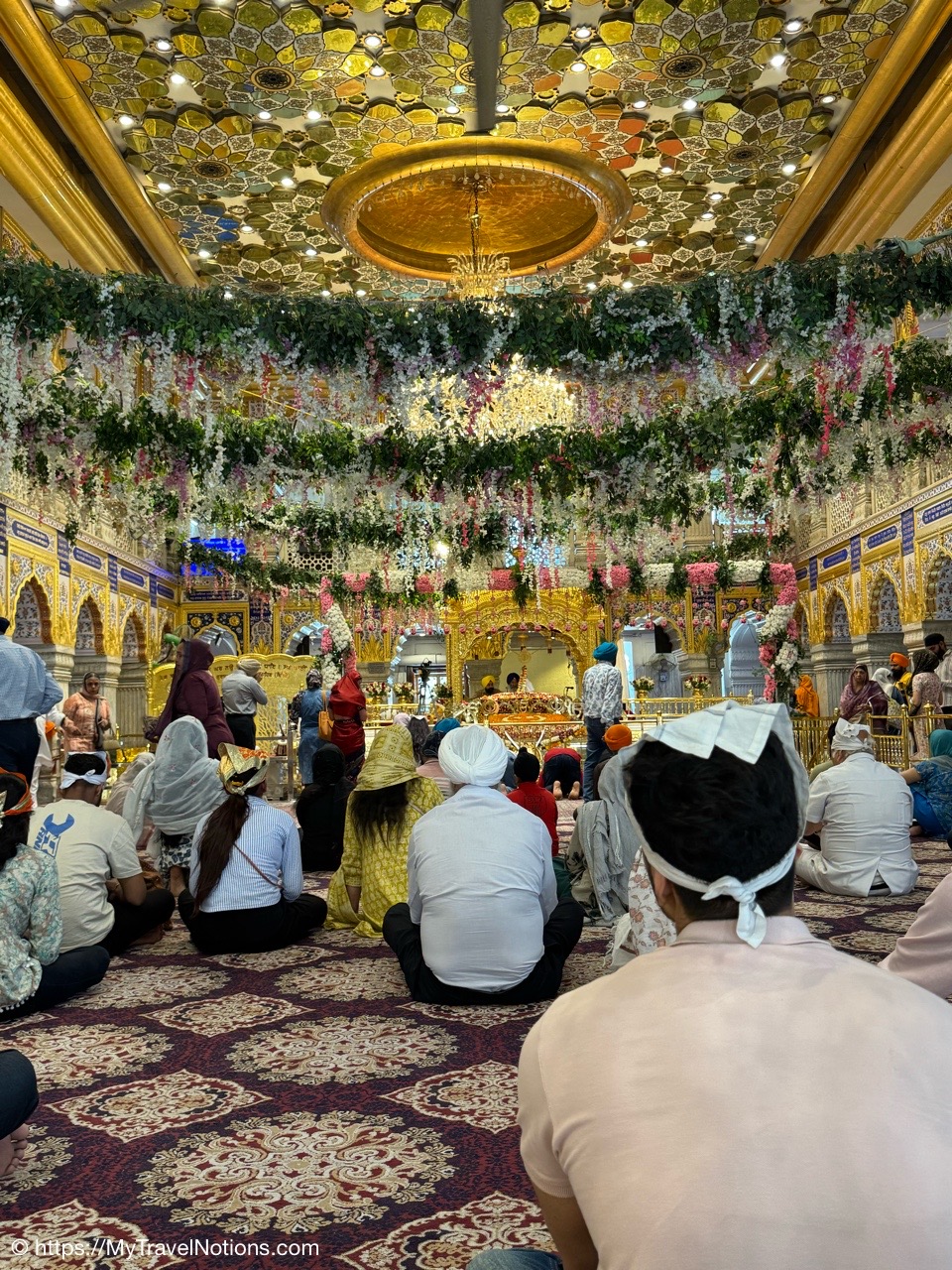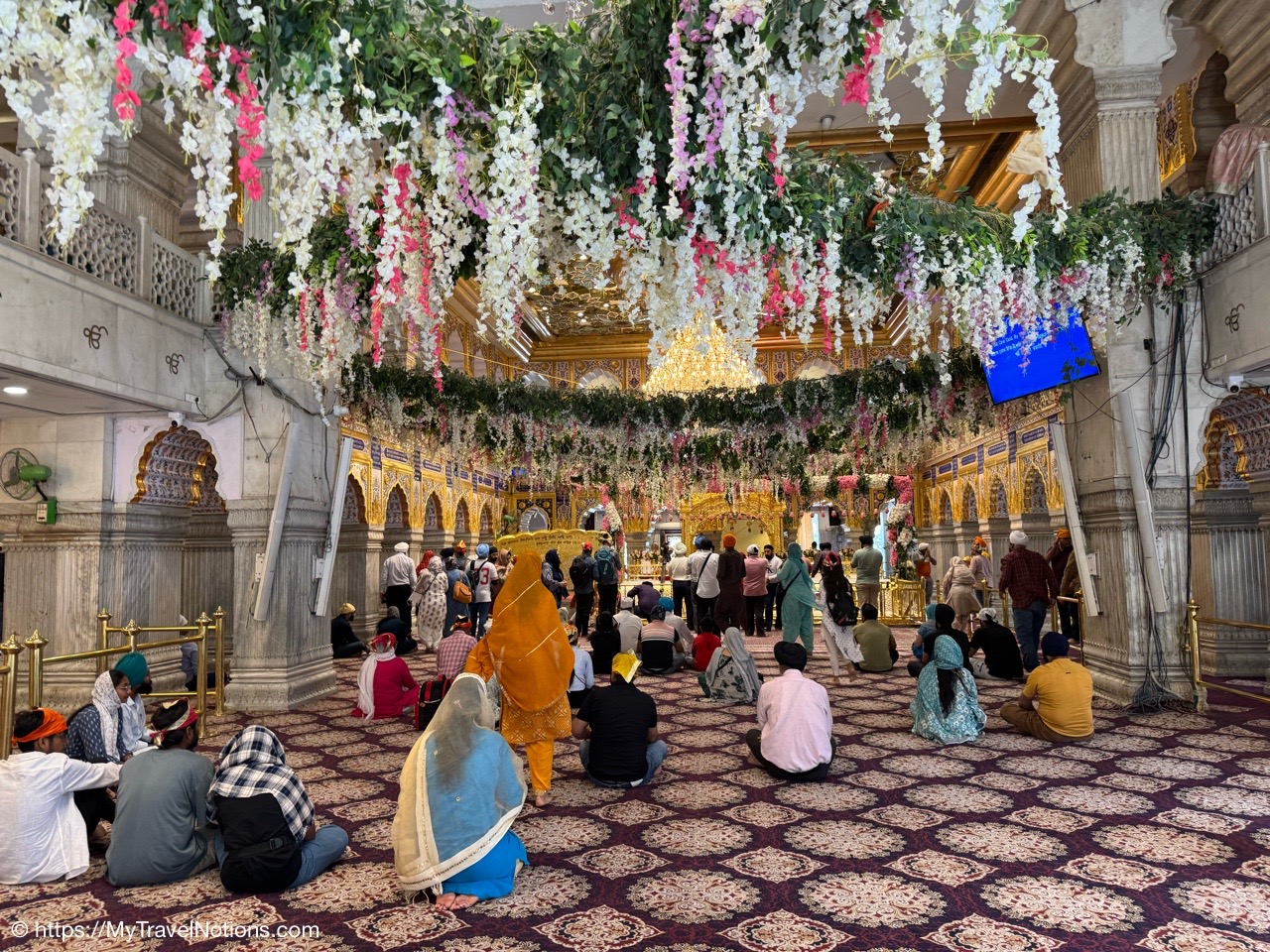 The Prayer hall inside the Gurdwara Sis Ganj Sahib in Old Delhi. There are no idols, statues, or religious pictures in a gurdwara, as Sikhs believe in one God and do not engage in ritualistic practices. (March 17, 2025)
