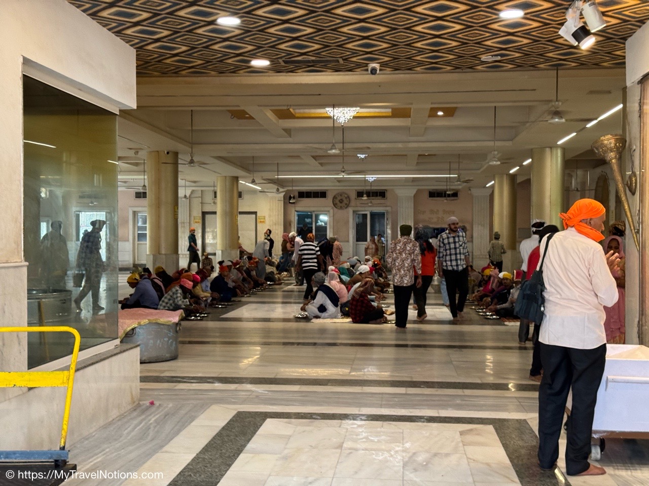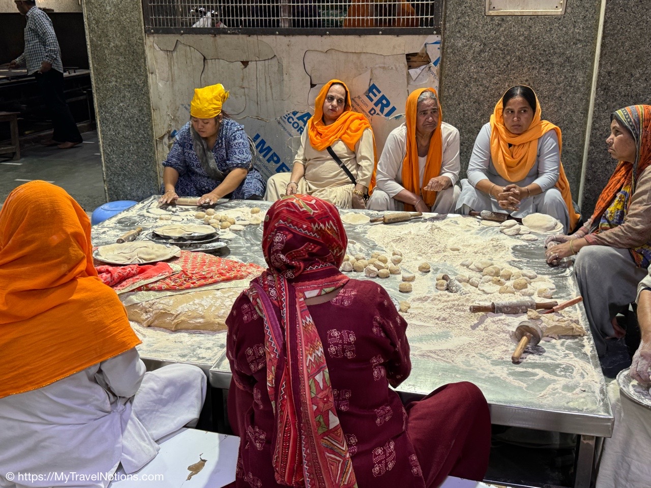 The communal eating and cooking of the Gurdwara Sis Ganj Sahib in Old Delhi. Gurdwaras, along with being places of worship, have a langar (communal kitchen) where free meals are served to anyone, regardless of their background or faith. (March 17, 2025)