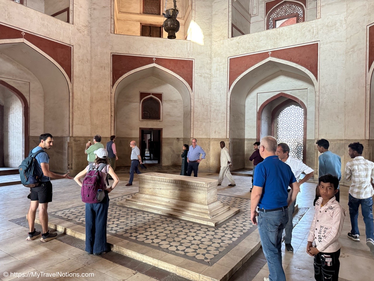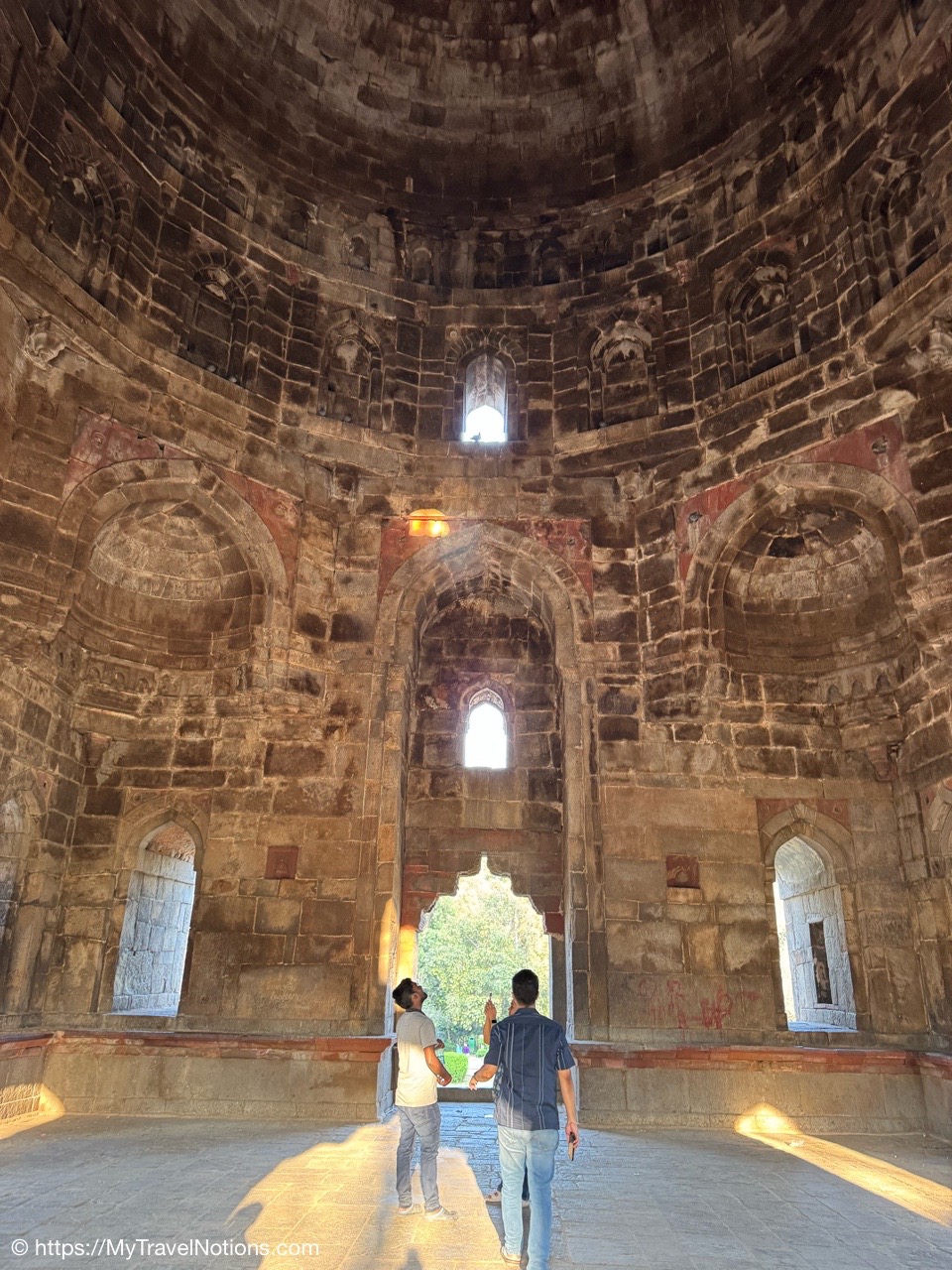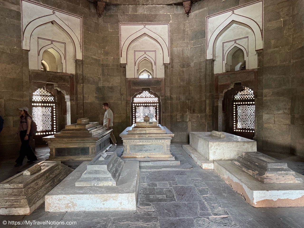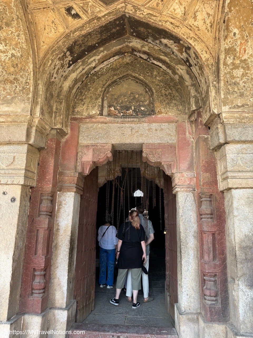 Entering the central tomb chamber of the cenotaphs inside the noble Isa Khan Niazi located in the Humayun’s Tomb complex in Delhi, India. The mausoleum, octagonal in shape and built mainly of red sandstone, was built in 1547–1548 during the reign of Sher Shah Suri. (March 17, 2025)