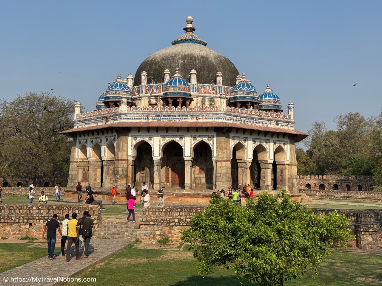 Walking up to the tomb of the noble Isa Khan Niazi is located in the Humayun’s Tomb complex in Delhi, India. The mausoleum, octagonal in shape and built mainly of red sandstone, was built in 1547–1548 during the reign of Sher Shah Suri. (March 17, 2025)