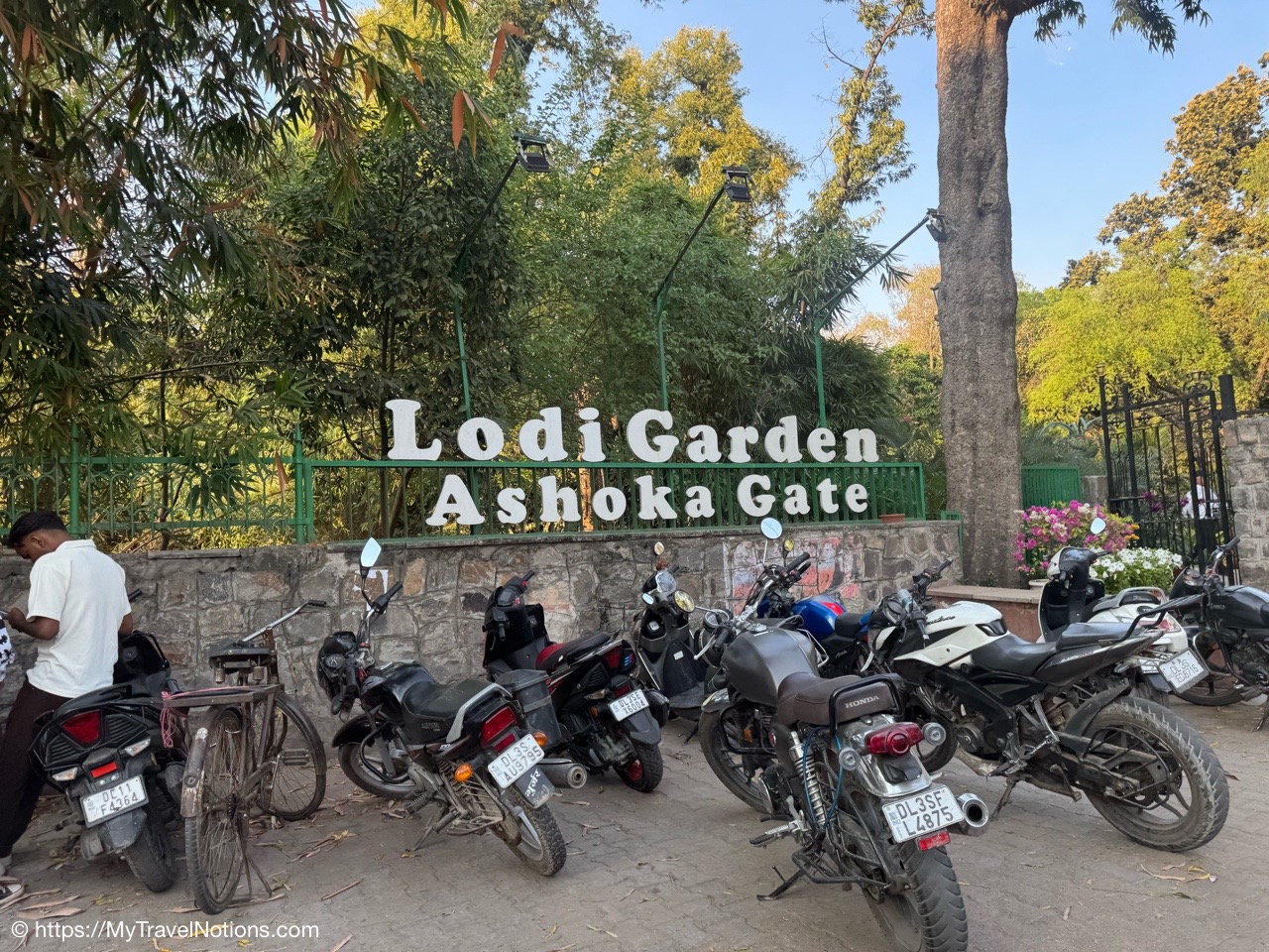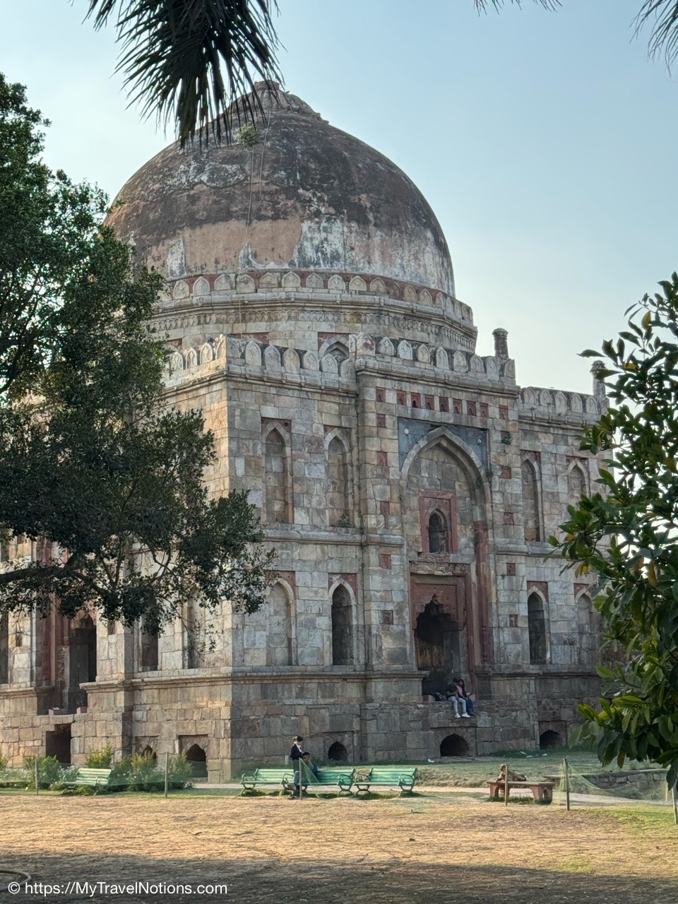 Walking into the beautiful Lodhi Gardens, a city 90 acre city park in New Delhi. Along with being a sprawling park, it contains a variety of monuments from around the the mid to late 1400s when Lodhi Dynasty lords chose it as their burial ground. (March 17, 2025)