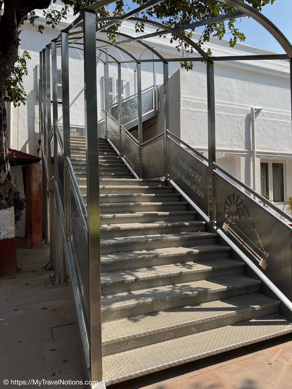 Heading up to the exhibit space of the Eternal Gandhi Multimedia Museum located within Gandhi Smriti, which is part of the Gandhi National Museum in New Delhi. (March 18, 2025)