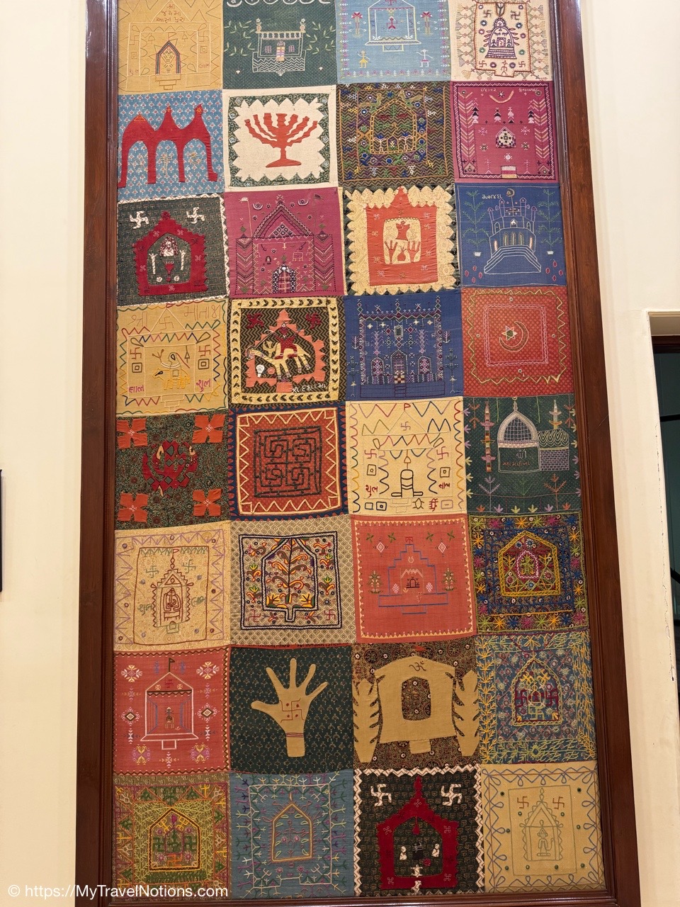 An applique and embroidery art piece at the Eternal Gandhi Multimedia Museum located within Gandhi Smriti, which is part of the Gandhi National Museum in New Delhi. (March 18, 2025)