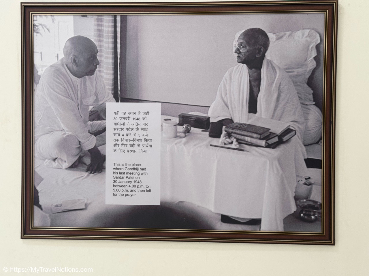 A photo of Mahatma Gandhi’s last meeting with Sardar Patel on Jan. 30, 1948 between 4:00 and 5:00 pm, before he left for prayer in the garden of the Gandhi Smriti (formerly Birla House) where he was shot and killed. It is now the Gandhi National Museum in Delhi. (March 18, 2025)