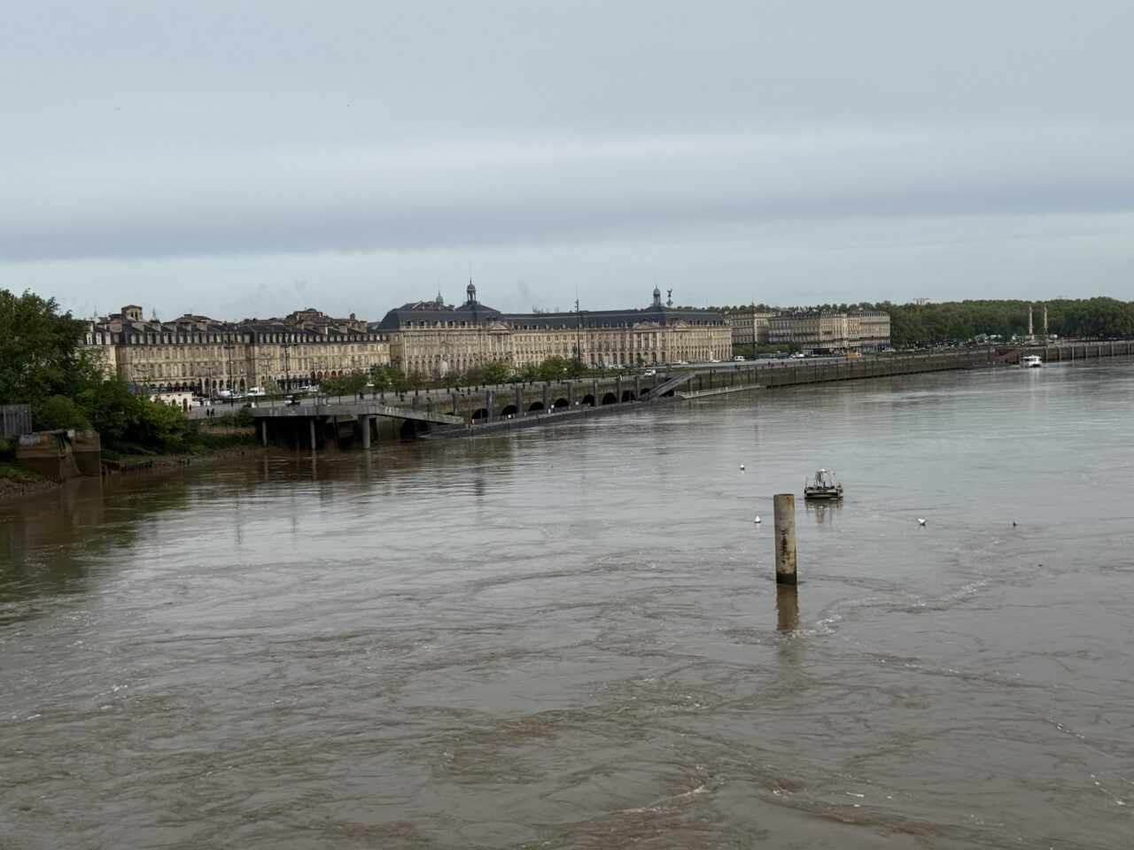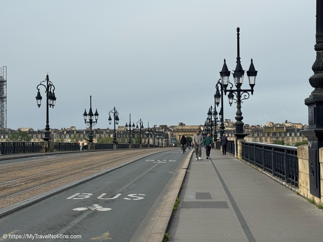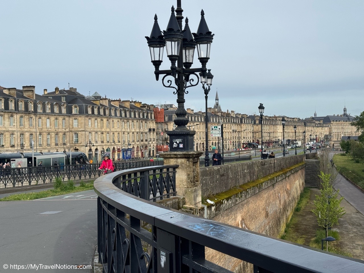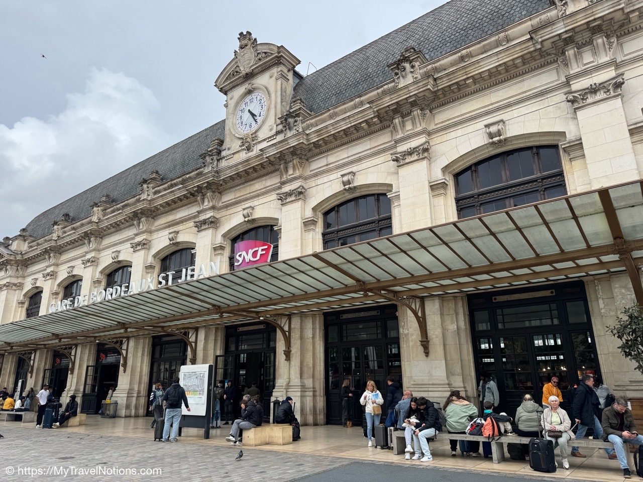 It was just a bit of a chilly, damp morning as we said goodbye to Bordeaux with a group morning walk to the stone bridge of Pont de Pierre, also sometimes referred to as the Pont Napoléon. Connecting the left and right banks of the Garonne, the bridge was commissioned by Napoleon I and inaugurated in 1822 and was the first stone bridge built in Bordeaux. Until then, it was necessary to cross the river by boat. (April 22, 2025)Getting in a morning walk towards the stone bridge of Pont de Pierre, also sometimes referred to as the Pont Napoléon in Bordeaux as our way of saying good-bye to our stay in Bordeaux. (April 22, 2025)First bridge over the river Garonne at Bordeaux, the Pont de Pierre was planned and designed during the First French Empire, under the orders of Napoleon I. (April 22, 2025)Walking along the Pont de Pierre with views of the Garonne river in Bordeaux. (April 22, 2025)Heading back to across the Pont de Pierre, back to our hotel, the Quality Hotel Bordeaux Centre to get cleaned up and finish packing for our tram ride to the Bordeaux Saint-Jean train station and then onto our less than 3-hour train ride to Sarlat-la-Canéda. (April 22, 2025)Heading back to our hotel, the Quality Hotel Bordeaux Centre to get cleaned up and finish packing for our tram ride to the Bordeaux Saint-Jean train station for our less than 3-hour train ride to Sarlat-la-Canéda. (April 22, 2025)Walking past the Porte Cailhau on the way back to the hotel, the Quality Hotel Bordeaux Centre to get cleaned up and finish packing for our tram ride to the Bordeaux Saint-Jean train station for our less than 3-hour train ride to Sarlat-la-Canéda. (April 22, 2025)Walking back through the Place du Parlement with our suitcases and backpacks as we head to tram station at the Place de la Bourse for 10-minute or so tram ride to the Bordeaux Saint-Jean train station. (April 22, 2025)At the Place de la Bourse where we picked up the tram for our 10-minute or so ride to the Bordeaux Saint-Jean train station. (April 22, 2025)Back at the Bordeaux Saint-Jean train station where we began our time into the city and now we’re saying good-bye as we move to our next location of our France & Friends journey: Sarlat-la-Canéda. (April 22, 2025)