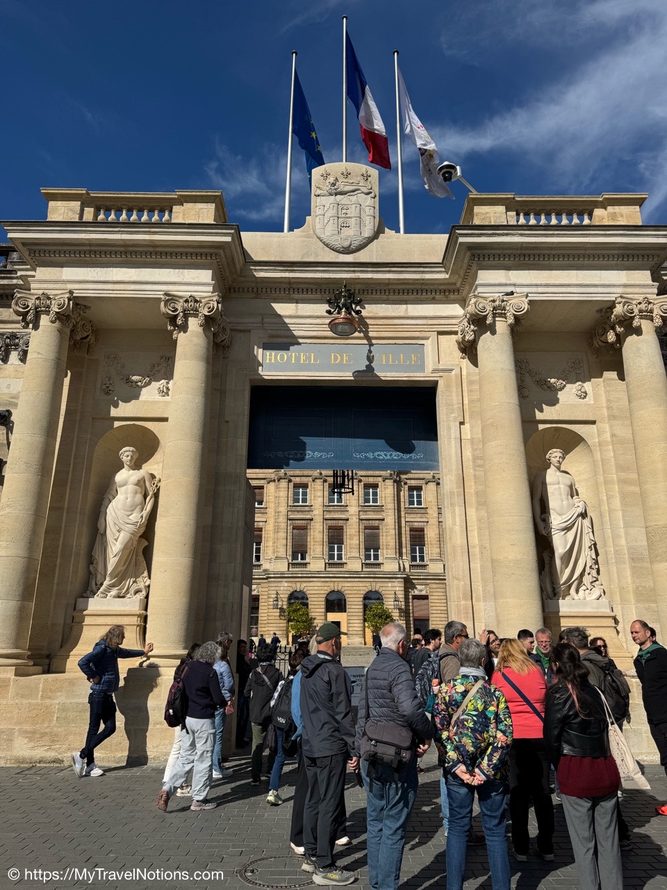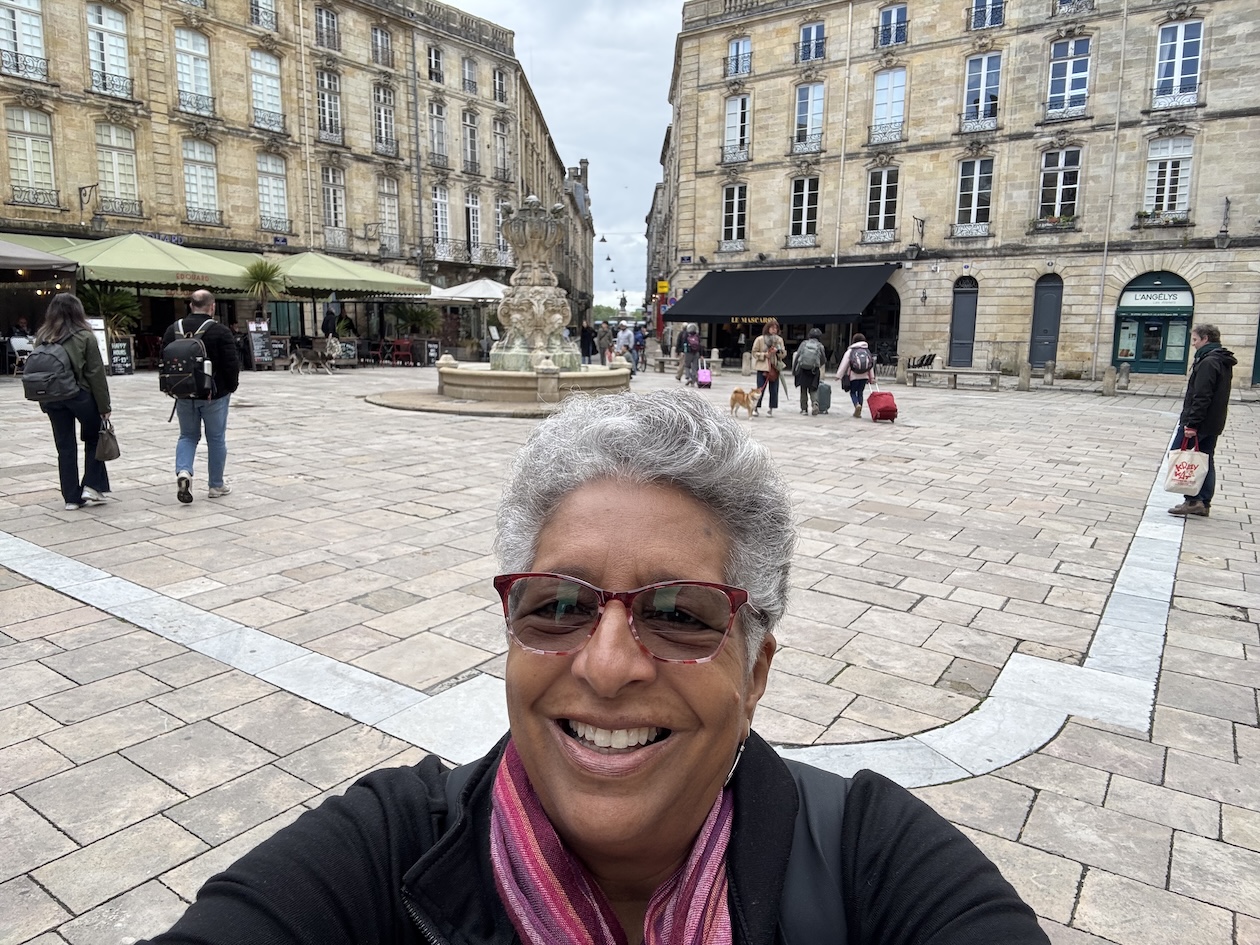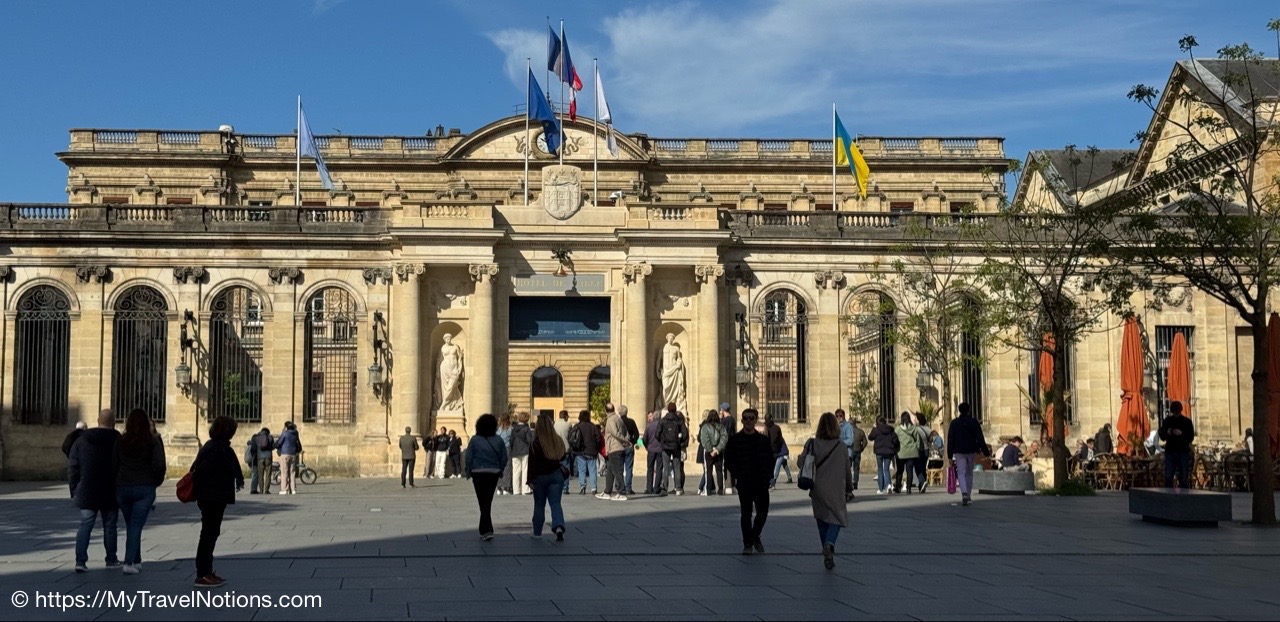 We’re in the Place Pey Berland, a historical square dominated by the Saint-André or Bordeaux Cathedral and the Palais Rohan or City Hall of Bordeaux. We’re here to do a short guided tour of the City Hall and the only tour available, while we’re here in Bordeaux, is in Spanish, but we took it anyway. (April 18, 2025)Rhe Place Pey Berland, a historical square dominated by the Saint-André or Bordeaux Cathedral and the Palais Rohan or City Hall of Bordeaux. (April 18, 2025)The Palais Rohan is the Hôtel de Ville, or City Hall, of Bordeaux was originally built between 1771 and 1784. It was commissioned as the residence of Archbishop Mériadec de Rohan and designed in the Louis XIV neoclassical style. (April 18, 2025)The Palais Rohan is the Hôtel de Ville, or City Hall, of Bordeaux was originally built between 1771 and 1784. It was commissioned as the residence of Archbishop Mériadec de Rohan and designed in the Louis XIV neoclassical style. (April 18, 2025)Entering the decorative walled gate entrance into the grand courtyard of the Palais Rohan also the Hôtel de Ville and City Hall of Bordeaux. (April 18, 2025)The seal above the walled gate entrance into the grand courtyard of the Palais Rohan also the Hôtel de Ville and City Hall of Bordeaux. (April 18, 2025)The grand courtyard after entering the decorative walled gate of the Palais Rohan also the Hôtel de Ville and City Hall of Bordeaux. (April 18, 2025)Inside the municipal council room of the Bordeaux City Hall was designed in 1889 and is characteristic of official architecture during the Third Republic. (April 18, 2025)Inside the municipal council room of the Bordeaux City Hall was designed in 1889 and is characteristic of official architecture during the Third Republic. (April 18, 2025)Inside the municipal council room of the Bordeaux City Hall was designed in 1889 and is characteristic of official architecture during the Third Republic. (April 18, 2025)Work was being done, so we could not climb the Grand Escalier d’Honneur staircase known for its elegant masterpiece of stone masonry inside the City Hall of Bordeaux, also known as Palais Rohan. (April 18, 2025)We also walked through the different salons of the City Hall in Bordeaux, also known as Palais Rohan, that are connected to one another. And, check out the beautiful parquet floors. (April 18, 2025)Walking through the connected salons or lounges inside the City Hall of Bordeaux, also known as Palais Rohan, with their beautiful parquet floors and dazzling chandeliers. (April 18, 2025)Walking through the connected salons or lounges inside the City Hall of Bordeaux, also known as Palais Rohan, with their beautiful parquet floors and dazzling chandeliers. (April 18, 2025)The beautiful parquet floors of the Grand Salon D’Honneur in the Bordeaux City Hall, also known as Palais Rohan. (April 18, 2025)The gates leading to the rear façade of the Palais Rohan or Bordeaux City Hall overlooking the beautiful garden that also contains the entrance into the Musée des Beaux-Arts. (April 18, 2025)The rear façade of the Palais Rohan or Bordeaux City Hall overlooking the beautiful Jardin de la Mairie which also includes the entrance into the Musée des Beaux-Arts (which we plan to visit) that includes paintings by famous names such as Brueghel, Delacroix and Matisse as well as pieces by artists from Bordeaux. (April 18, 2025)The rear façade of the Palais Rohan or Bordeaux City Hall overlooking the beautiful Jardin de la Mairie which also includes the entrance into the Musée des Beaux-Arts (which we plan to visit) that includes paintings by famous names such as Brueghel, Delacroix and Matisse as well as pieces by artists from Bordeaux. (April 18, 2025)The “Strange Fruit” exhibit in the Jardin de la Mairie of the Palais Rohan or Bordeaux’s City Hall is a sculpture by artist Sandrine Plante-Rougeol. This resin and metal tree sculpture was inaugurated on December 2, 2019, on the International Day for the Abolition of Slavery. Its purpose is to evoke the uprooting and new roots of populations deported by the triangular trade. The sculpture’s title, “Strange Fruit”, also references the famous anti-lynching song sung by Billie Holiday in 1939, which denounces the horrors of lynching in the United States. (April 18, 2025)The “Strange Fruit” exhibit in the Jardin de la Mairie of the Palais Rohan or Bordeaux’s City Hall is a sculpture by artist Sandrine Plante-Rougeol. This resin and metal tree sculpture was inaugurated on December 2, 2019, on the International Day for the Abolition of Slavery. The three figures in the sculpture symbolize three emotions: anger, fear and abandonment. Slavery was part of a growing drive for the city. During the 18th and 19th centuries, Bordeaux was an important slave port, which saw some 500 slave expeditions that cause the deportation of 150,000 Africans by Bordeaux shipowners. (April 18, 2025)Walking through the streets of Bordeaux. (April 18, 2025)The Dijeaux Gate, one of the historic entrances to the city of Bordeaux. (April 18, 2025)Walking along the Rue Des Remparts in Bordeaux. (April 18, 2025)Finding the Signorini Tartufi, a truffle specialty shop along Rue Des Remparts in Bordeaux where we stopped to purchase a variety of truffle-related items. (April 18, 2025)Alice, the truffle hunter, at the Signorini Tartufi along Rue Des Remparts in Bordeaux. She introduced me to the delicious taste of truffles while we were traveling together in Italy in 2023. (April 18, 2025)Getting in an all-girls photo at the Signorini Tartufi along Rue Des Remparts in Bordeaux. From left: Alice, Tammy, Rosie and me. John took the photo. (April 18, 2025)Inside the Signorini Tartufi in Bordeaux we receive a refresher course on truffles. There are four kinds of truffles that are used in his products black, white, sweet and summer. Black truffles have the strongest taste. (April 18, 2025)One of my truffle favorites are the truffle potato chips here at the Si