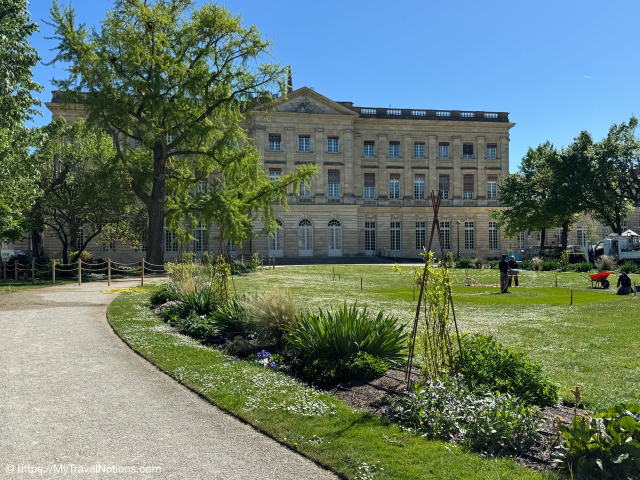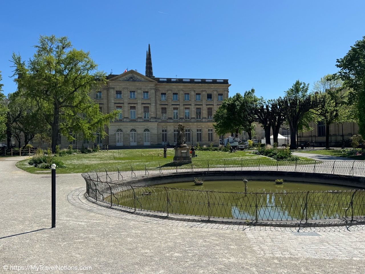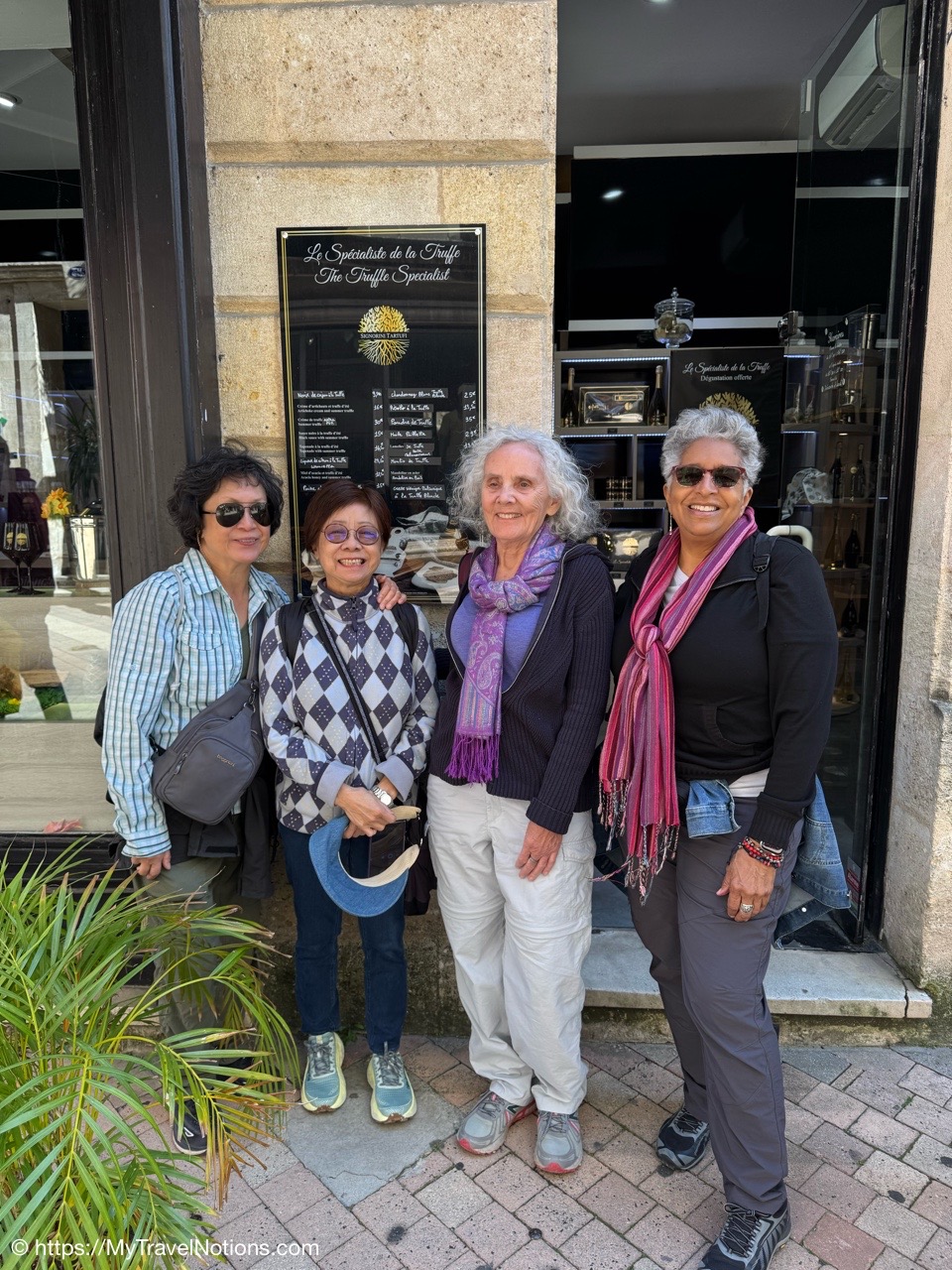 We’re in the Place Pey Berland, a historical square dominated by the Saint-André or Bordeaux Cathedral and the Palais Rohan or City Hall of Bordeaux. We’re here to do a short guided tour of the City Hall and the only tour available, while we’re here in Bordeaux, is in Spanish, but we took it anyway. (April 18, 2025)Rhe Place Pey Berland, a historical square dominated by the Saint-André or Bordeaux Cathedral and the Palais Rohan or City Hall of Bordeaux. (April 18, 2025)The Palais Rohan is the Hôtel de Ville, or City Hall, of Bordeaux was originally built between 1771 and 1784. It was commissioned as the residence of Archbishop Mériadec de Rohan and designed in the Louis XIV neoclassical style. (April 18, 2025)The Palais Rohan is the Hôtel de Ville, or City Hall, of Bordeaux was originally built between 1771 and 1784. It was commissioned as the residence of Archbishop Mériadec de Rohan and designed in the Louis XIV neoclassical style. (April 18, 2025)Entering the decorative walled gate entrance into the grand courtyard of the Palais Rohan also the Hôtel de Ville and City Hall of Bordeaux. (April 18, 2025)The seal above the walled gate entrance into the grand courtyard of the Palais Rohan also the Hôtel de Ville and City Hall of Bordeaux. (April 18, 2025)The grand courtyard after entering the decorative walled gate of the Palais Rohan also the Hôtel de Ville and City Hall of Bordeaux. (April 18, 2025)Inside the municipal council room of the Bordeaux City Hall was designed in 1889 and is characteristic of official architecture during the Third Republic. (April 18, 2025)Inside the municipal council room of the Bordeaux City Hall was designed in 1889 and is characteristic of official architecture during the Third Republic. (April 18, 2025)Inside the municipal council room of the Bordeaux City Hall was designed in 1889 and is characteristic of official architecture during the Third Republic. (April 18, 2025)Work was being done, so we could not climb the Grand Escalier d’Honneur staircase known for its elegant masterpiece of stone masonry inside the City Hall of Bordeaux, also known as Palais Rohan. (April 18, 2025)We also walked through the different salons of the City Hall in Bordeaux, also known as Palais Rohan, that are connected to one another. And, check out the beautiful parquet floors. (April 18, 2025)Walking through the connected salons or lounges inside the City Hall of Bordeaux, also known as Palais Rohan, with their beautiful parquet floors and dazzling chandeliers. (April 18, 2025)Walking through the connected salons or lounges inside the City Hall of Bordeaux, also known as Palais Rohan, with their beautiful parquet floors and dazzling chandeliers. (April 18, 2025)The beautiful parquet floors of the Grand Salon D’Honneur in the Bordeaux City Hall, also known as Palais Rohan. (April 18, 2025)The gates leading to the rear façade of the Palais Rohan or Bordeaux City Hall overlooking the beautiful garden that also contains the entrance into the Musée des Beaux-Arts. (April 18, 2025)The rear façade of the Palais Rohan or Bordeaux City Hall overlooking the beautiful Jardin de la Mairie which also includes the entrance into the Musée des Beaux-Arts (which we plan to visit) that includes paintings by famous names such as Brueghel, Delacroix and Matisse as well as pieces by artists from Bordeaux. (April 18, 2025)The rear façade of the Palais Rohan or Bordeaux City Hall overlooking the beautiful Jardin de la Mairie which also includes the entrance into the Musée des Beaux-Arts (which we plan to visit) that includes paintings by famous names such as Brueghel, Delacroix and Matisse as well as pieces by artists from Bordeaux. (April 18, 2025)The “Strange Fruit” exhibit in the Jardin de la Mairie of the Palais Rohan or Bordeaux’s City Hall is a sculpture by artist Sandrine Plante-Rougeol. This resin and metal tree sculpture was inaugurated on December 2, 2019, on the International Day for the Abolition of Slavery. Its purpose is to evoke the uprooting and new roots of populations deported by the triangular trade. The sculpture’s title, “Strange Fruit”, also references the famous anti-lynching song sung by Billie Holiday in 1939, which denounces the horrors of lynching in the United States. (April 18, 2025)The “Strange Fruit” exhibit in the Jardin de la Mairie of the Palais Rohan or Bordeaux’s City Hall is a sculpture by artist Sandrine Plante-Rougeol. This resin and metal tree sculpture was inaugurated on December 2, 2019, on the International Day for the Abolition of Slavery. The three figures in the sculpture symbolize three emotions: anger, fear and abandonment. Slavery was part of a growing drive for the city. During the 18th and 19th centuries, Bordeaux was an important slave port, which saw some 500 slave expeditions that cause the deportation of 150,000 Africans by Bordeaux shipowners. (April 18, 2025)Walking through the streets of Bordeaux. (April 18, 2025)The Dijeaux Gate, one of the historic entrances to the city of Bordeaux. (April 18, 2025)Walking along the Rue Des Remparts in Bordeaux. (April 18, 2025)Finding the Signorini Tartufi, a truffle specialty shop along Rue Des Remparts in Bordeaux where we stopped to purchase a variety of truffle-related items. (April 18, 2025)Alice, the truffle hunter, at the Signorini Tartufi along Rue Des Remparts in Bordeaux. She introduced me to the delicious taste of truffles while we were traveling together in Italy in 2023. (April 18, 2025)Getting in an all-girls photo at the Signorini Tartufi along Rue Des Remparts in Bordeaux. From left: Alice, Tammy, Rosie and me. John took the photo. (April 18, 2025)Inside the Signorini Tartufi in Bordeaux we receive a refresher course on truffles. There are four kinds of truffles that are used in his products black, white, sweet and summer. Black truffles have the strongest taste. (April 18, 2025)One of my truffle favorites are the truffle potato chips here at the Si