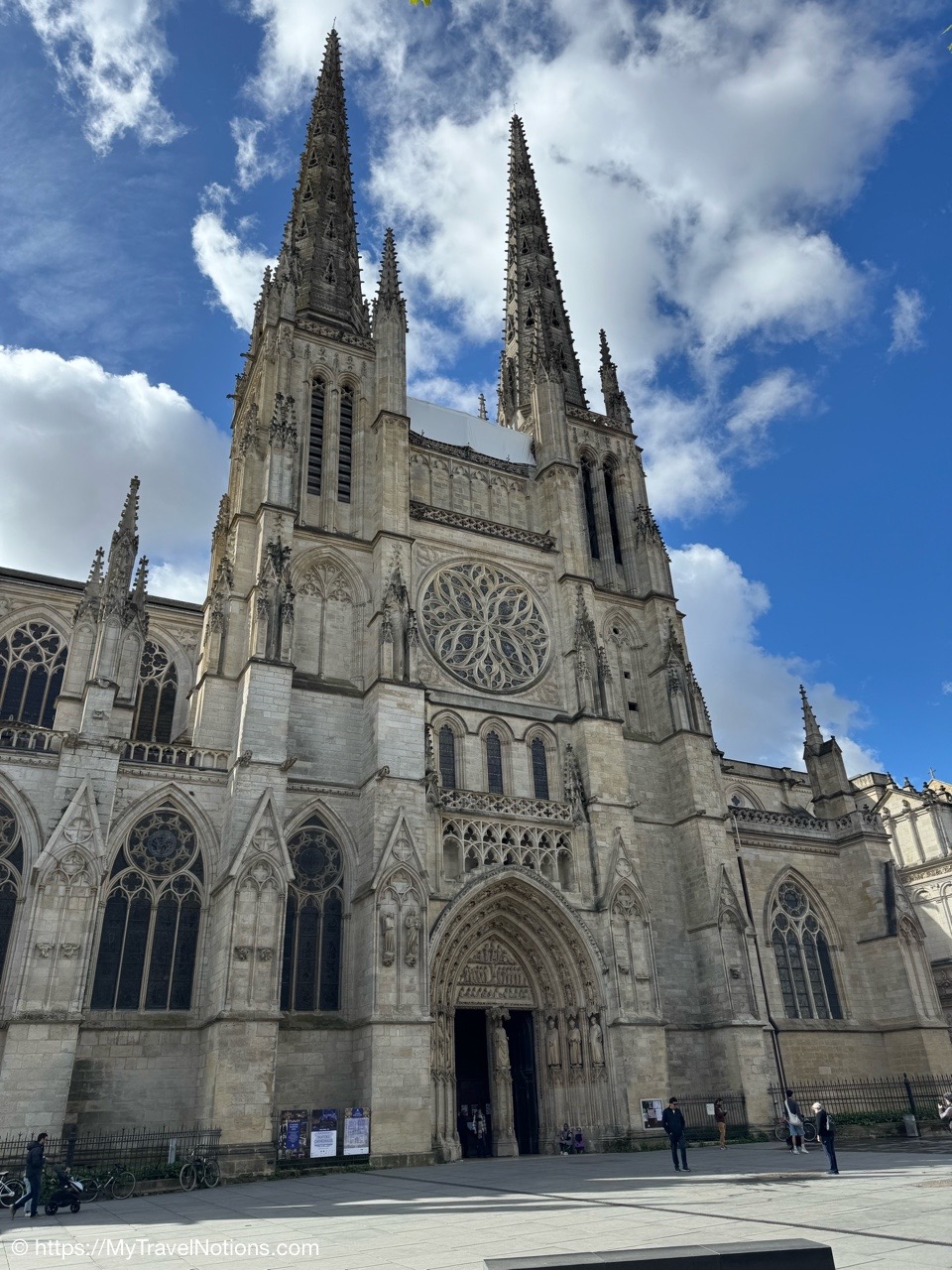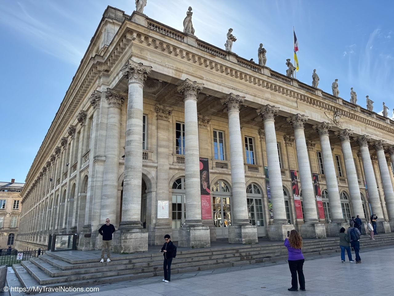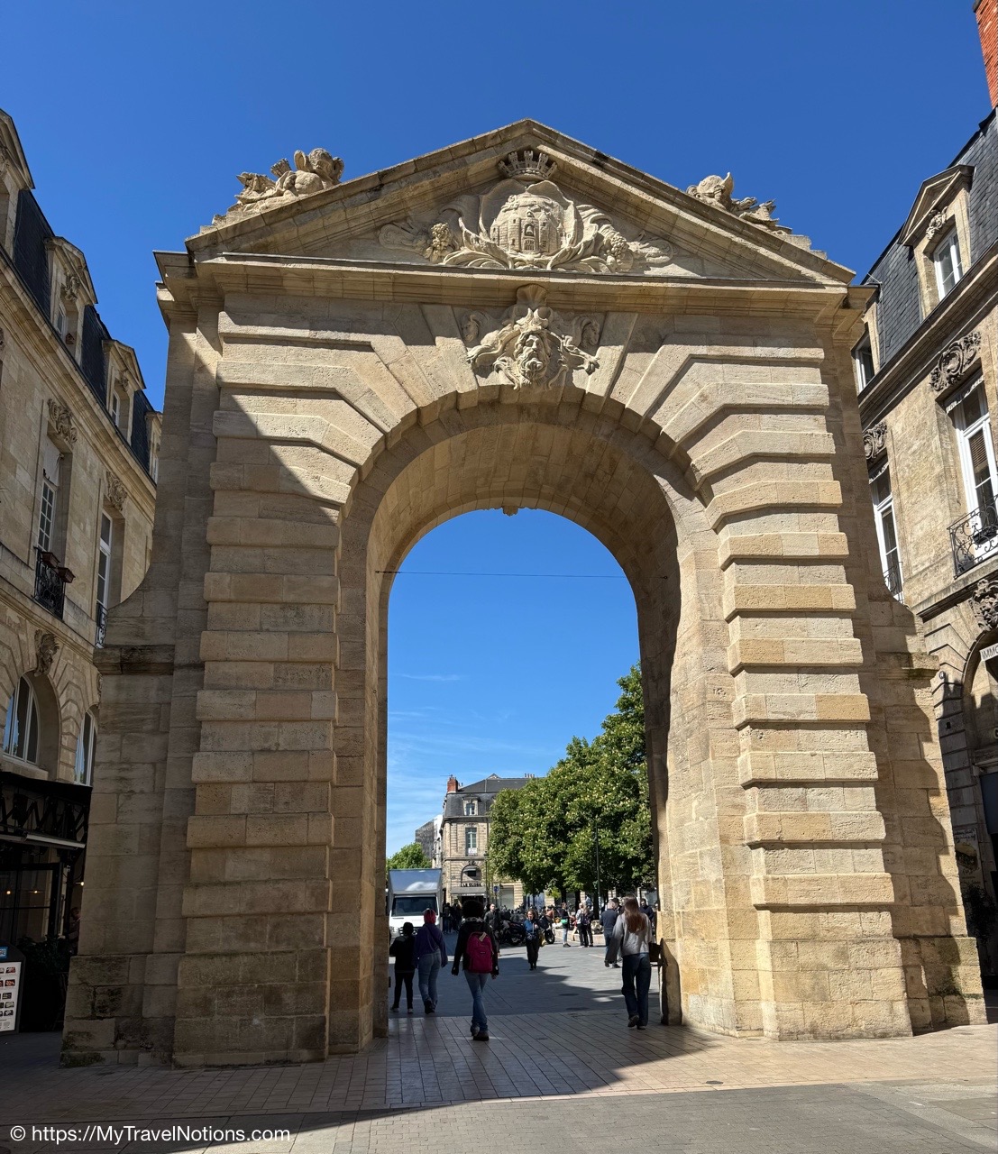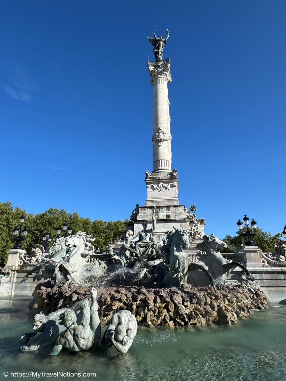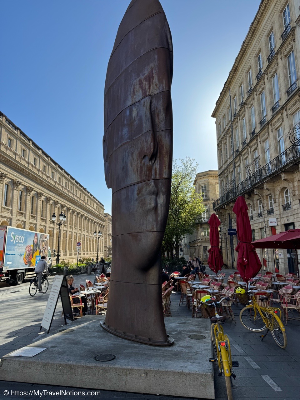Here we are at the beginning of our morning free walking tour of Bordeaux with the stunning UNESCO World Heritage Monument aux Girondins behind us located in Place des Quinconces, one of the biggest square in Europe. From left: Alice, me, Rosie, Tammy and John. (April 16, 2025)The Monument aux Girondins in Bordeaux was built between 1894 and 1902 in memory of the Girondists who fell victim to the Reign of Terror during the French Revolution. The bronze figures on this size of the fountain symbolizing the Triumph of the Republic. (April 16, 2025)A close-up of the Triumph of the Republic fountain at the Monument aux Girondins in Bordeaux. (April 16, 2025)A close-up of the Triumph of the Republic fountain at the Monument aux Girondins in Bordeaux. (April 16, 2025)The Monument aux Girondins in Bordeaux was built between 1894 and 1902 in memory of the Girondists who fell victim to the Reign of Terror during the French Revolution. The bronze figures on this size of the fountain symbolizing the Triumph of the Republic. (April 16, 2025)At the top of the 177 feet or 54 meter tall Monument aux Girondins, erected between 1894 and 1902 in memory of the Girondists who were beheaded during the French Revolution, is this Statue of Liberty breaking its chains. (April 16, 2025)The Monument aux Girondins in Bordeaux was built between 1894 and 1902 in memory of the Girondists who fell victim to the Reign of Terror during the French Revolution. (April 16, 2025)A cast iron sculpture of a woman’s head, by Spanish artist Jaume Plensa, by the Opéra National de Bordeaux. (April 16, 2025)Walking by the Opéra National de Bordeaux in the heart of the city’s historic center in the Place de la Comédie. (April 16, 2025)Our free morning walking tour group of Bordeaux, standing across from the Opéra National de Bordeaux getting historical information from our wonderful guide, Ani. (April 16, 2025)And, across from the Opéra National de Bordeaux in the Place de la Comédie is the InterContinental Grand Hotel de Bordeaux. In 1789, some 10 years after building the Opera House, architect Victor Louis begins construction of this private hotel for M. Sacriste de Rolly. (April 16, 2025)Walking towards the Église Notre-Dame (also called Saint-Dominique) Baroque style church was constructed at the end of the 17th century (1684- 1707). (April 16, 2025)The Église Notre-Dame (also called Saint-Dominique) Baroque style church was constructed at the end of the 17th century (1684- 1707). (April 16, 2025)The Église Notre-Dame (also called Saint-Dominique) Baroque style church was constructed at the end of the 17th century (1684- 1707). (April 16, 2025)The altar inside the Église Notre-Dame (also called Saint-Dominique) Baroque style church in Bordeaux. (April 16, 2025)The altar inside the Église Notre-Dame (also called Saint-Dominique) Baroque style church in Bordeaux. (April 16, 2025)The pulpit and side chapels inside the Église Notre-Dame (also called Saint-Dominique) Baroque style church in Bordeaux. (April 16, 2025)The pulpit and side chapels inside the Église Notre-Dame (also called Saint-Dominique) Baroque style church in Bordeaux. (April 16, 2025)The side chapels inside the Église Notre-Dame (also called Saint-Dominique) Baroque style church in Bordeaux. (April 16, 2025)Dating from the 19th century, the beautiful stained glass windows at the Église Notre-Dame are attributed to the master Bordeaux glassmakers Villiet and Hutrel. (April 16, 2025)The Chapelle de Sainte Thérèse de l’Enfant-Jésus et de la Sainte Face inside the Église Notre-Dame in Bordeaux in honor of Saint Thérèse who became a Carmelite nun at the age of 15 in 1888 and died at the age of 24 in 1897. (April 16, 2025)Mass being held in the side chapels of the Église Notre-Dame in Bordeaux. (April 16, 2025)This bronze statue of Spanish painter Francisco de Goya (1746-1828) is located just outside the Eglise Notre Dame in the Place du Chapelet in Bordeaux. Although Goya was born in Spain and is considered the most important Spanish artist of the late 18th and early 19th centuries. In 1824 Goya emigrated to Bordeaux, France, where he lived until his death on April 16, 1828 at the age of 82. Goya lived under a cloud of suspicion by the authorities in Spain and in the shadow of the Inquisition. He lost his hearing after a serious illness in 1792, and his health steadily declined. That did, however, give him the pretext of fleeing Spain to seek medical treatment in Bordeaux. (April 16, 2025)Heading through the Passage Sarget in Bordeaux, named after Baron Sarget, a wealthy wine merchant and shipowner, who financed its construction. (April 16, 2025)Inside the Passage Sarget in Bordeaux, named after Baron Sarget, a wealthy wine merchant and shipowner, who financed its construction. (April 16, 2025)Inside the Passage Sarget in Bordeaux, named after Baron Sarget, a wealthy wine merchant and shipowner, who financed its construction. (April 16, 2025)This is one of a number of brass scallop shells on the streets of Bordeaux. It is the symbol of the Camino de Santiago, a pilgrimage since the Middle Ages. (April 16, 2025)Walking along the streets of Bordeaux. (April 16, 2025)Walking along the streets of Bordeaux. (April 16, 2025)Walking along the streets of Bordeaux. (April 16, 2025)A book selling market in the Place Jean-Moulin park across from the main entrance to the Saint André Cathedral in Bordeaux. (April 16, 2025)The bronze statue “Gloria Victis” or Glory to the Vanquished at the Place Jean-Moulin park across from the main entrance to the Cathédrale Saint-André de Bordeaux. The statue was created following the French military defeat in the Franco-Prussian War (1870-71) commemorating those who lost their lives in the conflict. (April 16, 2025)The Cathédrale Saint-André de Bordeaux is a Catholic church dedicated to Saint Andrew. The Cathedral was originally constructed in the 11th century, though little of this remains today. The current Cath