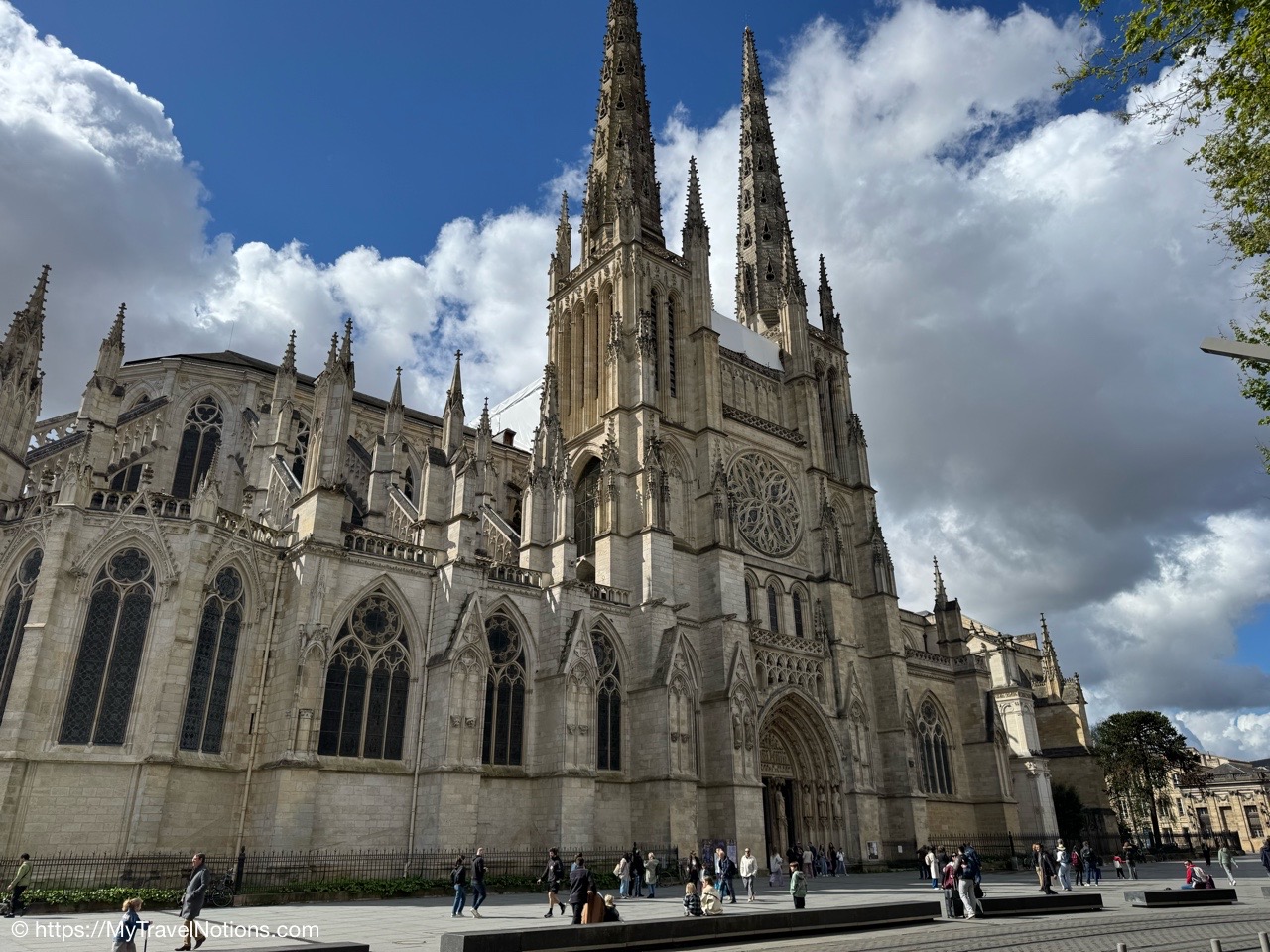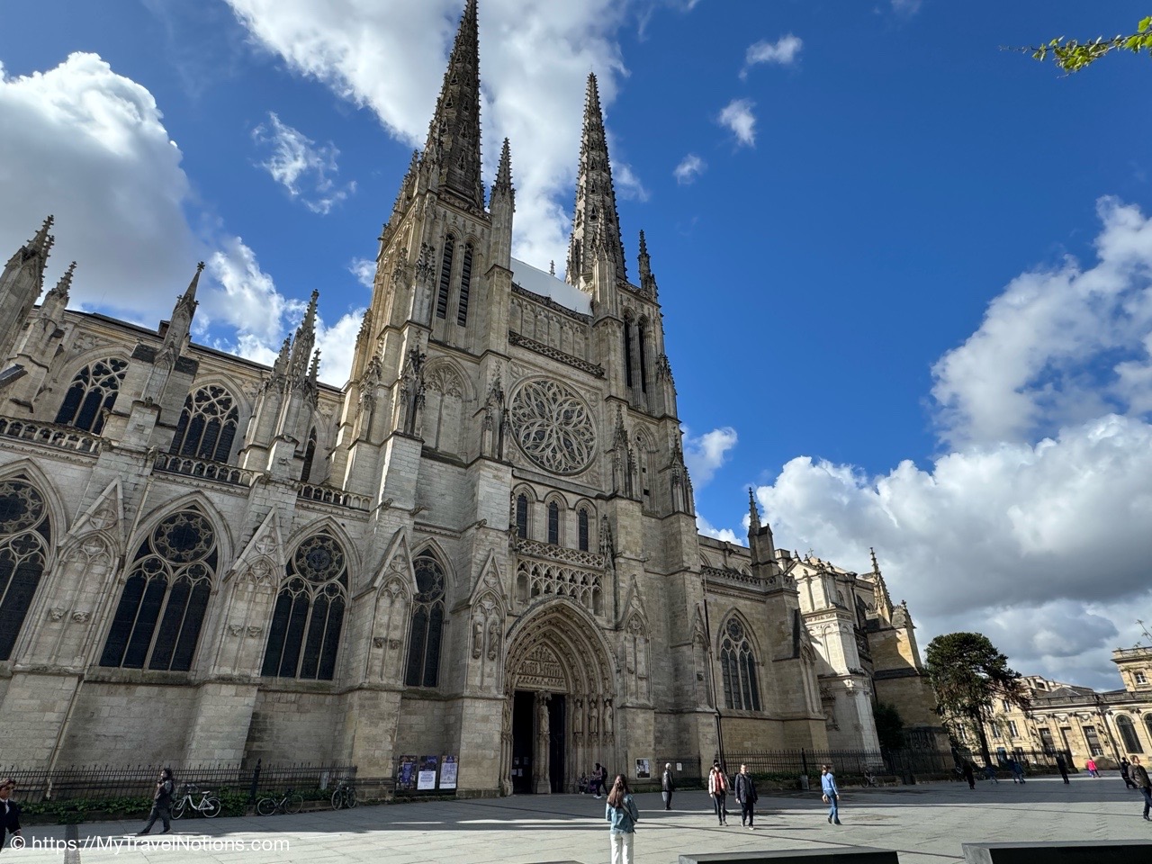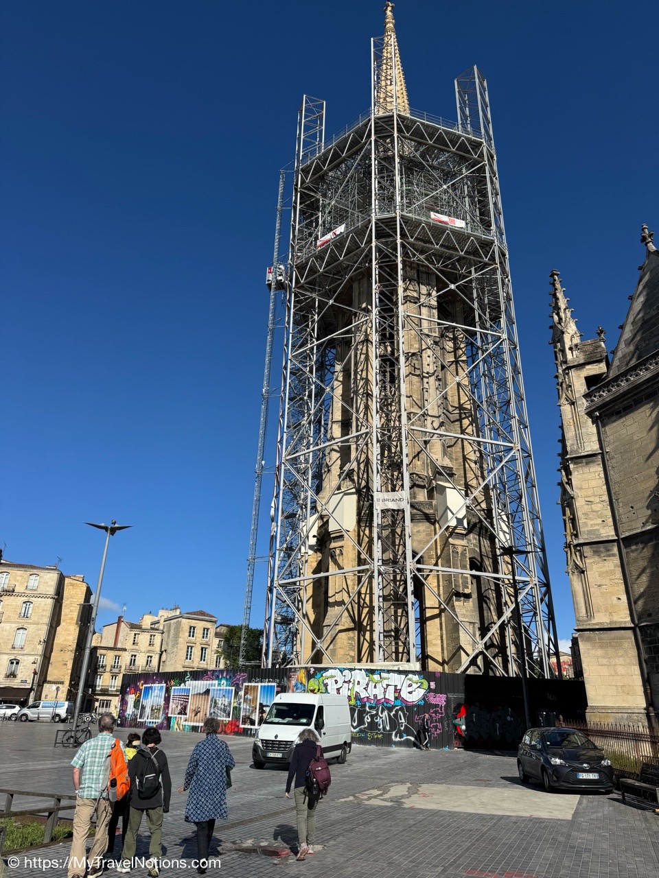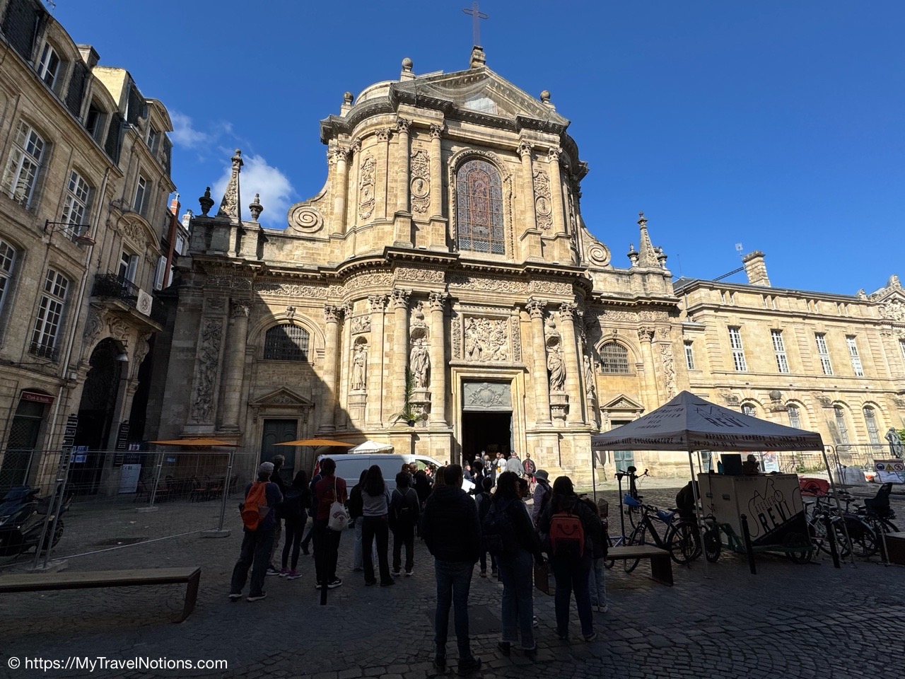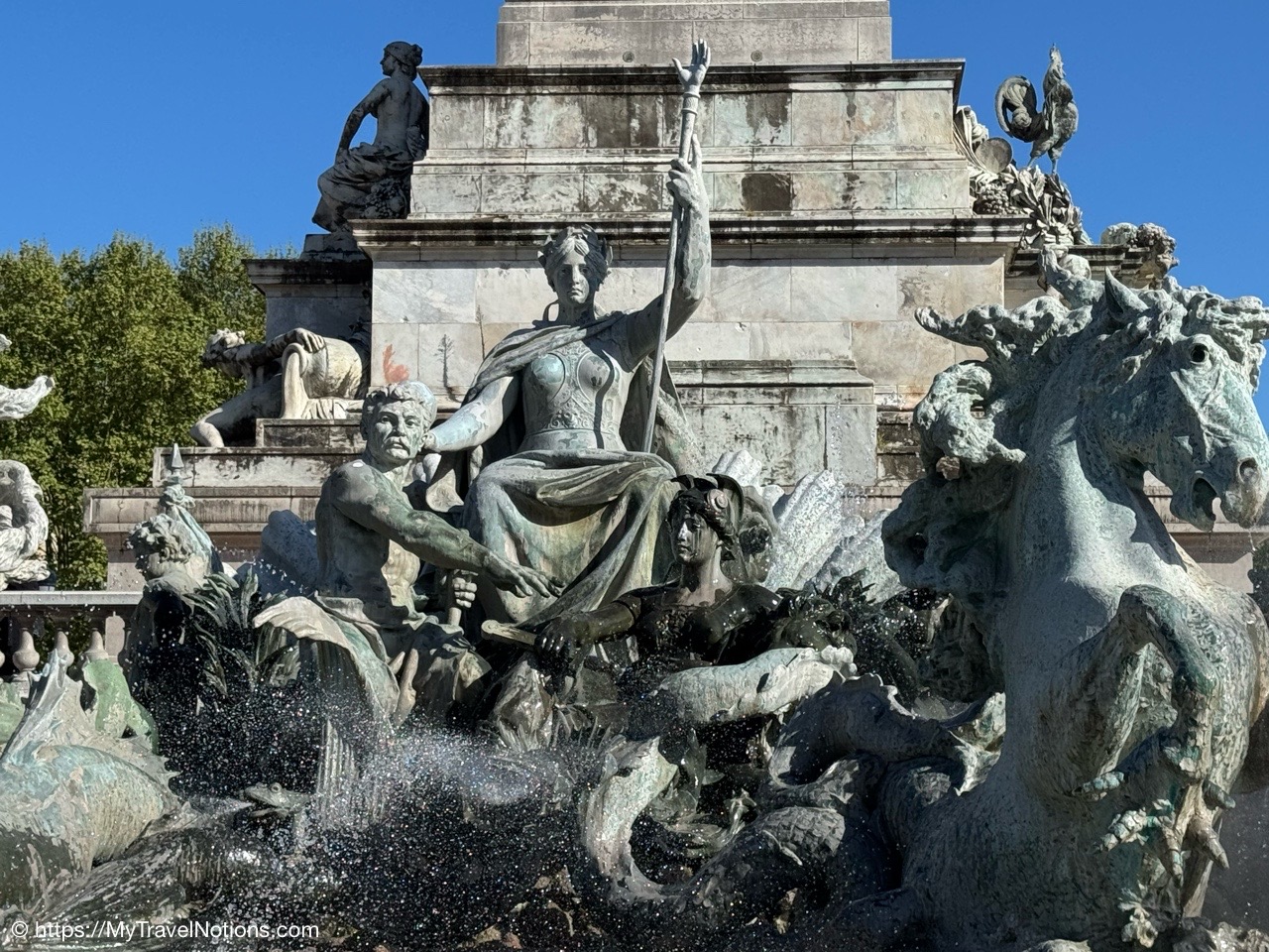 Here we are at the beginning of our morning free walking tour of Bordeaux with the stunning UNESCO World Heritage Monument aux Girondins behind us located in Place des Quinconces, one of the biggest square in Europe. From left: Alice, me, Rosie, Tammy and John. (April 16, 2025)The Monument aux Girondins in Bordeaux was built between 1894 and 1902 in memory of the Girondists who fell victim to the Reign of Terror during the French Revolution. The bronze figures on this size of the fountain symbolizing the Triumph of the Republic. (April 16, 2025)A close-up of the Triumph of the Republic fountain at the Monument aux Girondins in Bordeaux. (April 16, 2025)A close-up of the Triumph of the Republic fountain at the Monument aux Girondins in Bordeaux. (April 16, 2025)The Monument aux Girondins in Bordeaux was built between 1894 and 1902 in memory of the Girondists who fell victim to the Reign of Terror during the French Revolution. The bronze figures on this size of the fountain symbolizing the Triumph of the Republic. (April 16, 2025)At the top of the 177 feet or 54 meter tall Monument aux Girondins, erected between 1894 and 1902 in memory of the Girondists who were beheaded during the French Revolution, is this Statue of Liberty breaking its chains. (April 16, 2025)The Monument aux Girondins in Bordeaux was built between 1894 and 1902 in memory of the Girondists who fell victim to the Reign of Terror during the French Revolution. (April 16, 2025)A cast iron sculpture of a woman’s head, by Spanish artist Jaume Plensa, by the Opéra National de Bordeaux. (April 16, 2025)Walking by the Opéra National de Bordeaux in the heart of the city’s historic center in the Place de la Comédie. (April 16, 2025)Our free morning walking tour group of Bordeaux, standing across from the Opéra National de Bordeaux getting historical information from our wonderful guide, Ani. (April 16, 2025)And, across from the Opéra National de Bordeaux in the Place de la Comédie is the InterContinental Grand Hotel de Bordeaux. In 1789, some 10 years after building the Opera House, architect Victor Louis begins construction of this private hotel for M. Sacriste de Rolly. (April 16, 2025)Walking towards the Église Notre-Dame (also called Saint-Dominique) Baroque style church was constructed at the end of the 17th century (1684- 1707). (April 16, 2025)The Église Notre-Dame (also called Saint-Dominique) Baroque style church was constructed at the end of the 17th century (1684- 1707). (April 16, 2025)The Église Notre-Dame (also called Saint-Dominique) Baroque style church was constructed at the end of the 17th century (1684- 1707). (April 16, 2025)The altar inside the Église Notre-Dame (also called Saint-Dominique) Baroque style church in Bordeaux. (April 16, 2025)The altar inside the Église Notre-Dame (also called Saint-Dominique) Baroque style church in Bordeaux. (April 16, 2025)The pulpit and side chapels inside the Église Notre-Dame (also called Saint-Dominique) Baroque style church in Bordeaux. (April 16, 2025)The pulpit and side chapels inside the Église Notre-Dame (also called Saint-Dominique) Baroque style church in Bordeaux. (April 16, 2025)The side chapels inside the Église Notre-Dame (also called Saint-Dominique) Baroque style church in Bordeaux. (April 16, 2025)Dating from the 19th century, the beautiful stained glass windows at the Église Notre-Dame are attributed to the master Bordeaux glassmakers Villiet and Hutrel. (April 16, 2025)The Chapelle de Sainte Thérèse de l’Enfant-Jésus et de la Sainte Face inside the Église Notre-Dame in Bordeaux in honor of Saint Thérèse who became a Carmelite nun at the age of 15 in 1888 and died at the age of 24 in 1897. (April 16, 2025)Mass being held in the side chapels of the Église Notre-Dame in Bordeaux. (April 16, 2025)This bronze statue of Spanish painter Francisco de Goya (1746-1828) is located just outside the Eglise Notre Dame in the Place du Chapelet in Bordeaux. Although Goya was born in Spain and is considered the most important Spanish artist of the late 18th and early 19th centuries. In 1824 Goya emigrated to Bordeaux, France, where he lived until his death on April 16, 1828 at the age of 82. Goya lived under a cloud of suspicion by the authorities in Spain and in the shadow of the Inquisition. He lost his hearing after a serious illness in 1792, and his health steadily declined. That did, however, give him the pretext of fleeing Spain to seek medical treatment in Bordeaux. (April 16, 2025)Heading through the Passage Sarget in Bordeaux, named after Baron Sarget, a wealthy wine merchant and shipowner, who financed its construction. (April 16, 2025)Inside the Passage Sarget in Bordeaux, named after Baron Sarget, a wealthy wine merchant and shipowner, who financed its construction. (April 16, 2025)Inside the Passage Sarget in Bordeaux, named after Baron Sarget, a wealthy wine merchant and shipowner, who financed its construction. (April 16, 2025)This is one of a number of brass scallop shells on the streets of Bordeaux. It is the symbol of the Camino de Santiago, a pilgrimage since the Middle Ages. (April 16, 2025)Walking along the streets of Bordeaux. (April 16, 2025)Walking along the streets of Bordeaux. (April 16, 2025)Walking along the streets of Bordeaux. (April 16, 2025)A book selling market in the Place Jean-Moulin park across from the main entrance to the Saint André Cathedral in Bordeaux. (April 16, 2025)The bronze statue “Gloria Victis” or Glory to the Vanquished at the Place Jean-Moulin park across from the main entrance to the Cathédrale Saint-André de Bordeaux. The statue was created following the French military defeat in the Franco-Prussian War (1870-71) commemorating those who lost their lives in the conflict. (April 16, 2025)The Cathédrale Saint-André de Bordeaux is a Catholic church dedicated to Saint Andrew. The Cathedral was originally constructed in the 11th century, though little of this remains today. The current Cath