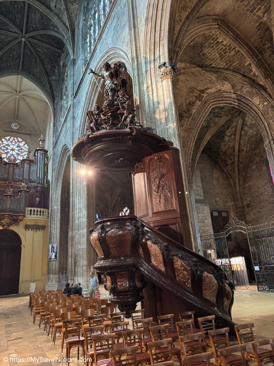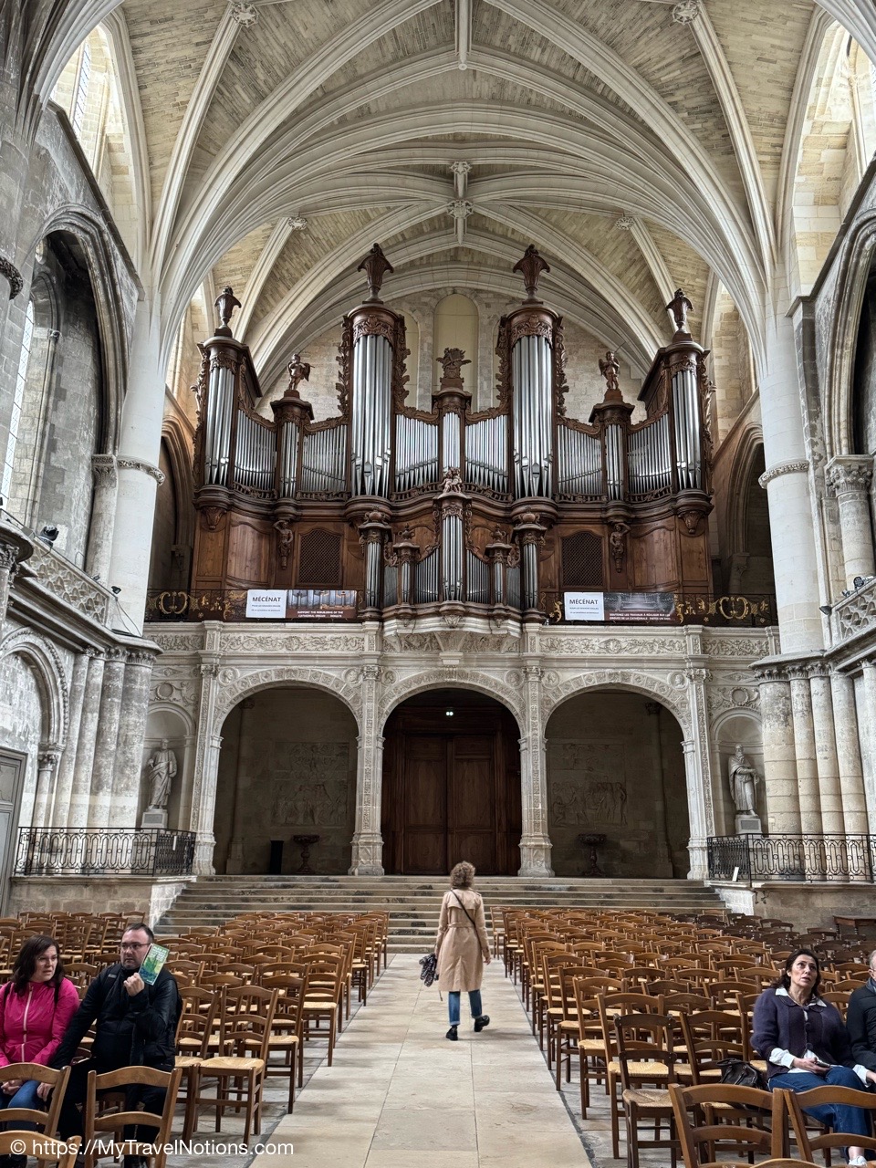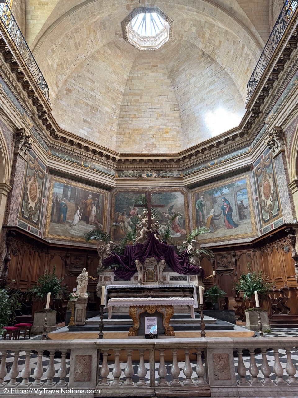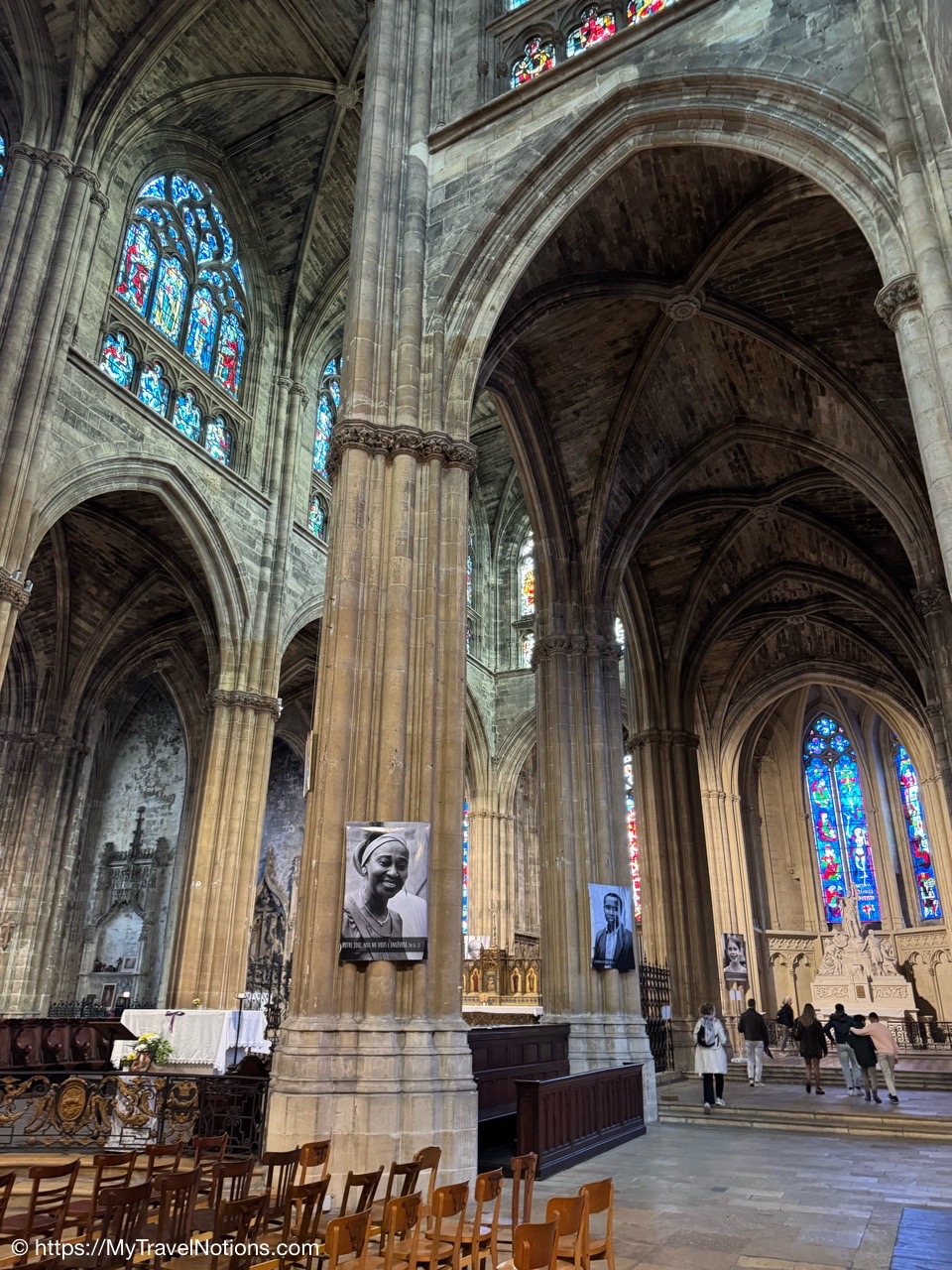Celebrating Easter Sunday at the Cathédrale Saint-André de Bordeaux with my wonderful traveling friends. From left: John, Alice, Tammy, Rosie and me. (April 20, 2025)Mass at the Cathédrale Saint-André de Bordeaux began at 10:30 a.m. We arrived at the Cathedral early and were able to get these front row seats by the altar as the Cathedral continued to fill up. This is a view inside the nave looking towards the Grand Organ located on a tribune over the west front doorway. (April 20, 2025)The decorated high altar and choir stalls for the Easter Sunday mass at the Cathédrale Saint-André de Bordeaux. (April 20, 2025)The decorated high altar and choir stalls for the Easter Sunday mass at the Cathédrale Saint-André de Bordeaux. (April 20, 2025)The Bishop and priests walking to the high altar to begin the Easter Sunday mass at the Cathédrale Saint-André de Bordeaux. (April 20, 2025)Inside the Cathédrale Saint-André de Bordeaux as the Bishop prepares for Communion. (April 20, 2025)People beginning to come up to take communion at the Cathédrale Saint-André de Bordeaux. For the first time in many, many years, along with my group of friends, took communion. (April 20, 2025)We came back to Le Cafe Francais for our Easter Lunch in Bordeaux. It was still a cool and rainy day so it was nice to return to the restaurant since it is located just across the way from the Cathédrale Saint-André de Bordeaux. (April 20, 2025)This is the Cathédrale Saint-André de Bordeaux a couple of days before the Easter Sunday mass and rain on a beautiful sunny day during our stay in Bordeaux. We actually tried several times to see inside the Cathedral before Easter but it was closed and when it was open, only a small portion was available. (April 16, 2025)The altar inside the Cathédrale Saint-André de Bordeaux a day before the Easter Sunday service. (April 19, 2025)The altar inside the Cathédrale Saint-André de Bordeaux a day before the Easter Sunday service. (April 19, 2025)Looking through the choir to the main altar from the back of the Cathédrale Saint-André de Bordeaux a day before the Easter Sunday service. (April 19, 2025)The long side aisle of the Cathédrale Saint-André de Bordeaux a day before the Easter Sunday service. (April 19, 2025)The side Chapel of Mont-Carmel inside the Cathédrale Saint-André de Bordeaux. (April 19, 2025)The colorful columns in the side Chapel of Mont-Carmel inside the Cathédrale Saint-André de Bordeaux. (April 19, 2025)Another beautiful side chapel inside the Cathédrale Saint-André de Bordeaux, the Chapel of Sacré-Coeur. (April 19, 2025)The beautiful stained glass in the side Chapel of Sacré-Coeur in the Cathédrale Saint-André de Bordeaux. (April 19, 2025)Looking east from the nave to the altar and the choir area behind it inside the Cathédrale Saint-André de Bordeaux where just this portion of the Cathedral was open. (April 19, 2025)From the nave looking west inside the Cathédrale Saint-André de Bordeaux, with its Grand Organ located on a tribune over the west front doorway where just this portion of the Cathedral was open. (April 19, 2025)The beautiful wood pulpit inside the Cathédrale Saint-André de Bordeaux. (April 19, 2025)The Grand organ and its tribune inside the Cathédrale Saint-André de Bordeaux. (April 19, 2025)John, Rosie and me standing in the long line, of ticket holders, in the rain waiting for our turn to get into the Bassins des Lumières to see the Pharaohs of Egypt in Bordeaux’s former submarine base, Culturespaces, a digital art center housed in a former World War II submarine base. (April 20, 2025)In Bordeaux’s former submarine base built by the Germans during World War II, Culturespaces created a digital art center in 2020, the Bassins des Lumières. It is considered the largest digital arts centre in the world and presents monumental immersive digital exhibitions,dedicated to major artists in the history of art and to contemporary art. (April 20, 2025)In Bordeaux’s former submarine base built by the Germans during World War II, Culturespaces created a digital art center in 2020, the Bassins des Lumières. It is considered the largest digital arts centre in the world and presents monumental immersive digital exhibitions,dedicated to major artists in the history of art and to contemporary art. (April 20, 2025)We purchased our tickets in advance online with a timed entry hoping to miss standing in a long line, but that obviously was not the case at the Bassins des Lumières in Bordeaux. (April 20, 2025)Getting closer to entering the Bassins des Lumières in Bordeaux for the Egyptian Pharohs digital exhibition inside a former World War II submarine base built by the Germans. (April 20, 2025)And, look, there’s only one person checking tickets to enter the Bassins des Lumières in Bordeaux for the Egyptian Pharohs digital exhibition inside a former World War II submarine base built by the Germans. (April 20, 2025)The Egyptian Pharaohs digital exhibit at Bassins des Lumières in Bordeaux is an immersive journey through ancient Egypt, showcasing the history, culture, and art of the pharaohs through large-scale digital projections. The exhibit transforms the former submarine base into a vast canvas, displaying images of temples, tombs, hieroglyphs, and monumental statues, bringing the world of the pharaohs to life. In 2018, the city of Bordeaux handed over custody of four of the submarine bunker’s docks to Culturespaces, with the aim of creating a digital arts venue. (April 20, 2025)The Egyptian Pharaohs digital exhibit at Bassins des Lumières in Bordeaux is an immersive journey through ancient Egypt, showcasing the history, culture, and art of the pharaohs through large-scale digital projections. The exhibit transforms the former submarine base into a vast canvas, displaying images of temples, tombs, hieroglyphs, and monumental statues, bringing the world of the pharaohs to life. In 2018, the city of Bordeaux handed over cus