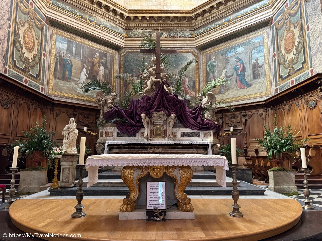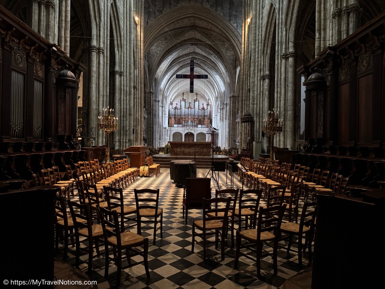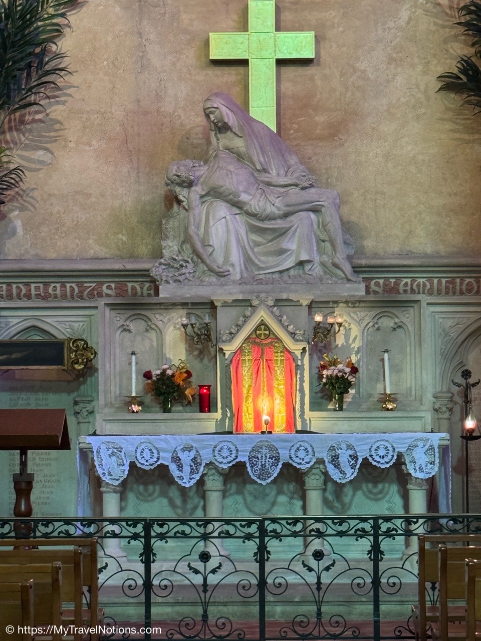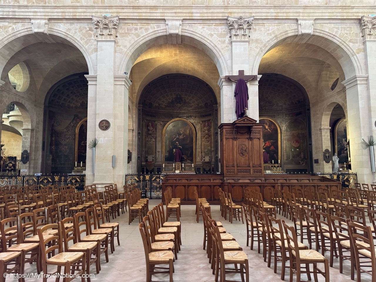 Celebrating Easter Sunday at the Cathédrale Saint-André de Bordeaux with my wonderful traveling friends. From left: John, Alice, Tammy, Rosie and me. (April 20, 2025)Mass at the Cathédrale Saint-André de Bordeaux began at 10:30 a.m. We arrived at the Cathedral early and were able to get these front row seats by the altar as the Cathedral continued to fill up. This is a view inside the nave looking towards the Grand Organ located on a tribune over the west front doorway. (April 20, 2025)The decorated high altar and choir stalls for the Easter Sunday mass at the Cathédrale Saint-André de Bordeaux. (April 20, 2025)The decorated high altar and choir stalls for the Easter Sunday mass at the Cathédrale Saint-André de Bordeaux. (April 20, 2025)The Bishop and priests walking to the high altar to begin the Easter Sunday mass at the Cathédrale Saint-André de Bordeaux. (April 20, 2025)Inside the Cathédrale Saint-André de Bordeaux as the Bishop prepares for Communion. (April 20, 2025)People beginning to come up to take communion at the Cathédrale Saint-André de Bordeaux. For the first time in many, many years, along with my group of friends, took communion. (April 20, 2025)We came back to Le Cafe Francais for our Easter Lunch in Bordeaux. It was still a cool and rainy day so it was nice to return to the restaurant since it is located just across the way from the Cathédrale Saint-André de Bordeaux. (April 20, 2025)This is the Cathédrale Saint-André de Bordeaux a couple of days before the Easter Sunday mass and rain on a beautiful sunny day during our stay in Bordeaux. We actually tried several times to see inside the Cathedral before Easter but it was closed and when it was open, only a small portion was available. (April 16, 2025)The altar inside the Cathédrale Saint-André de Bordeaux a day before the Easter Sunday service. (April 19, 2025)The altar inside the Cathédrale Saint-André de Bordeaux a day before the Easter Sunday service. (April 19, 2025)Looking through the choir to the main altar from the back of the Cathédrale Saint-André de Bordeaux a day before the Easter Sunday service. (April 19, 2025)The long side aisle of the Cathédrale Saint-André de Bordeaux a day before the Easter Sunday service. (April 19, 2025)The side Chapel of Mont-Carmel inside the Cathédrale Saint-André de Bordeaux. (April 19, 2025)The colorful columns in the side Chapel of Mont-Carmel inside the Cathédrale Saint-André de Bordeaux. (April 19, 2025)Another beautiful side chapel inside the Cathédrale Saint-André de Bordeaux, the Chapel of Sacré-Coeur. (April 19, 2025)The beautiful stained glass in the side Chapel of Sacré-Coeur in the Cathédrale Saint-André de Bordeaux. (April 19, 2025)Looking east from the nave to the altar and the choir area behind it inside the Cathédrale Saint-André de Bordeaux where just this portion of the Cathedral was open. (April 19, 2025)From the nave looking west inside the Cathédrale Saint-André de Bordeaux, with its Grand Organ located on a tribune over the west front doorway where just this portion of the Cathedral was open. (April 19, 2025)The beautiful wood pulpit inside the Cathédrale Saint-André de Bordeaux. (April 19, 2025)The Grand organ and its tribune inside the Cathédrale Saint-André de Bordeaux. (April 19, 2025)John, Rosie and me standing in the long line, of ticket holders, in the rain waiting for our turn to get into the Bassins des Lumières to see the Pharaohs of Egypt in Bordeaux’s former submarine base, Culturespaces, a digital art center housed in a former World War II submarine base. (April 20, 2025)In Bordeaux’s former submarine base built by the Germans during World War II, Culturespaces created a digital art center in 2020, the Bassins des Lumières. It is considered the largest digital arts centre in the world and presents monumental immersive digital exhibitions,dedicated to major artists in the history of art and to contemporary art. (April 20, 2025)In Bordeaux’s former submarine base built by the Germans during World War II, Culturespaces created a digital art center in 2020, the Bassins des Lumières. It is considered the largest digital arts centre in the world and presents monumental immersive digital exhibitions,dedicated to major artists in the history of art and to contemporary art. (April 20, 2025)We purchased our tickets in advance online with a timed entry hoping to miss standing in a long line, but that obviously was not the case at the Bassins des Lumières in Bordeaux. (April 20, 2025)Getting closer to entering the Bassins des Lumières in Bordeaux for the Egyptian Pharohs digital exhibition inside a former World War II submarine base built by the Germans. (April 20, 2025)And, look, there’s only one person checking tickets to enter the Bassins des Lumières in Bordeaux for the Egyptian Pharohs digital exhibition inside a former World War II submarine base built by the Germans. (April 20, 2025)The Egyptian Pharaohs digital exhibit at Bassins des Lumières in Bordeaux is an immersive journey through ancient Egypt, showcasing the history, culture, and art of the pharaohs through large-scale digital projections. The exhibit transforms the former submarine base into a vast canvas, displaying images of temples, tombs, hieroglyphs, and monumental statues, bringing the world of the pharaohs to life. In 2018, the city of Bordeaux handed over custody of four of the submarine bunker’s docks to Culturespaces, with the aim of creating a digital arts venue. (April 20, 2025)The Egyptian Pharaohs digital exhibit at Bassins des Lumières in Bordeaux is an immersive journey through ancient Egypt, showcasing the history, culture, and art of the pharaohs through large-scale digital projections. The exhibit transforms the former submarine base into a vast canvas, displaying images of temples, tombs, hieroglyphs, and monumental statues, bringing the world of the pharaohs to life. In 2018, the city of Bordeaux handed over cus