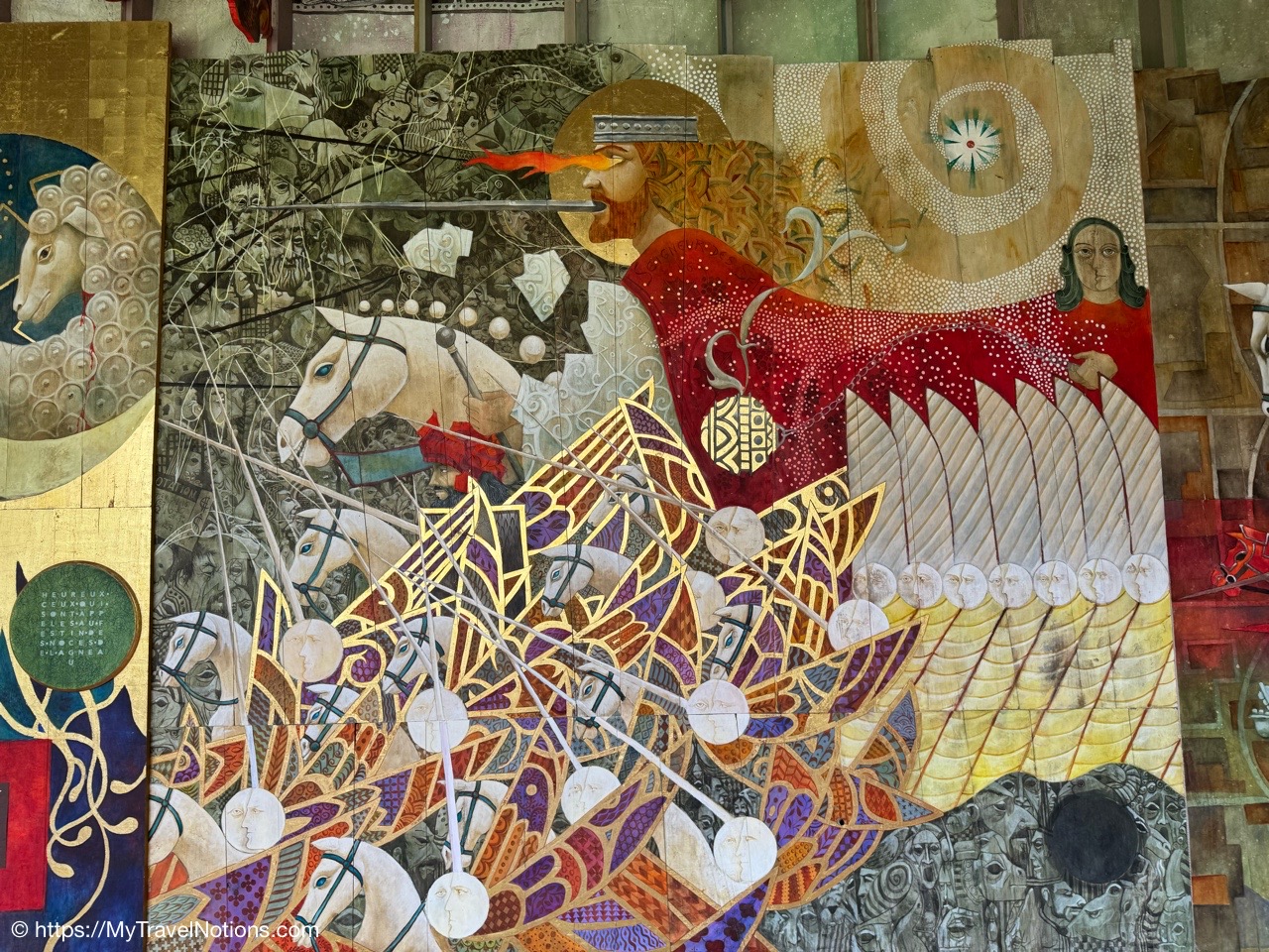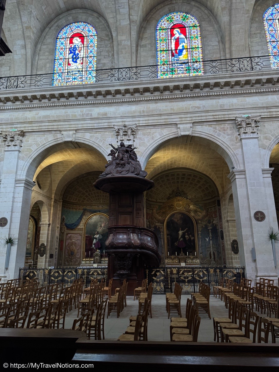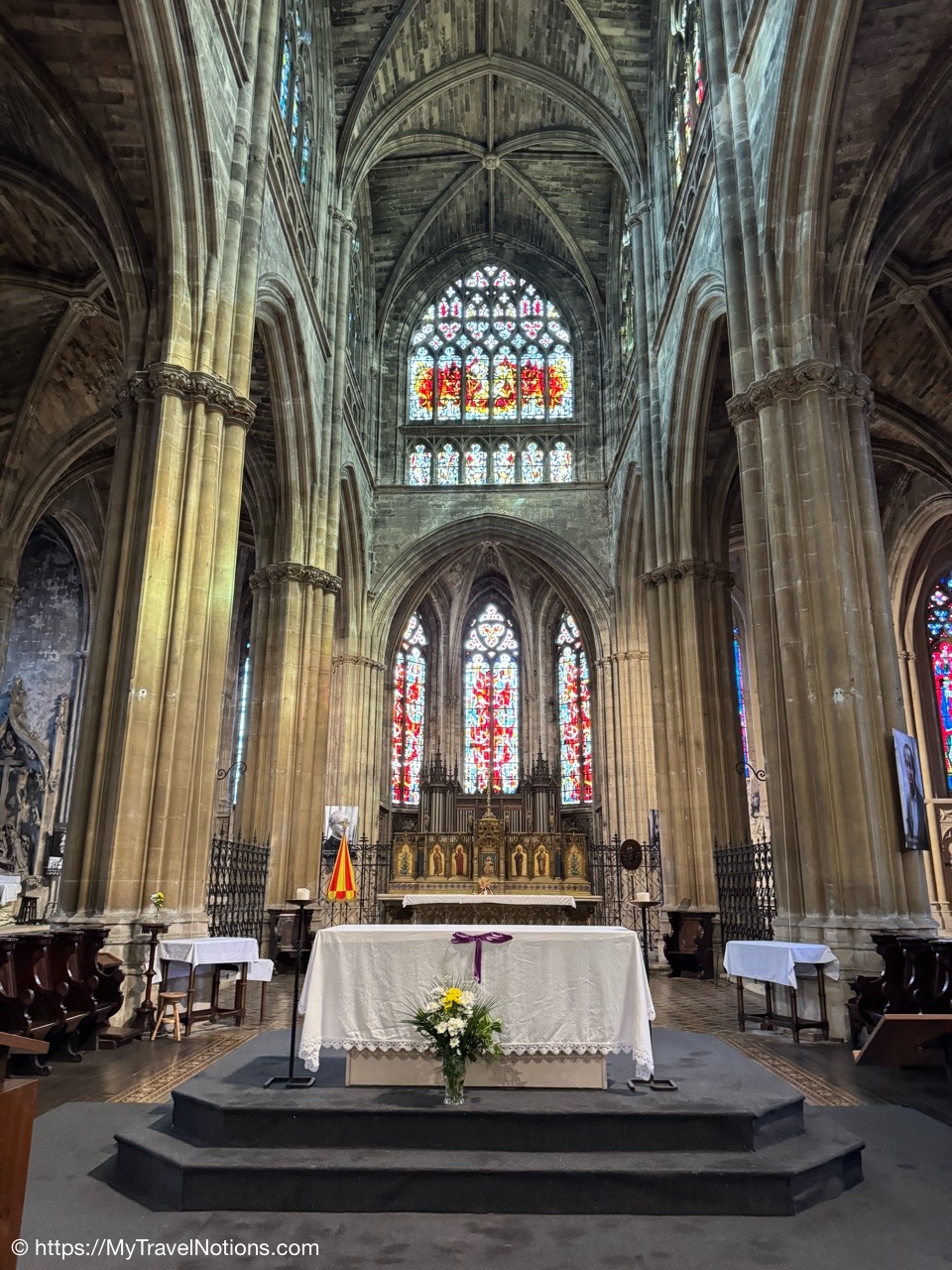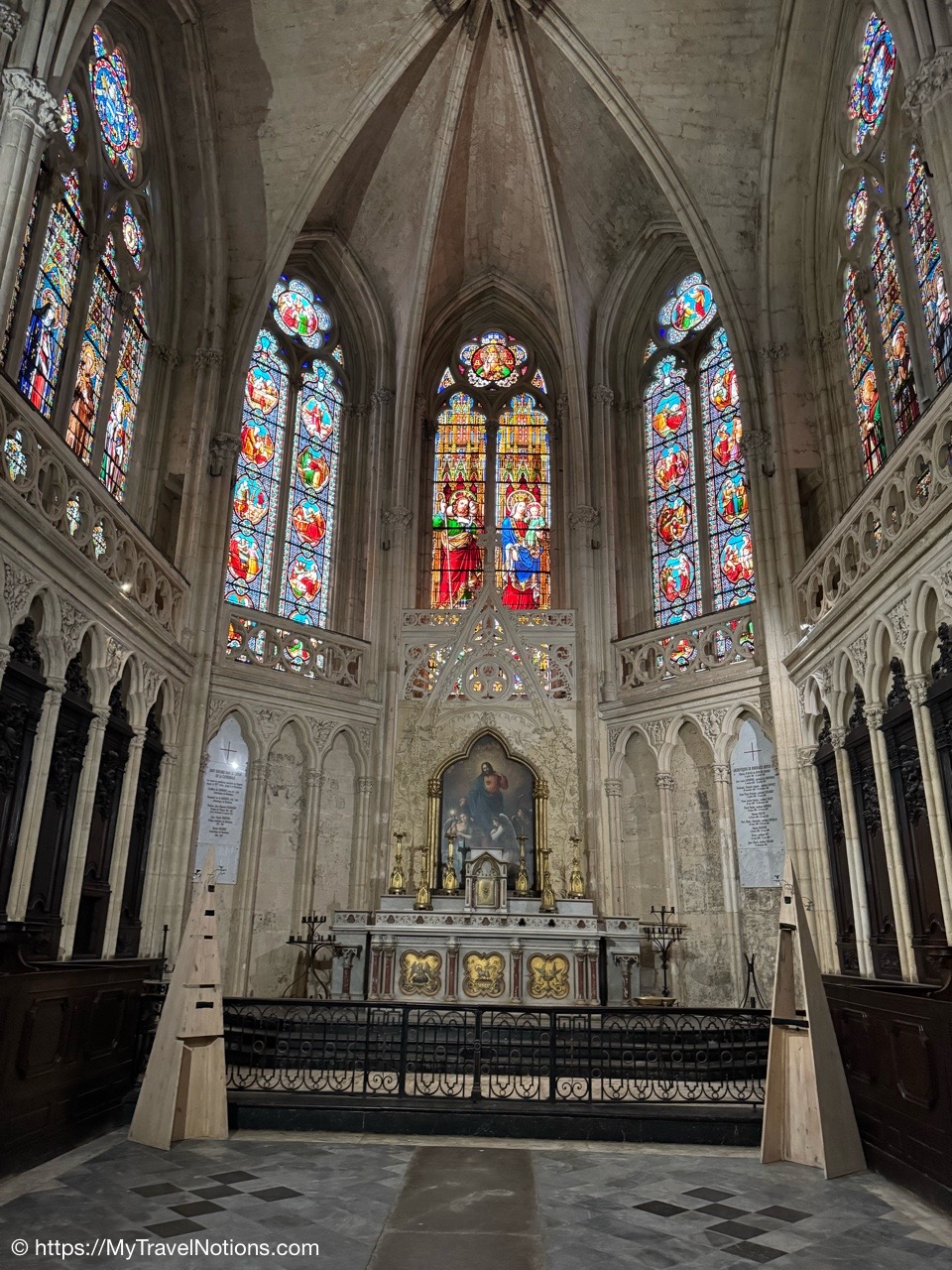 Most of the original stained-glass windows at the Basilique Saint-Michel in Bordeaux were blown out by bombs in the Second World War and then replaced in the 50s and 60s by the current impressive stained glass. This stained glass depicts the Holy Kinship and the Tree of Jesse. (April 17, 2025)Inside the Chapel of Saint Joseph at the Basilique Saint-Michel in Bordeaux is this altarpiece of the “Seven Joys of the Virgin” by Thomas Macip which dates from about 1526. (April 17, 2025)The alabaster reliefs, Joys of the Virgin, which depict scenes from the Virgin Mary’s life, have been put back in the altarpiece at the Basilica Saint Michel in Bordeaux after being stolen in 1969 and finally returned back to the church. (April 17, 2025)The alabaster reliefs, Joys of the Virgin, which depict scenes from the Virgin Mary’s life, have been put back in the altarpiece at the Basilica Saint Michel in Bordeaux after being stolen in 1969 and finally returned back to the church. (April 17, 2025)