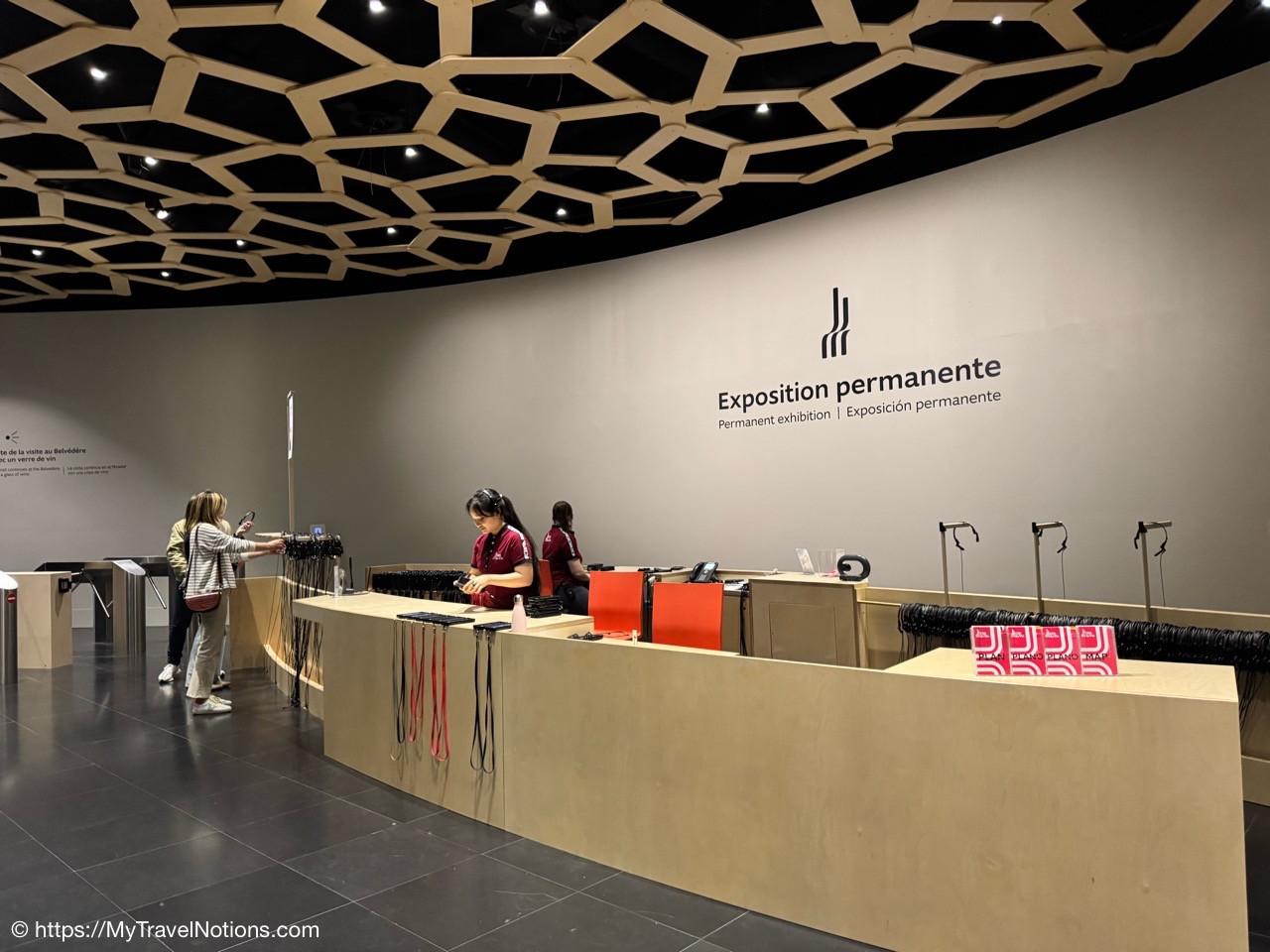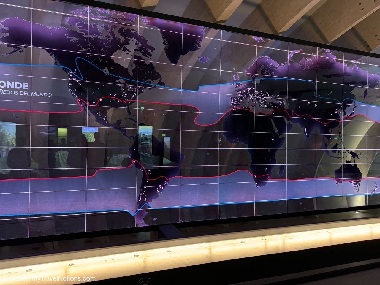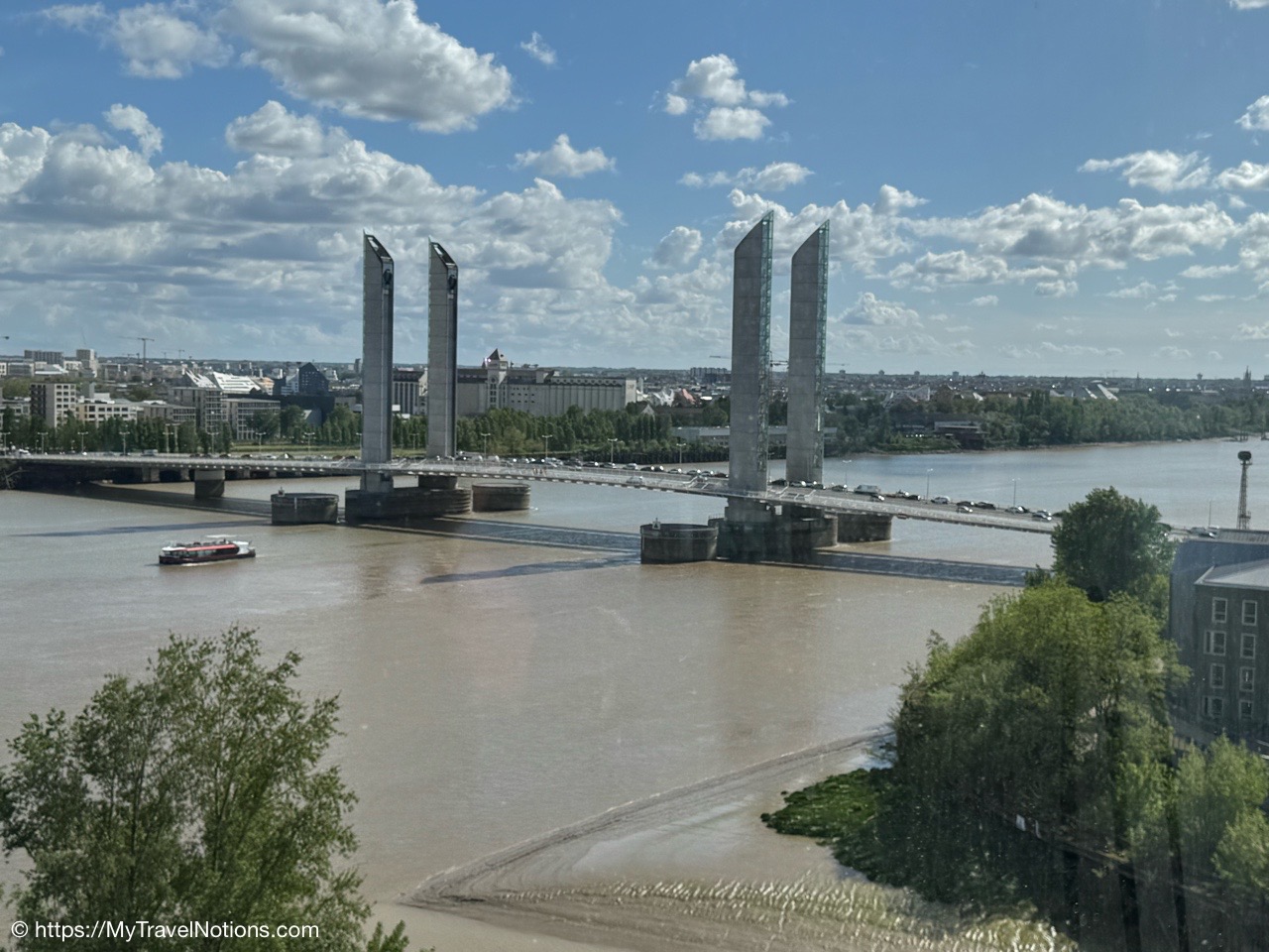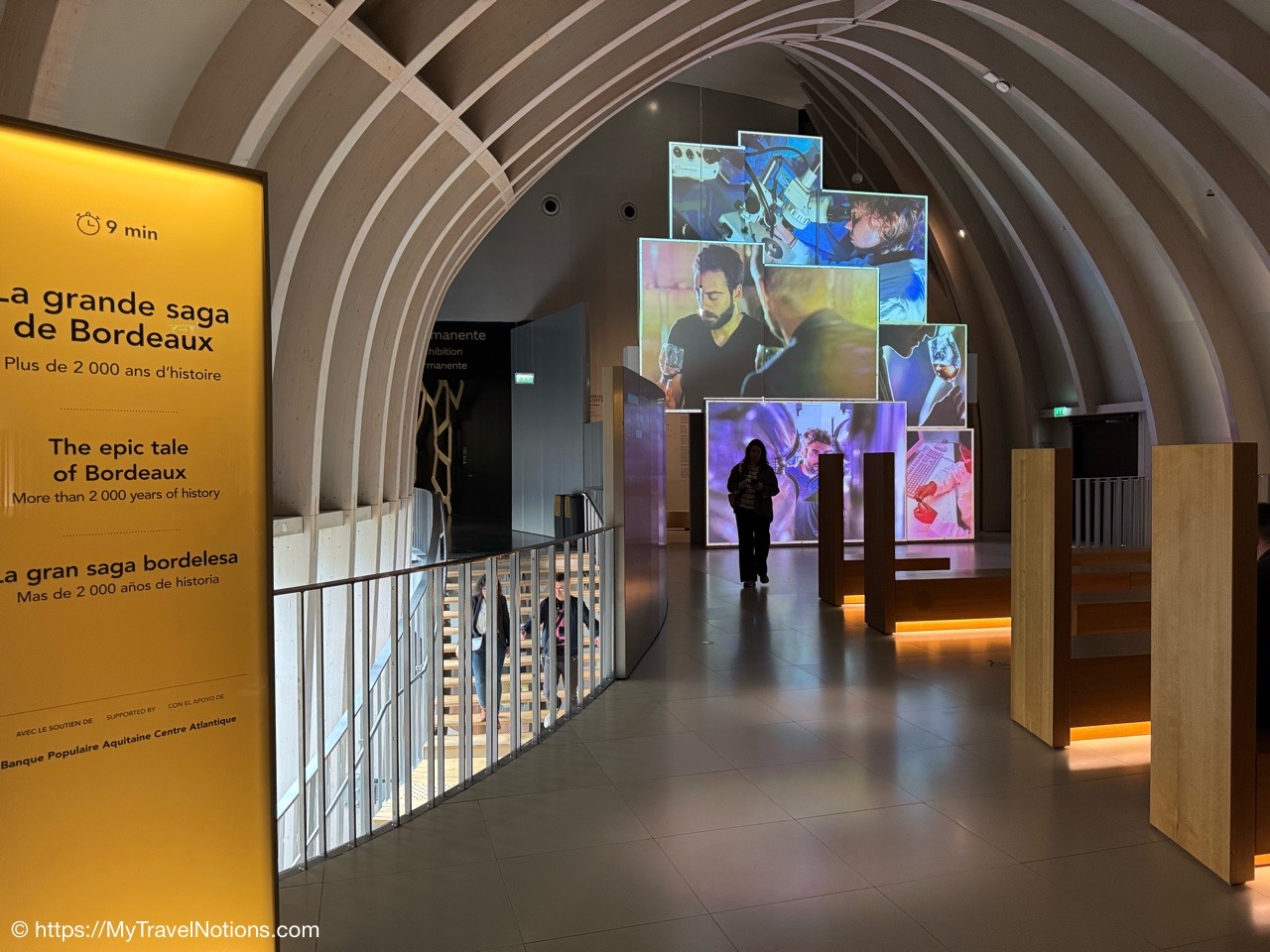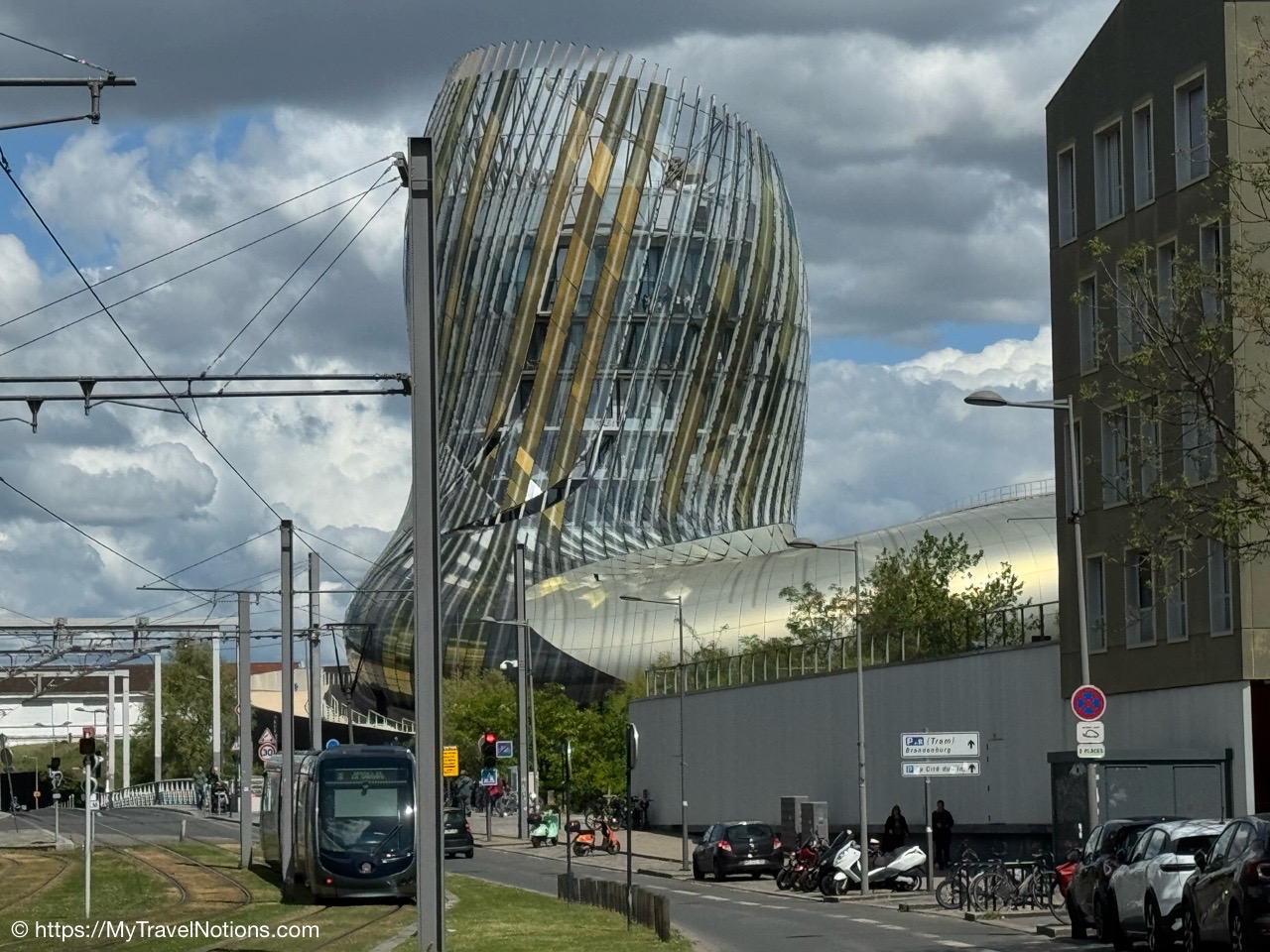 Our group taking the tram to the Cité du Vin wine museum in Bordeaux. The trams are an easy way to get around the city. Ticket machines are there at the stations. Ten rides can be purchased for 15 Euros, around 17.05 USD since the dollar dropped in value due to the tariffs and trade war. (April 16, 2025)Alice, Rosie and Tammy on the tram bound to our visit of the Cité du Vin wine museum in Bordeaux. (April 16, 2025)Getting off the tram at the Cité du Vin stop with views of unusual wine museum building in the distance. I’ve read interesting interpretations of what the architects, Anouk Legendre and Nicolas Desmazières, had designed. A building shaped by symbols of wine like gnarled vine stocks wine swirling in a glass and even a wine decanter all looking to evoke wine’s soul and liquid nature. (April 16, 2025)Getting in a group shot at the entrance of the Cité du Vin wine museum in Bordeaux. From left: John, Rosie, Alice, Tammy and me. (April 16, 2025)Entering the second floor Permanent Exhibition area of the Cité du Vin wine museum in Bordeaux where wine comes alive through a series of exhibitions, videos, projections, shows, audio exhibits and interactive displays. Headsets, in your language of choice, are programmed to come on when you sync it to the red bottoms available by each display. (April 16, 2025)The first exhibit, at the Cité du Vin wine museum in Bordeaux, was a beautiful video journey of vineyards around the world. (April 16, 2025)A vineyard at Saint-Emilion, France, from a video of wine vineyards throughout the world at the Cité du Vin wine museum in Bordeaux. (April 16, 2025)A vineyard at the Canary Islands in Spain from a video of wine vineyards throughout the world at the Cité du Vin wine museum in Bordeaux. (April 16, 2025)An opportunity to listen to wine growers from a display at the Cité du Vin wine museum in Bordeaux talk about their terroirs, the unique environmental factors shaping a wine’s character. (April 16, 2025)A world map at the Cité du Vin wine museum in Bordeaux of where the vines grown. (April 16, 2025)Wine through the civilizations exhibit at the Cité du Vin wine museum in Bordeaux of Egypt, Greece, Rome, the Middle Ages through the 20th century. (April 16, 2025)In Egyptian mythology, Osiris was closely associated with wine as explained at the civilizations exhibit at the Cité du Vin wine museum in Bordeaux. He was considered the inventor of viticulture and taught the Egyptians how to make wine. Osiris was also linked to resurrection and rebirth, and the red color of wine was associated with his blood, which was believed to have reddened the Nile during the annual flood. (April 16, 2025)In Ancient Greece, symposiums were formal social gatherings, particularly for men, where wine was a central element according to the civilizations exhibit at the Cité du Vin wine museum in Bordeaux. Symposiums involved conversation, music, and sometimes other entertainment, with the wine acting as a social lubricant and a catalyst for discussion. The wine was always mixed with water, typically in a krater. (April 16, 2025)A look into an Ancient Greek symposium of the civilizations exhibit at the Cité du Vin wine museum in Bordeaux. It’s where formal social gatherings, particularly for men, where wine was a central element. Symposiums involved conversation, music, and sometimes other entertainment, with the wine acting as a social lubricant and a catalyst for discussion. Wine was a key part of Greek culture, seen as a gift from the gods and a symbol of hospitality and social connection. (April 16, 2025)France is estimated to have over 38,000 wine-producing chateaus as shown examples of at the civilizations exhibit at the Cité du Vin wine museum in Bordeaux. A significant portion of these chateaus, including many prestigious ones, are located in the Bordeaux region, with over 8,650 producers. (April 16, 2025)The vine itself on display at the Cité du Vin wine museum in Bordeaux. (April 16, 2025)A display of a variety wine grapes shown at the Cité du Vin wine museum in Bordeaux. There are over 10,000 different varieties of wine grapes in the world today. (April 16, 2025)Checking out “The Epic Tale of Bordeaux” video documenting more than 2,000 years of wine-making history at the Cité du Vin wine museum in Bordeaux. (April 16, 2025)The Romans are credited with bringing wine grape vines to the Bordeaux region as discussed during this 2,000 years “Epic Tale of Bordeaux” at the Cité du Vin wine museum in Bordeaux. The Romans took over the area around 60 BC and began cultivating vineyards and producing wine. (April 16, 2025)La Cave, the wine cellar shop, on the ground floor of the Cité du Vin wine museum in Bordeaux. (April 16, 2025)La Cave, the wine cellar shop, on the ground floor of the Cité du Vin wine museum in Bordeaux. (April 16, 2025)And, yes, there’s also a gift shot on the ground floor of the Cité du Vin wine museum in Bordeaux. (April 16, 2025)Inside the Belvédère bar on the eighth floor, where we were served our glasses of wine at the Cité du Vin wine museum in Bordeaux. (April 16, 2025)Me enjoying my glass of Bordeaux rouge wine outside of the Belvédère bar on the eighth floor open-air balcony-style viewing area of the Cité du Vin wine museum in Bordeaux. (April 16, 2025)Our visit at the Cité du Vin wine museum ended with a glass of wine at the Belvédère bar on the eighth floor of the museum. This lofty bar is encircled by an open-air balcony-style viewing area, which gives you incredible views of Bordeaux. (April 16, 2025)Views of the Pont Jacques Chaban-Delmas bridge over the Garonne River as seen from the Cité du Vin wine museum’s eight floor Belvédère bar with its open-air balcony-style viewing area of Bordeaux. Constructed between 2009 and 2012, it was named after Jacques Chaban-Delmas, a French politician who served as Mayor of Bordeaux for nearly 50 years. Its central span rises to allow large ships to pass