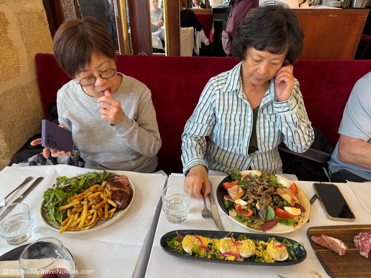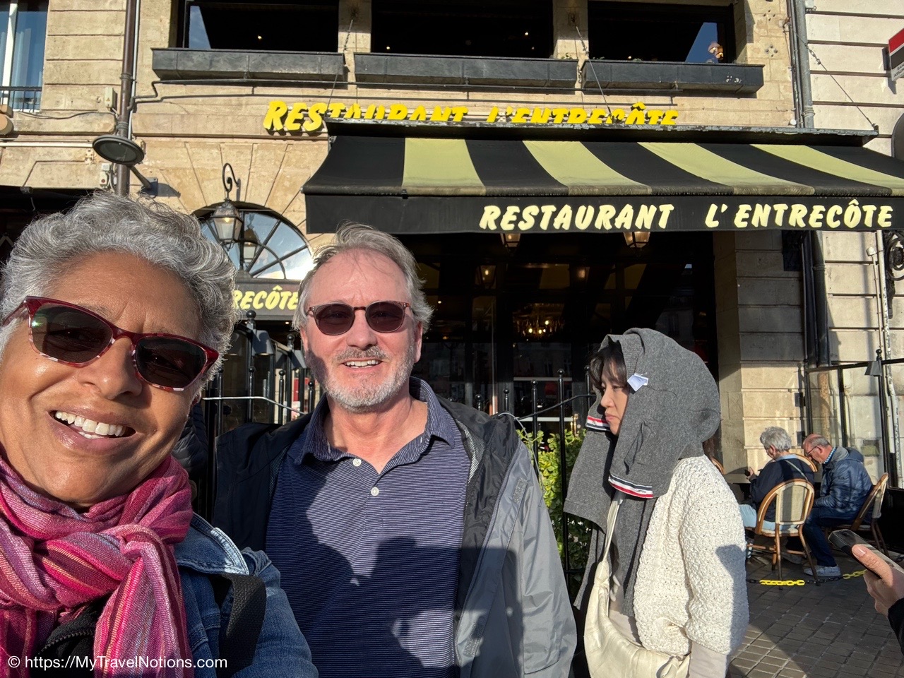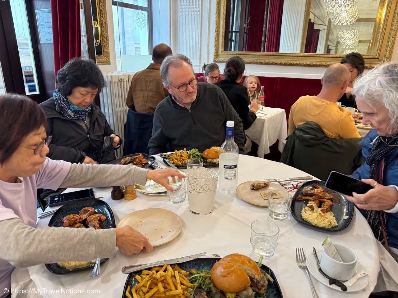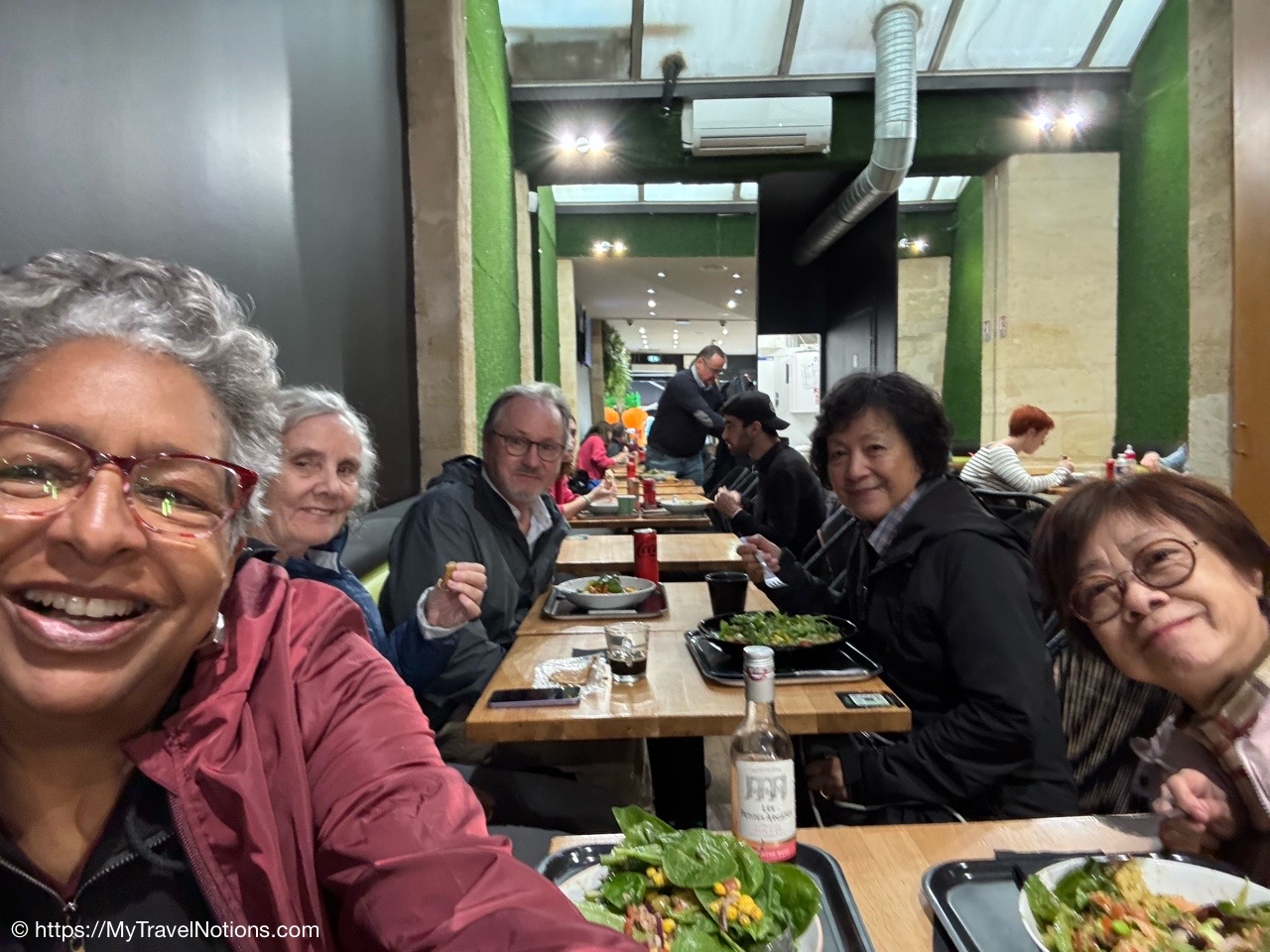 No, I’m not driving. I’m just sitting up front next to our taxi driver who picked us up at the Charles de Gaulle Airport, where we all met up, to take us to the Gare Montparnasse train station so we can catch our train to Bordeaux. From the left, that’s Rosie, Tammy and John. Rosie and I flew in at different times from Dallas, Texas, while Tammie flew in from Sydney, Australia and John flew in from the Seattle, Washington, area. We’re not only heading to Bordeaux to start our France & Friends travels together, but also to meet up with Alice who arrived in Bordeaux a day earlier. (April 15, 2025)Passing through Paris for now to get to the Gare Montparnasse train station for our little more than 2-hour train ride to Bordeaux. At the end of our trip, Rosie and I will be spending a few nights in Paris before we head back to Texas. (April 15, 2025)Passing through Paris for now to get to the Gare Montparnasse train station for our little more than 2-hour train ride to Bordeaux. At the end of our trip, Rosie and I will be spending a few nights in Paris before we head back to Texas. (April 15, 2025)Leaving Paris at the Gare montparnasse train station for our, a little over, 2-hour train ride to Bordeaux. (April 15, 2025)Arriving in Bordeaux a little after 4 p.m. at the Bordeaux-Saint-Jean train station. It was a quick and wonderful ride. (April 15, 2025)Our wonderful, centrally located hotel, the Quality Hotel Bordeaux Center, off the busy and lengthy Rue Sainte-Catherine street in Bordeaux. (April 15, 2025)Entering my small room at the the Quality Hotel Bordeaux Center, off the busy and lengthy Rue Sainte-Catherine street in Bordeaux. (April 15, 2025)My small but clean and comfy room at the Quality Hotel Bordeaux Center, off the busy and lengthy Rue Sainte-Catherine street in Bordeaux. (April 15, 2025)My small but clean bathroom in my room at the Quality Hotel Bordeaux Center, off the busy and lengthy Rue Sainte-Catherine street in Bordeaux. (April 15, 2025)I even have a bit of a view from my room at the Quality Hotel Bordeaux Center, off the busy and lengthy Rue Sainte-Catherine street in Bordeaux. (April 15, 2025)Leaving our hotel, the Quality Hotel Bordeaux Center, towards the busy and lengthy Rue Sainte-Catherine street for our short walk to an early dinner in Bordeaux. (April 15, 2025)The busy Rue Sainte-Catherine street in Bordeaux. (April 15, 2025)The L’Embarcadère Restaurant where Alice made dinner reservations for our first night in Bordeaux where we indulged on a French cuisine of delicious seafood while enjoying one another’s company …in France, a trip we’ve been planning for months. (April 15, 2025)Rosie, me, John, Alice and Tammy toasting to a delicious seafood dinner at the L’Embarcadère Restaurant in Bordeaux as we indulge in French cuisine and toast to the beginning of our time traveling through France. (April 15, 2025)Tammy and I ordered the delicious and flaky cod steak at the L’Embarcadère Restaurant in Bordeaux. (April 15, 2025)We also shared the chocolate profiteroles at the L’Embarcadère Restaurant in Bordeaux. (April 15, 2025)