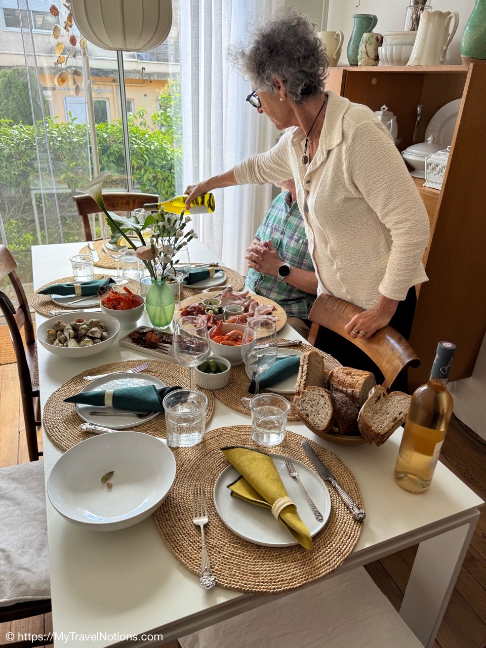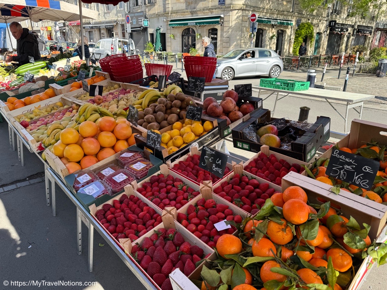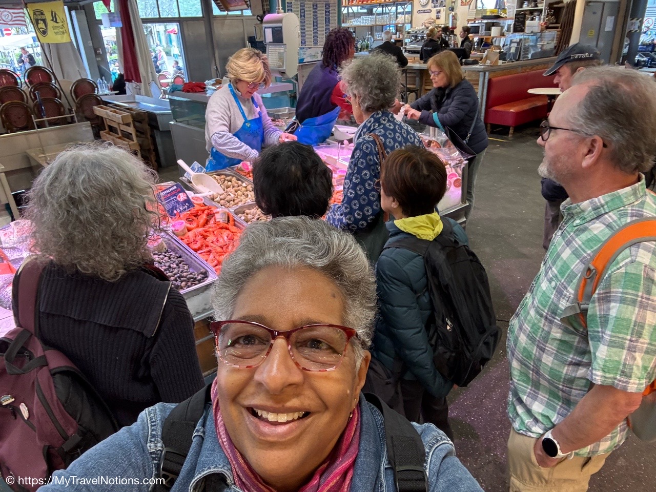 Alice met Kim Freeman during her last trip to Bordeaux some three years ago and suggested our group do Kim’s “Market to Table” food tour. I love food tours, but this one had a twist to it, we go to the market, buy a variety of goodies, at Kim’s suggestion, then we take the food tour her place and we all enjoy the tasty selections together at Kim’s Bordeaux apartment.