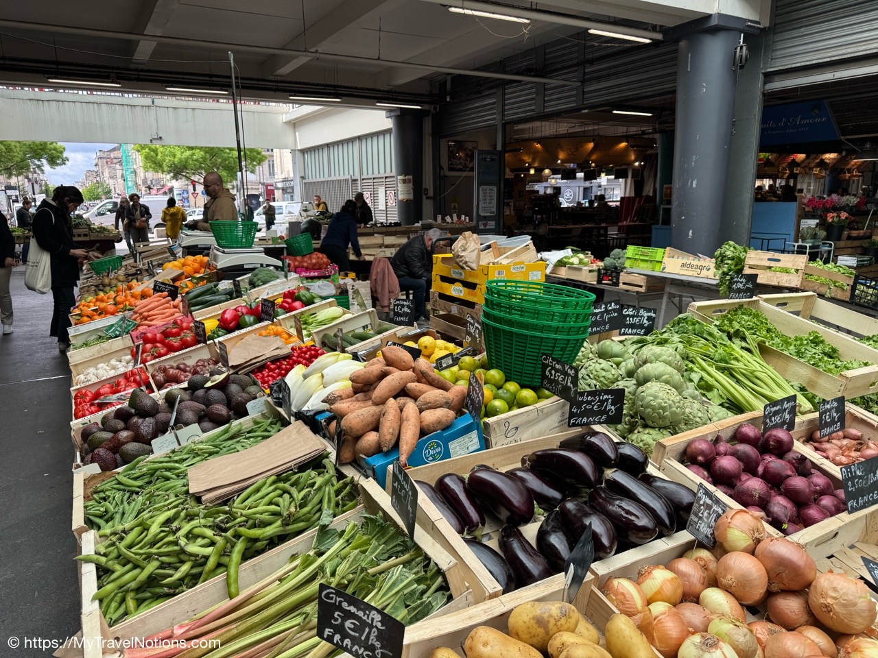 The market we shopped was theshopped at the Marché des Capucins or Capuchins Market in the Saint-Michel district of Bordeaux where more than 60 unique merchants provide baked goods, fruits and vegetables, fish and seafood, meats, cheeses, spices and international cuisines.