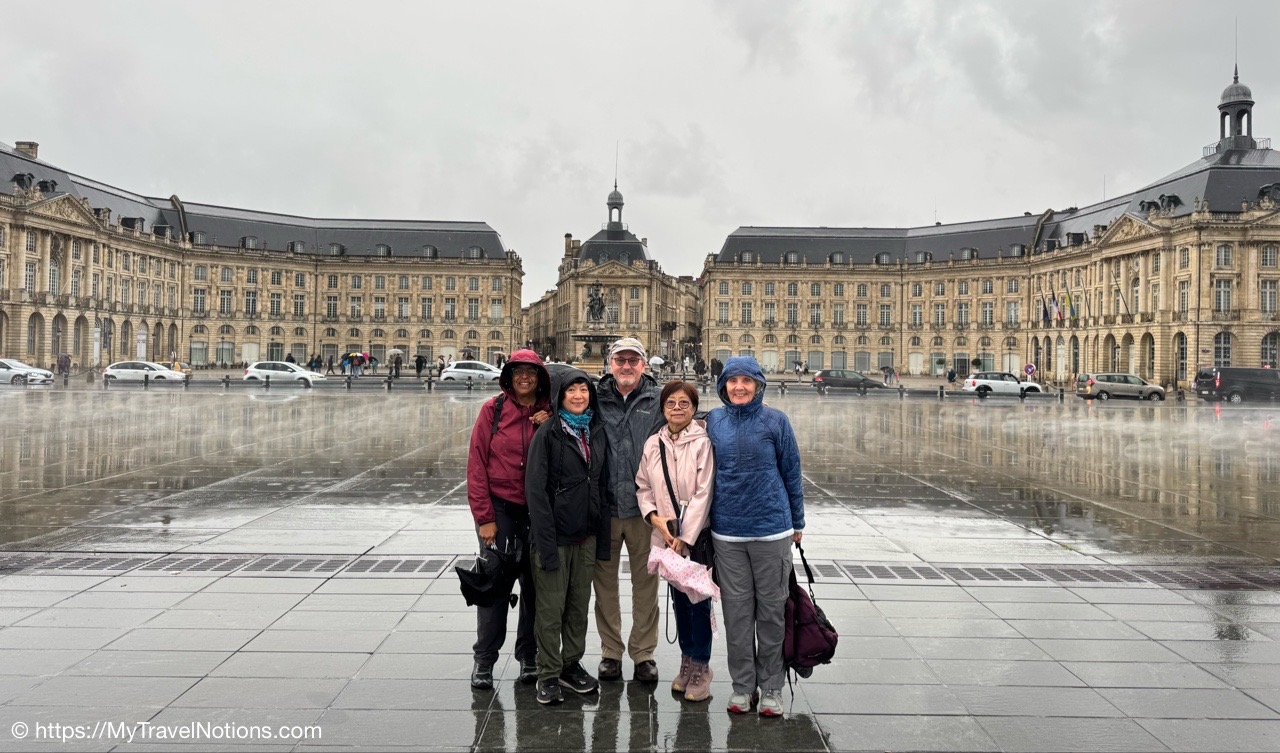We’ve had a couple of rainy, chilly days in Bordeaux and today turned out to be one of the worst so that basically meant spending the morning indoors at the Bordeaux Museum of Fine Arts. Afterwards, we stopped for a light lunch during a heavy rainfall. And, for the remainder of the day, I did some writing back at the hotel before going out to dinner at a Japanese Noodle Bar and a nice group walk in the drizzling rain to the Place de la Bourse an Miroir d’Eau.
