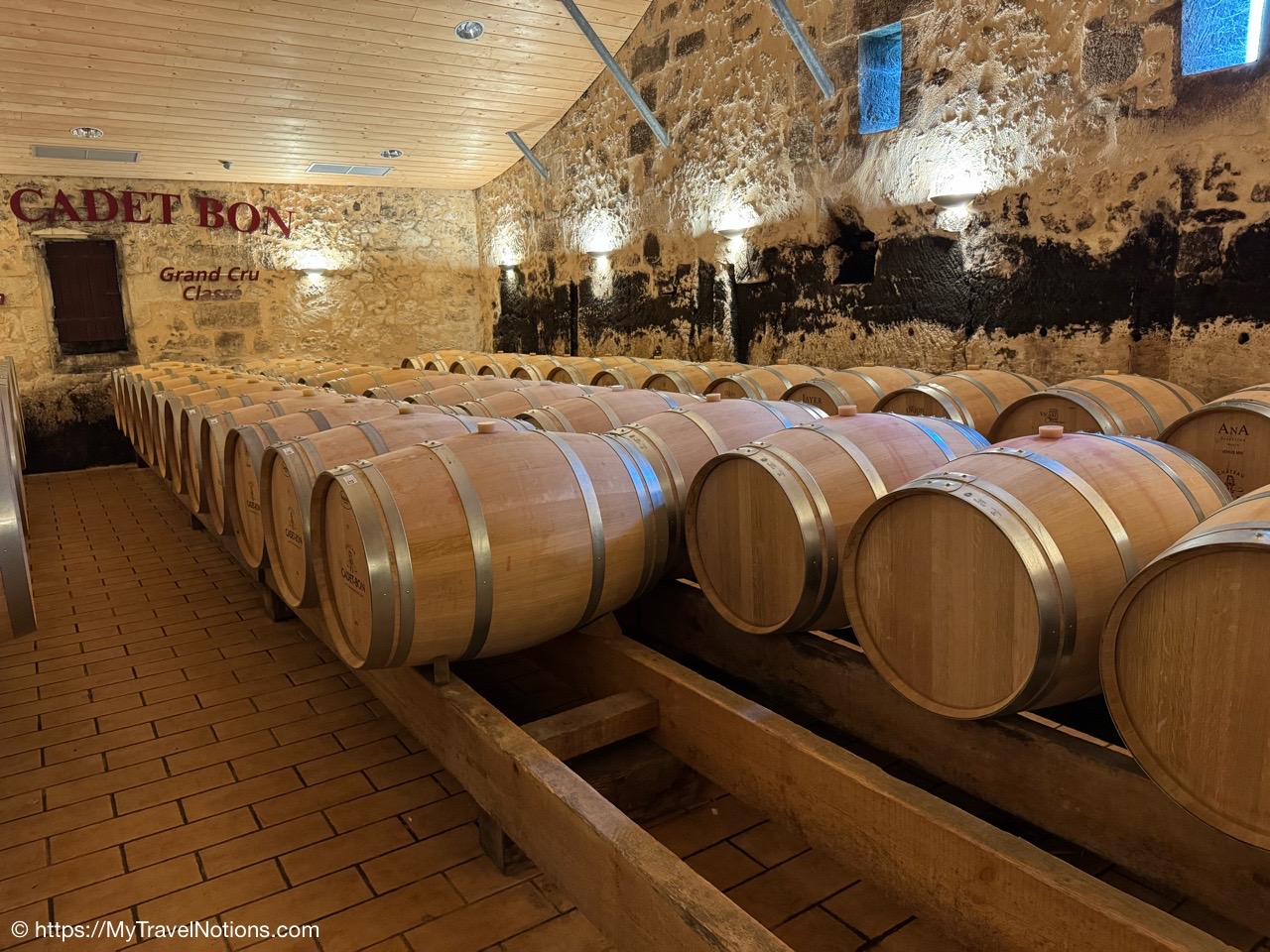 Here we are at our first winery and wine tasting stop, Chateau Cadet Bon in Saint-Émilion. The 5-acre family run winery, like the rest of Saint-Émilion, produces red wines during which we sampled. (April 21, 2025)Driving through the wine town of Saint-Émilion and its surrounding vineyards recognized by UNESCO for their unique blend of natural and cultural significance. (April 21, 2025)Driving through the wine town of Saint-Émilion and its surrounding vineyards recognized by UNESCO for their unique blend of natural and cultural significance. (April 21, 2025)The Chateau Cadet Bon winery in Saint-Émilion. (April 21, 2025)The 5-acre Chateau Cadet Bon winery in Saint-Émilion. The grapes are harvested once a year in September/October. (April 21, 2025)The 5-acre Chateau Cadet Bon winery in Saint-Émilion. The grapes are harvested once a year in September/October. (April 21, 2025)That’s Giuseppe at the Chateau Cadet Bon winery in Saint-Émilion standing by the vats that condense the grapes into juice. (April 21, 2025)Wine, from the vats at the Chateau Cadet Bon winery in Saint-Émilion, is put into these French Oak wine barrels for about 12 months. (April 21, 2025)Wine, from the vats at the Chateau Cadet Bon winery in Saint-Émilion, is put into these French Oak wine barrels for about 12 months. (April 21, 2025)And these are the red wines we tasted at the Chateau Cadet Bon winery in Saint-Émilion. (April 21, 2025)We took a short break from tasting wine to briefly walk around the medieval town of Saint-Émilion. (April 21, 2025)The medieval town of Saint-Émilion. (April 21, 2025)The medieval town of Saint-Émilion. (April 21, 2025)The Monolithic Church in Saint-Émilion was built by Benedictine monks into this rocky hillside between the 11th and 12th centuries. (April 21, 2025)The Monolithic Church in Saint-Émilion was built by Benedictine monks into this rocky hillside between the 11th and 12th centuries. (April 21, 2025)The Monolithic Church in Saint-Émilion was built by Benedictine monks into this rocky hillside between the 11th and 12th centuries. (April 21, 2025)The Monolithic Church in Saint-Émilion was built by Benedictine monks into this rocky hillside between the 11th and 12th centuries. (April 21, 2025)The King’s Tower (Tour du Roy) in Saint-Émilion built around 1237 as a defensive stone tower whose purpose is debated—it may have been a watchtower, a keep or a symbol of power during a time of conflict between local lords and the crown. (April 21, 2025)As we continued our brief walk in Saint-Émilion we came across this cheese and salami shop that we had in to get some quick munchies and taste the samples. (April 21, 2025)Cuts of different varieties of salami to taste at a cheese and salami shop in Saint-Émilion. (April 21, 2025)The medieval town of Saint-Émilion. (April 21, 2025)The medieval town of Saint-Émilion. (April 21, 2025)Inside the lovely Romanesque-Gothic church, Collegiate Church and Cloister in Saint-Émilion. The first stone was laid in 1110, and over the centuries, the church was expanded. (April 21, 2025)The high altar of the lovely Romanesque-Gothic church, Collegiate Church and Cloister in Saint-Émilion. (April 21, 2025)Inside the lovely Romanesque-Gothic church, Collegiate Church and Cloister in Saint-Émilion. (April 21, 2025)Inside the lovely Romanesque-Gothic church, Collegiate Church and Cloister in Saint-Émilion. (April 21, 2025)The cloister of the lovely Romanesque-Gothic church, Collegiate Church in Saint-Émilion. (April 21, 2025)The cloister of the lovely Romanesque-Gothic church, Collegiate Church in Saint-Émilion. (April 21, 2025)The cloister of the lovely Romanesque-Gothic church, Collegiate Church in Saint-Émilion. (April 21, 2025)The Book of Revelation mural by French painter François Peltier in the cloister of the Collegiate Church in Saint-Émilion. According to Saint John, it is the last book of the Bible. (April 21, 2025)The Book of Revelation mural by French painter François Peltier in the cloister of the Collegiate Church in Saint-Émilion. According to Saint John, it is the last book of the Bible. (April 21, 2025)The Book of Revelation mural by French painter François Peltier in the cloister of the Collegiate Church in Saint-Émilion. According to Saint John, it is the last book of the Bible. (April 21, 2025)The Book of Revelation mural by French painter François Peltier in the cloister of the Collegiate Church in Saint-Émilion. According to Saint John, it is the last book of the Bible. (April 21, 2025)The Book of Revelation mural by French painter François Peltier in the cloister of the Collegiate Church in Saint-Émilion. According to Saint John, it is the last book of the Bible. (April 21, 2025)The Book of Revelation mural by French painter François Peltier in the cloister of the Collegiate Church in Saint-Émilion. According to Saint John, it is the last book of the Bible. (April 21, 2025)Exiting the the cloister of the Collegiate Church in Saint-Émilion. (April 21, 2025)Walking through Saint-Émilion, a picturesque town with cobbled-stoned streets, historic buildings and boasts a rich viticultural history dating back to the Romans. (April 21, 2025)Walking through Saint-Émilion, a picturesque town with cobbled-stoned streets, historic buildings and boasts a rich viticultural history dating back to the Romans. (April 21, 2025)Walking through Saint-Émilion, a picturesque town with cobbled-stoned streets, historic buildings and boasts a rich viticultural history dating back to the Romans. (April 21, 2025)Our second and final wine tasting winery in Saint-Émilion was at Château Grangey. (April 21, 2025)The 13-acre vineyards of Château Grangey in Saint-Émilion. (April 21, 2025)The 13-acre vineyards of Château Grangey in Saint-Émilion. (April 21, 2025)The terracotta and French oaks barrels used to store the wines at the Château Grangey in Saint-Émilion. (April 21, 2025)Getting ready to taste the wines at the 