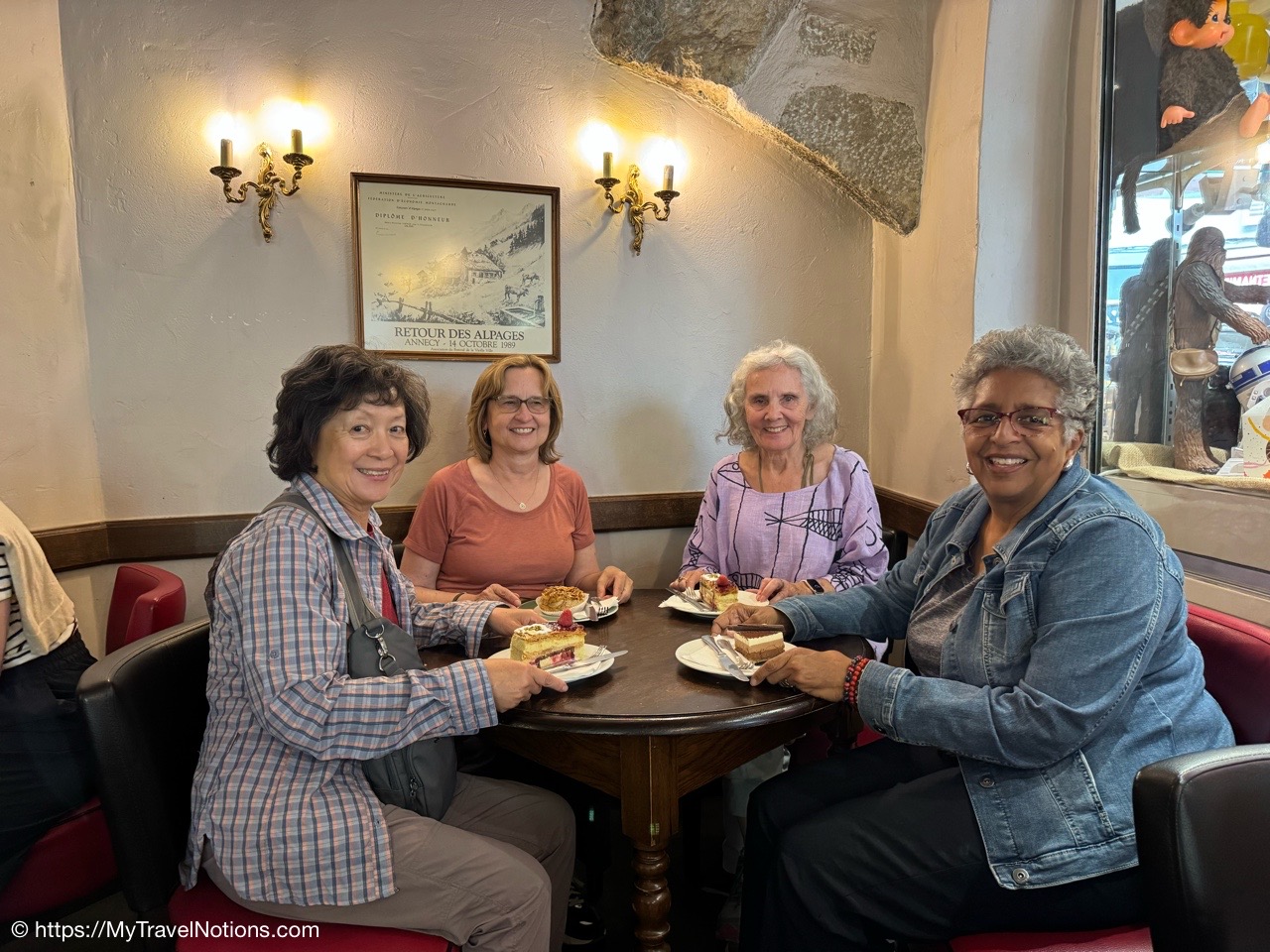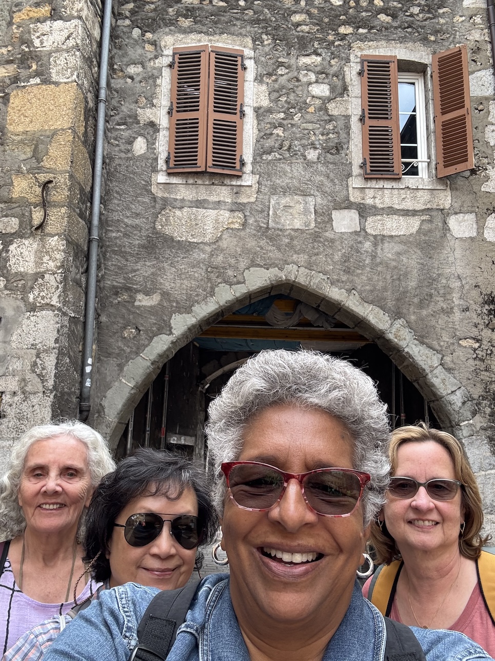 Getting in a group selfie for our last day together in Annecy and as a group of four. Janet, (to my right) leaves to head home back to the U.S. while Rosie, Alice and myself head to Lyon before Rosie and I head to Paris to end our Friends & France travels. But before all of that happens, here’s to an incredible time to Annecy. (May 19, 2025)