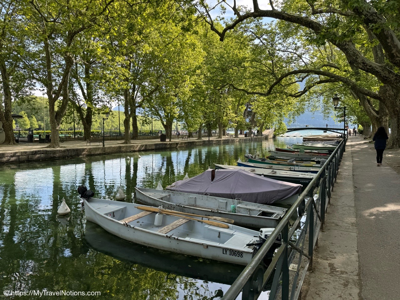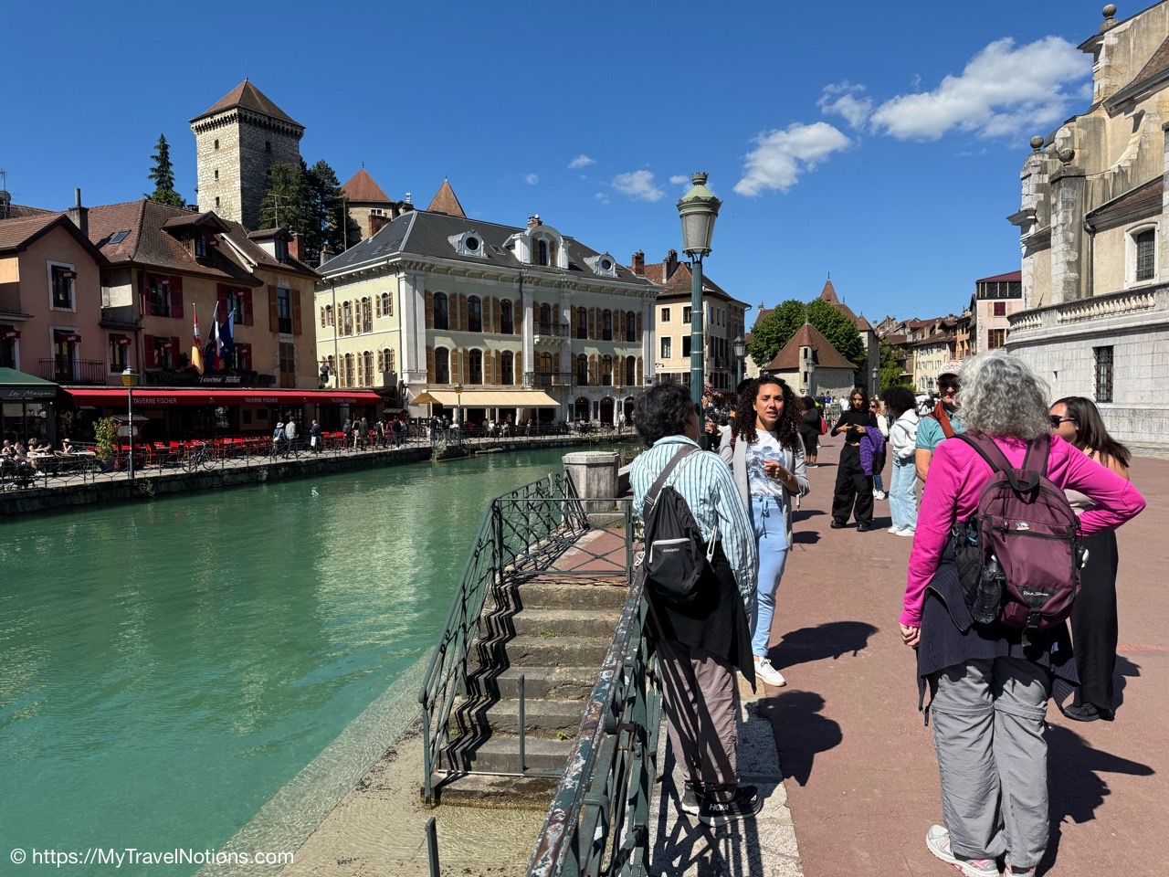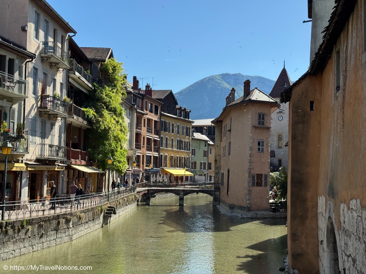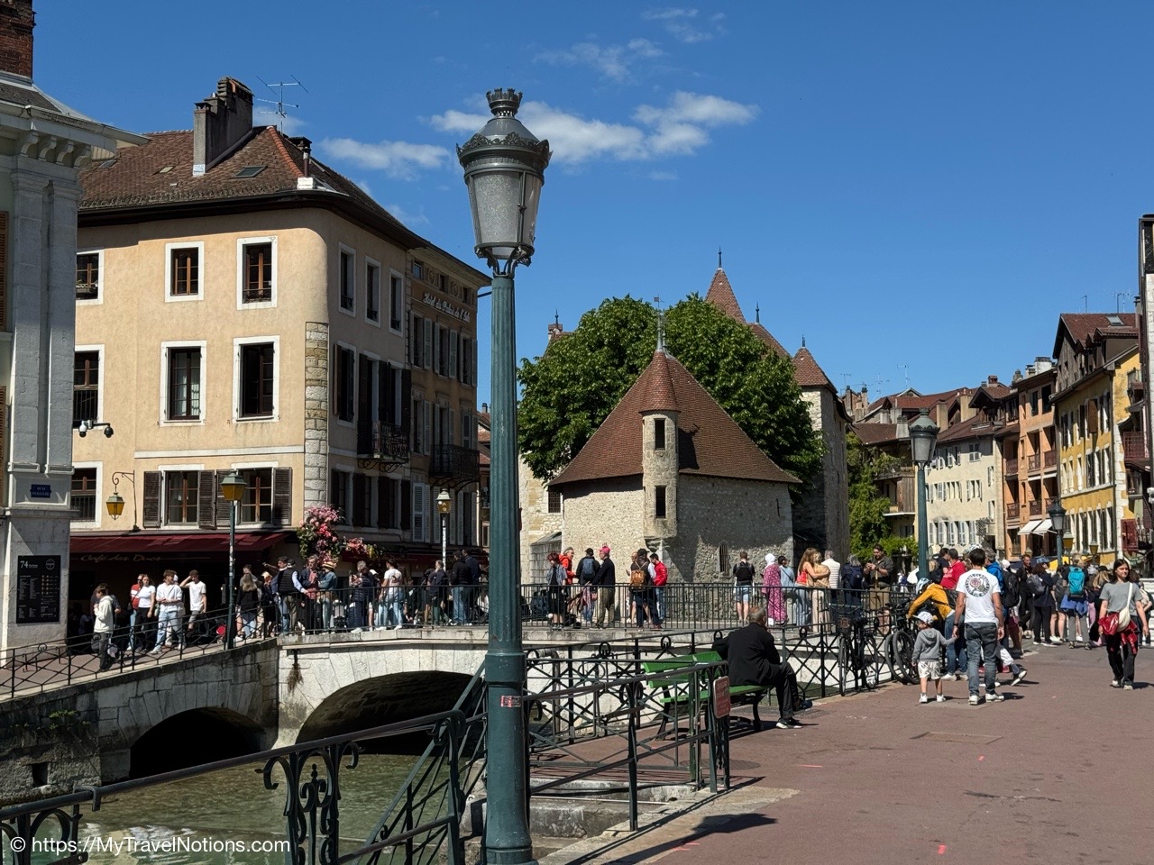 Walking into Annecy’s medieval old town from Lake Annecy. Nicknamed the Venice of the Alps”, the old town is criss-crossed by enchanting canals lined by colourful architecture. (May 17, 2025)
