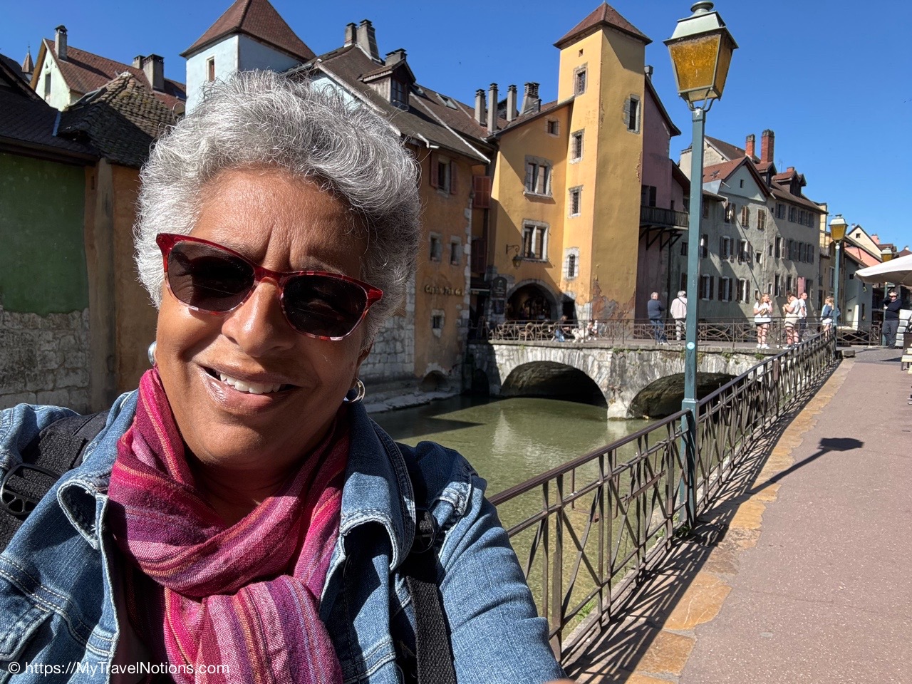Getting in a quick selfie in Anncey’s medieval old town with views of the winding canals with crisscrossing bridges over the Thiou river. (May 17, 2025)