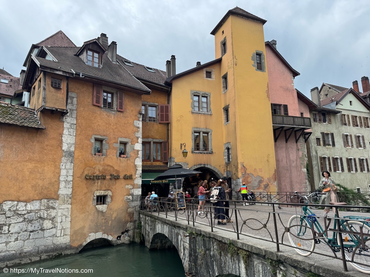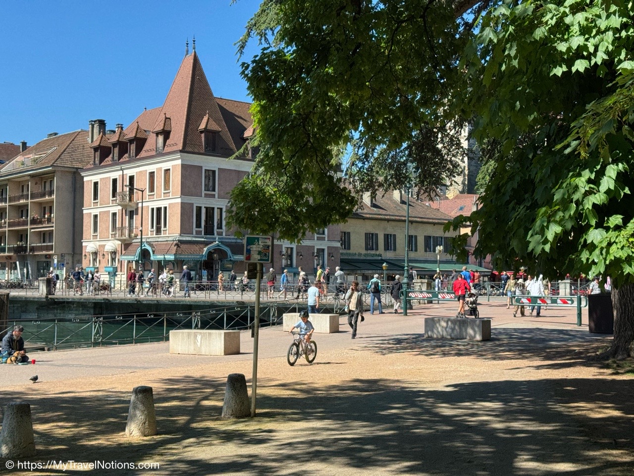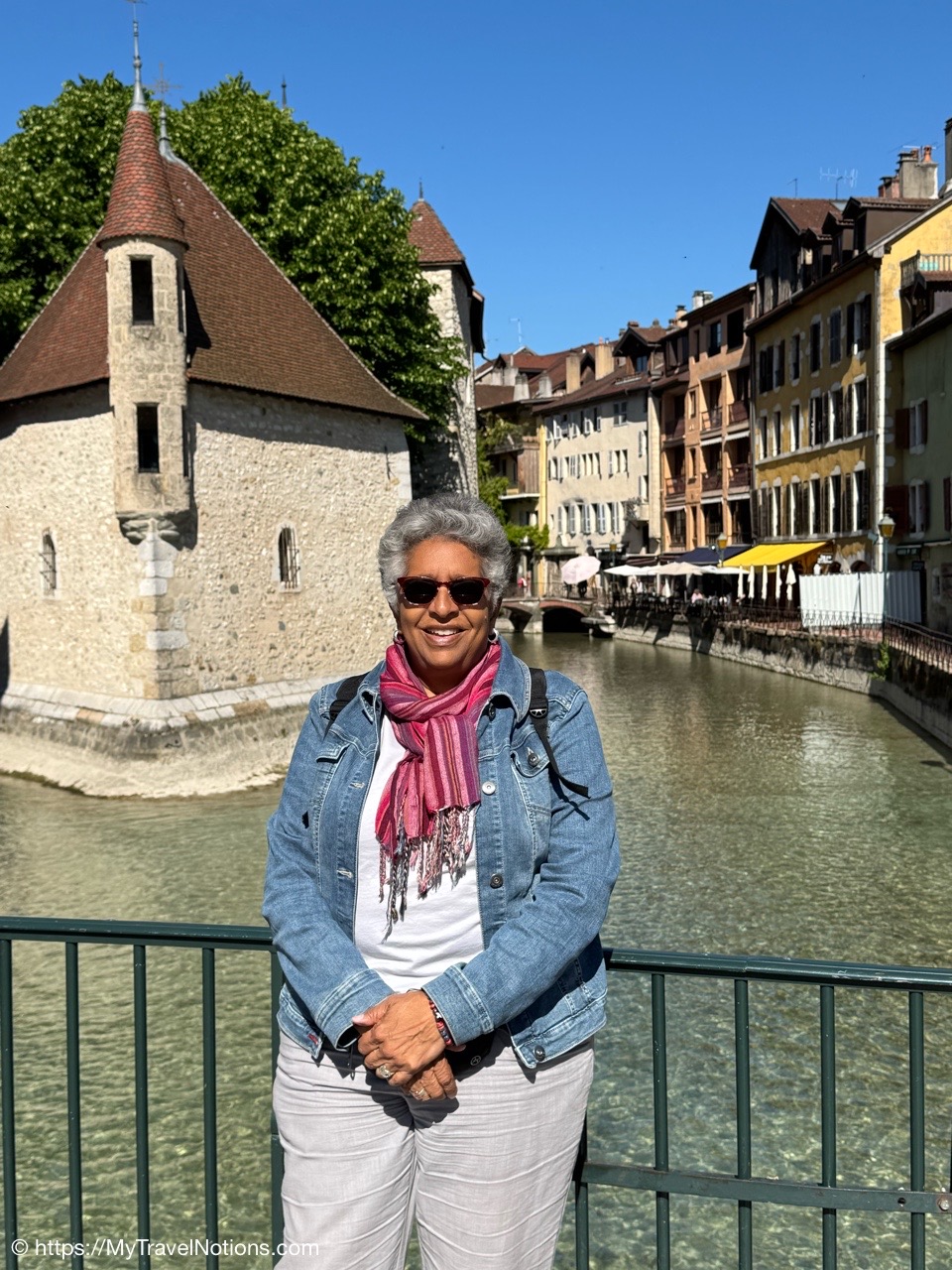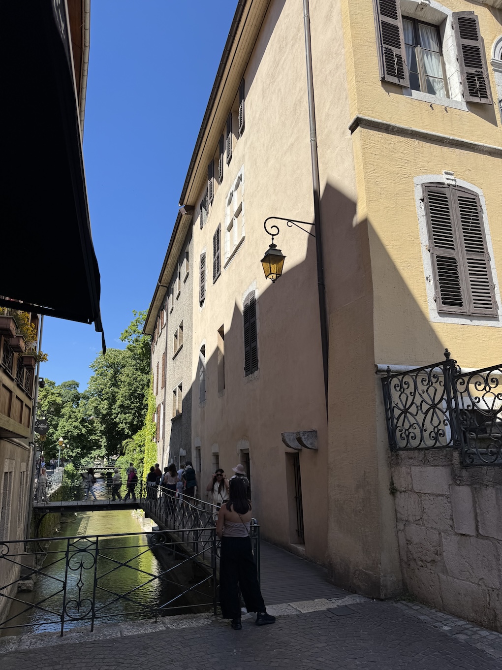 Walking across a bridge over the canal in old town Annecy. (May 17, 2025)