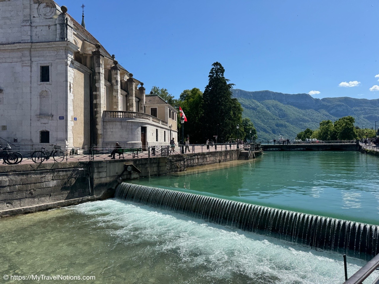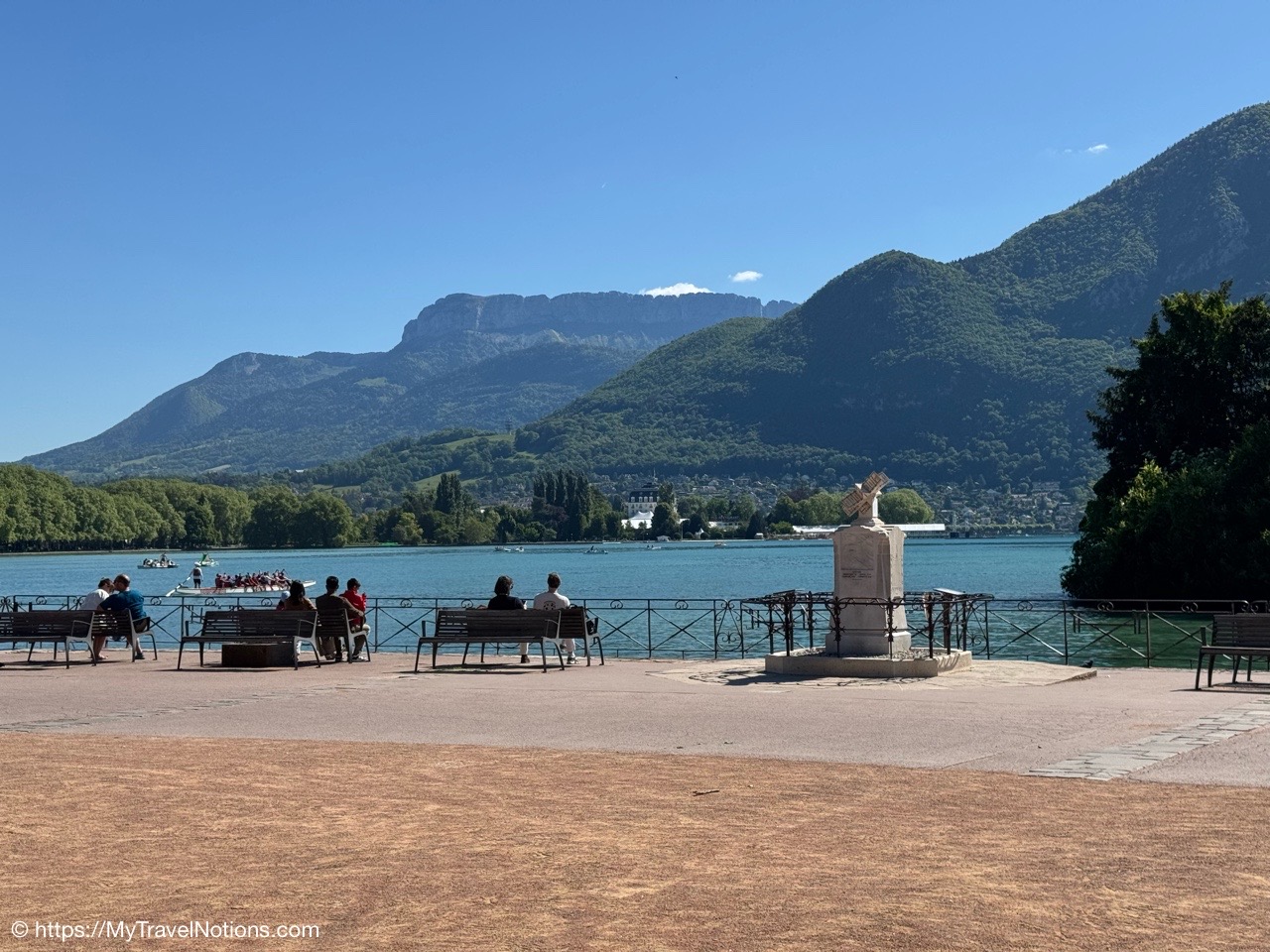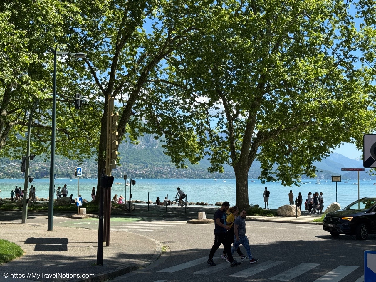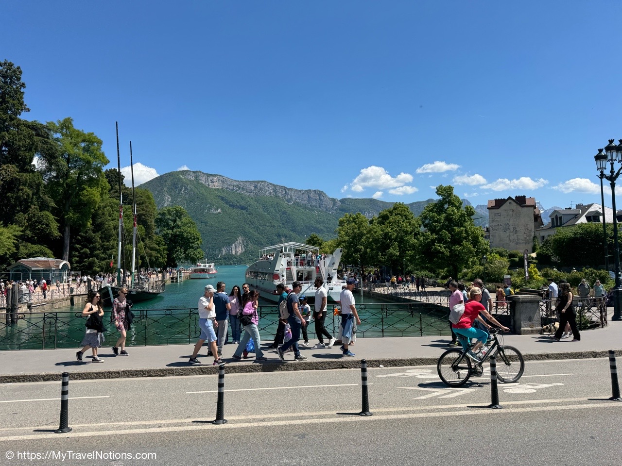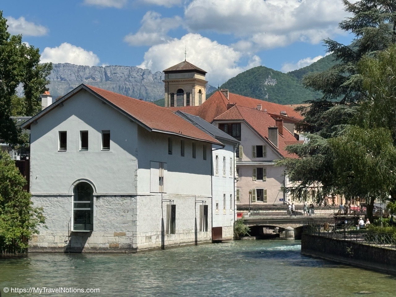The Pont des Amours or Lovers’ Bridge, a beautiful iron bridge by the Lac d’Annecy, which joins the Jardins de l’Europe and Pâquier Esplanade – two open gardens on the shores of the lake. Legend has it that if two lovers kiss on the bridge, they will stay together forever. You don’t need someone to kiss to enjoy the incredible lake and Mountain View’s. (May 19, 2025)