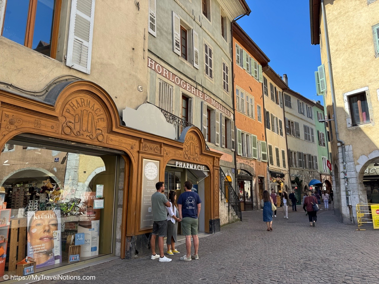 Walking past the Pharmacie du Vieil or Old Pharmacy in Annecy, formerly Picon and has been an institution for over 140 years. Founded on Rue Jean-Jacques-Rousseau in Annecy in 1880, the Picon Pharmacy has remained an institution in the area to this day. (May 17, 2025)