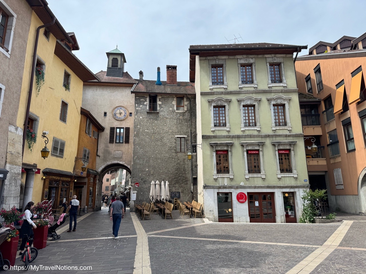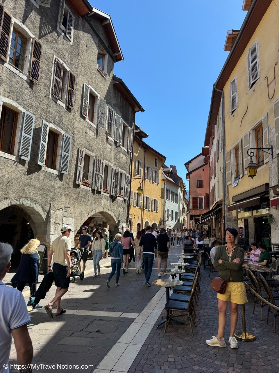 Walking through the arches and colorful architecture of old town Annecy. (May 17, 2025)