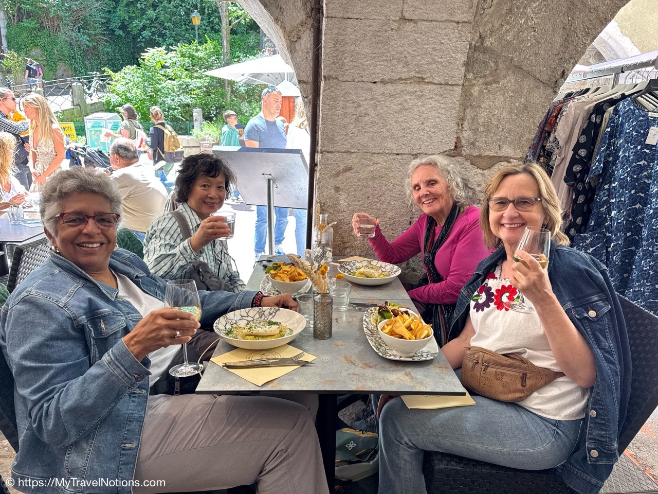 Our seafood lunch at Kelsa in old town Annecy. From left: me, Alice, Rosie and Janet. (May 17, 2025)