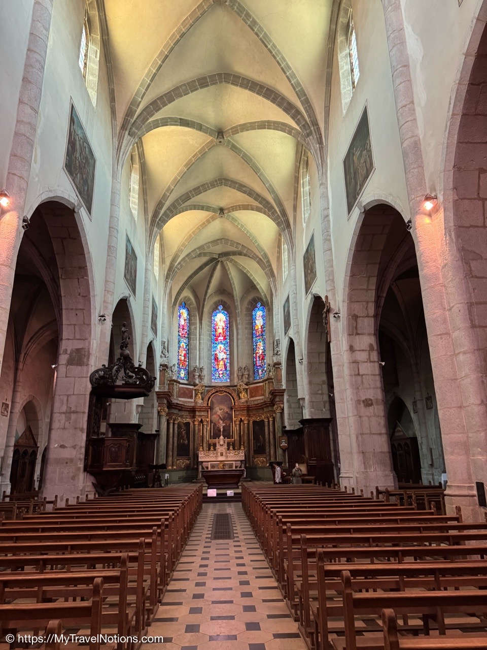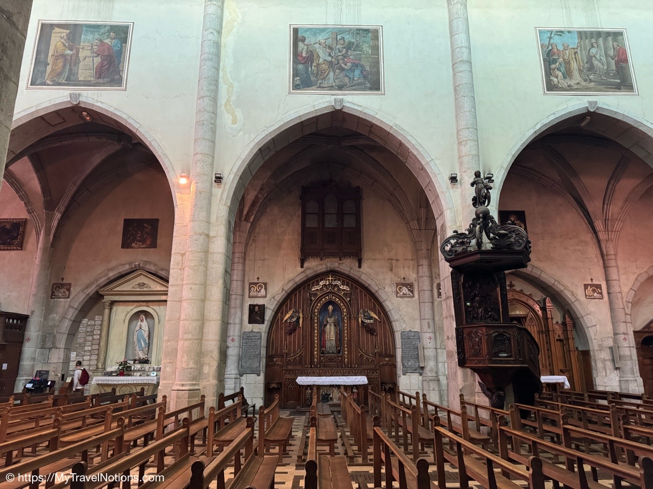 Inside the beautiful Église Notre Dame de Liesse or Church of Notre Dame de Liesse in old town Annecy. (May 17, 2025)