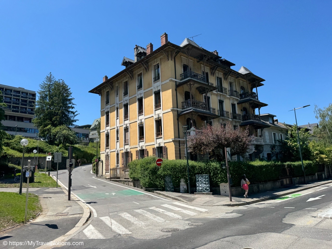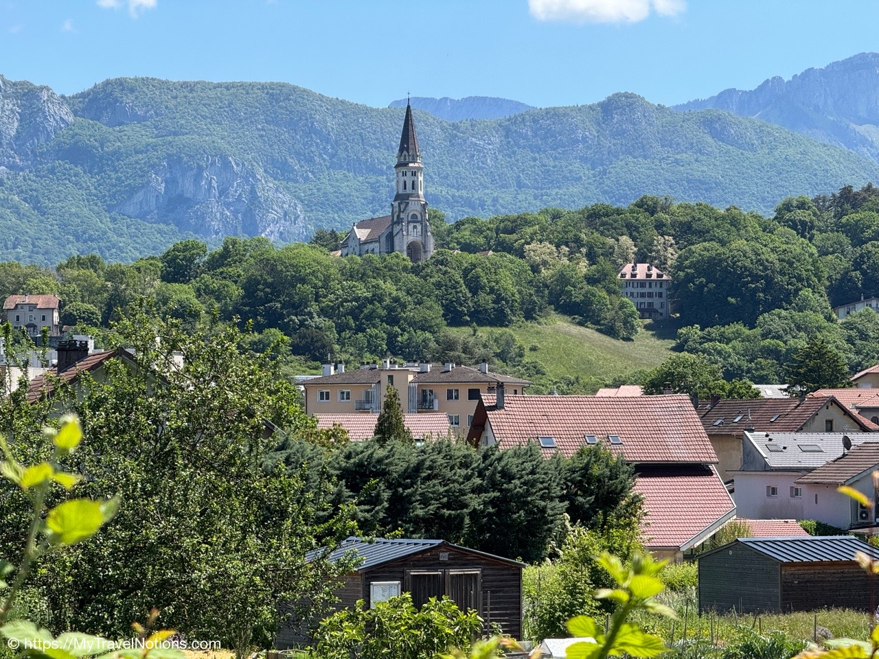 Walking from our apartment into old town Annecy with views of the Basilique de la Visitation or Basilica of the Visitation, a Catholic basilica standing on the Crêt du Maure above Annecy. I’ll be seeing the basilica up close during the red van Annecy City Tour. (May 18, 2025)