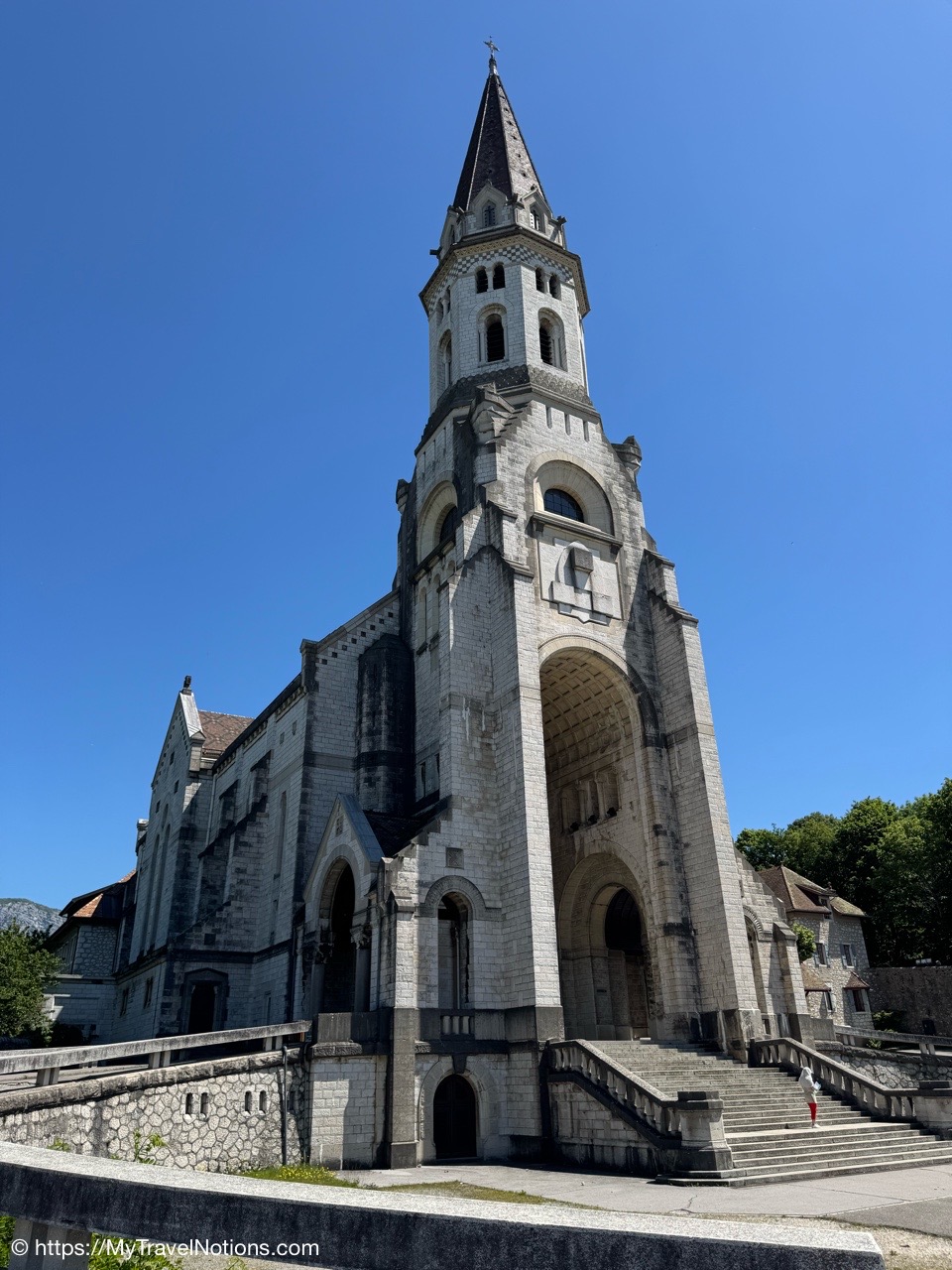 The Église Notre Dame de Liesse. Largely built during the mid-19th century after its 14th-century predecessor was damaged during the French Revolution, the Church of Our Lady of Liesse rises over Annecy’s Vieille Ville (Old Town). The oldest part of the church is the 16th-century square bell tower. (May 17, 2025)