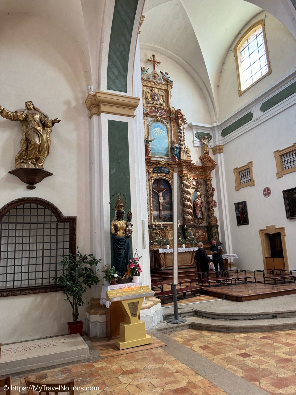 The Black Madonna and altar inside the Église Saint-François de Sales or Church of St. Francis de Sales in old town Annecy. (May 18, 2025)