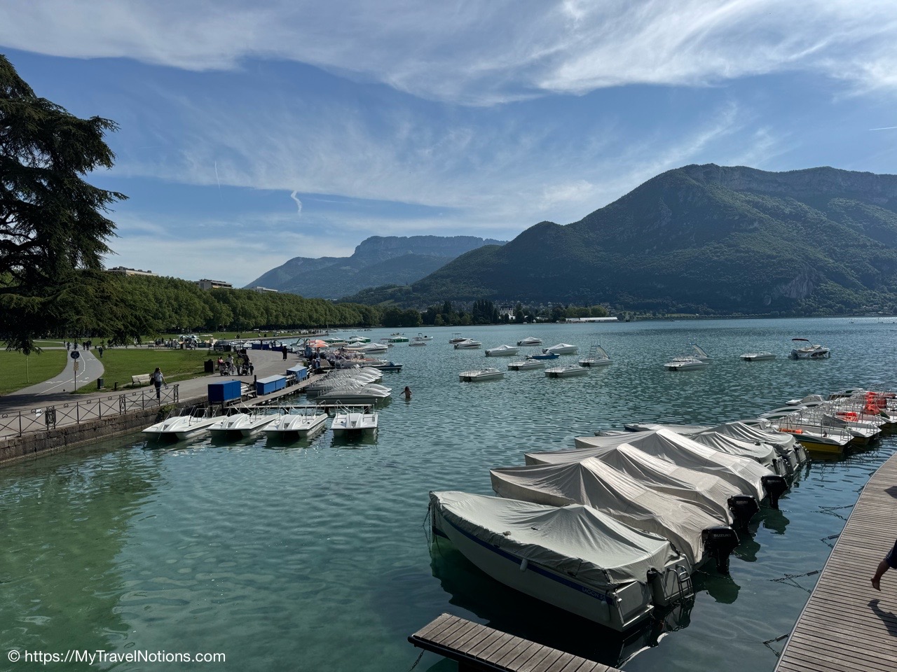 The Jardins de l’Europe, one of the public parks adjacent to Lake Annecy. (May 19, 2025)
